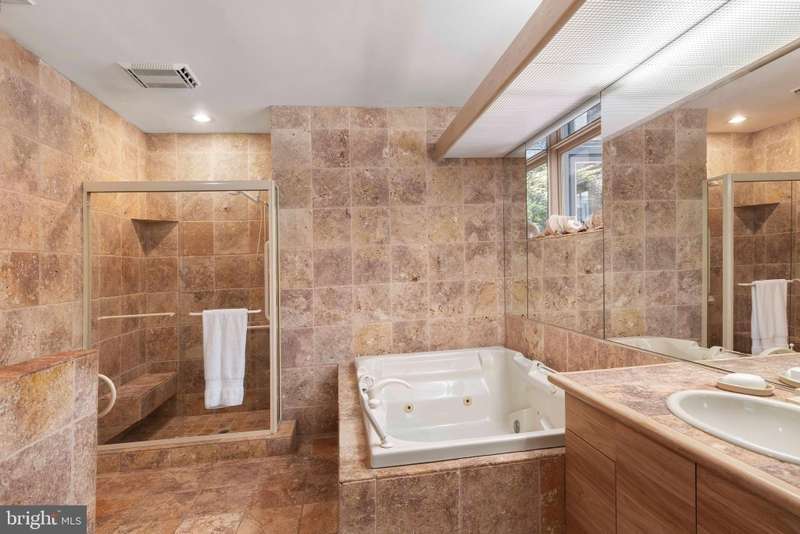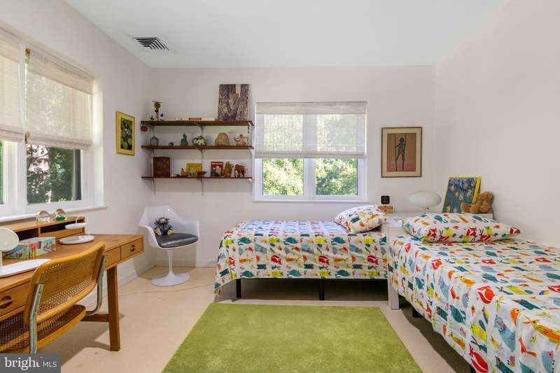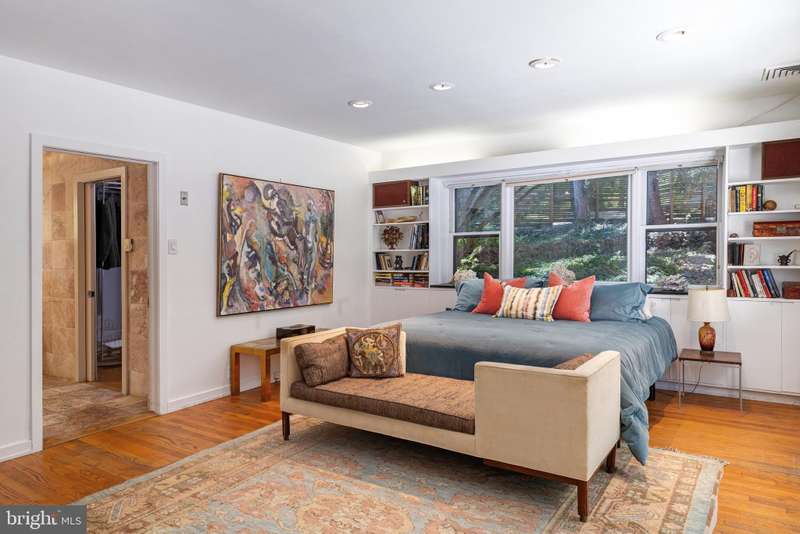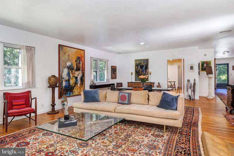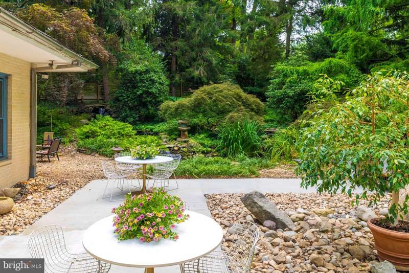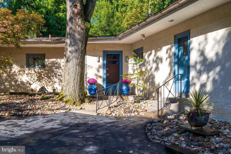 4145 Timber Lane is a mid century modern gem nestled in a bucolic setting on one of the area's premier private lanes. Built in 1956 the expansive residence was designed by prominent Philadelphia architect Norman Cronheim. In his career Cronheim worked with other noted Philadelphia modernist architects including the famed Louis Kahn and architect Oscar Stonorov who designed several nearby dwellings . Travel almost to the end of Timber Lane, leaving the world behind, and buyers will find 4145 behind privacy fencing. The exterior of the home is straightforward and welcoming with hints that the grounds should be explored. Inside the home radiates light and space. The main level of the home offers complete one story living with a finished lower level with its own entrance. Rooms on the main level are large and well proportioned with windows bringing the outside in. The living room is exceptional with its fireplace and wall of built ins as is the primary bedroom. Rest in this room and hear the soothing sounds of the waterfall outside emptying into the koi pond. There are three additional good size bedrooms on this level and three full bathrooms including the huge primary bathroom with adjoining walk in closet. The kitchen is bright and airy with extensive counters and ample cabinetry. The pristine Thermador wall oven and cooktop offer vintage appeal. An angled wall creates breakfast space and adds design interest. Hallways are lined with closets, another midcentury touch. The lower level of the home includes an additional bedroom, full bathroom, kitchen , sitting area, laundry room and storage. The home opens beautifully to the exquisite outdoor space. The lot is just shy of an acre with lovely woods, meadows, peaceful sitting areas. Nature can be enjoyed to its fullest. Patios and hardscaping allow for outdoor dining and entertaining. This home is in great shape. The air conditioning system is brand new and the roof is recent. There is a 2-car garage and driveway parking for additional cars. 4145 Timber Lane may be situated in one of the greenest and most private areas of the city but it is a stone's throw to Kelly Drive, I-76 and other important arteries to city areas and the suburbs. Center City is just 15 minutes away. Come see!