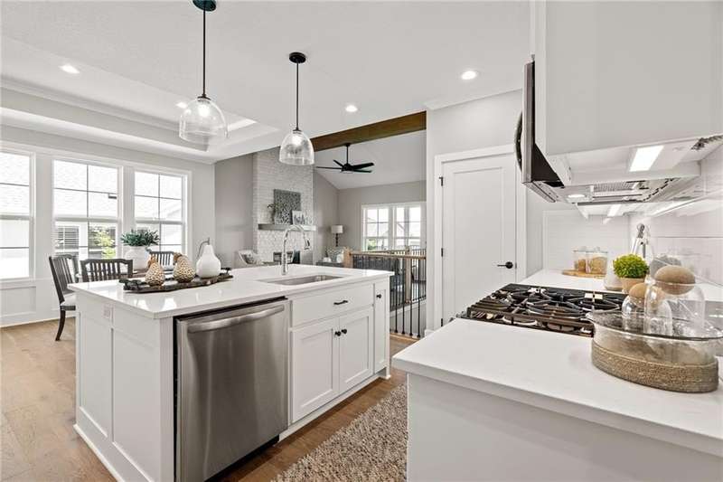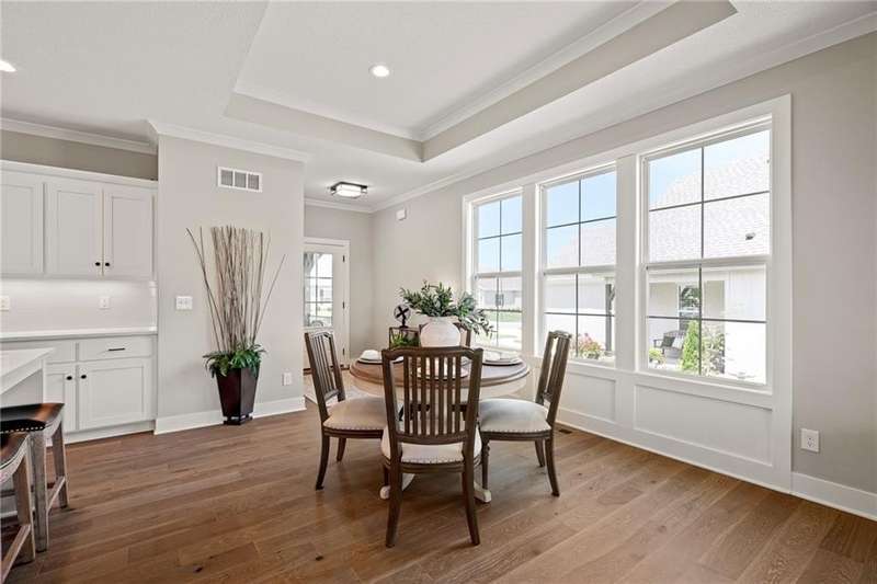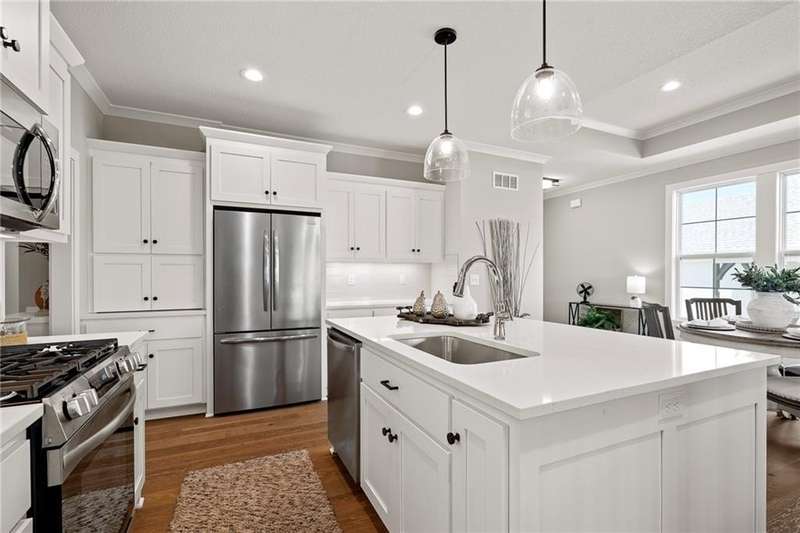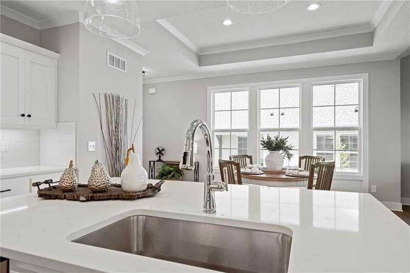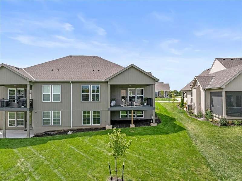 HOME AVAILABLE NOW! Welcome to the Luxury Twin Villas in Lenexa's hottest neighborhood, Bristol Highlands! Introducing the Newport floor plan by Lambie Homes featuring maintenance-provided living, minutes from easy highway access, Lenexa City Center, Lake Lenexa, Shawnee Mission Park, an array of restaurants, and award-winning DeSoto schools. No more worries regarding lawn care, snow removal, trash & recycling pick-up, & irrigation system maintenance! This Newport on Lot 42L features 2 bedrooms, 2 bathrooms, and 1,398 sq. feet on the main level, plus a full unfinished basement, stubbed for a future bath. A lower level family room, full bath, 3rd bedroom, & 4th bedroom are optional add-ons! The heart of this home is the kitchen with soft-close drawers, ss appliances, gas cooktop, microwave, oven, & dishwasher. In addition, find a pantry, gorgeous quartz countertops, & a sizable island (with storage underneath, accessible from both sides) to gather around. The Kitchen/Dining combo is open to the Great Room with beautiful hardwoods throughout main living areas. Unwind in the primary suite which boasts an impressive vaulted ceiling, double doors to the bathroom, double vanity, tiled shower, & walk-in closet, conveniently connected to the laundry room. Entertain in your impressive Great Room with a vaulted, beamed ceiling, cozy fireplace with cultured stone floor-to-ceiling, & door to the covered patio where you can relax or entertain with ease. HIGH-END STANDARD FEATURES INCLUDE 96% EFFICIENCY FURNACE, 14 SEER AC, 50-GAL. WATER HEATER, HUMIDIFIER, PRE-PIPING FOR RADON MITIGATION, CROWN MOLDING, TILE SURROUNDS IN ALL SHOWERS, & FULL-YARD IRRIGATION SYSTEM! Stop by our twin Villa model at 8258 Aurora St. in Lenexa.