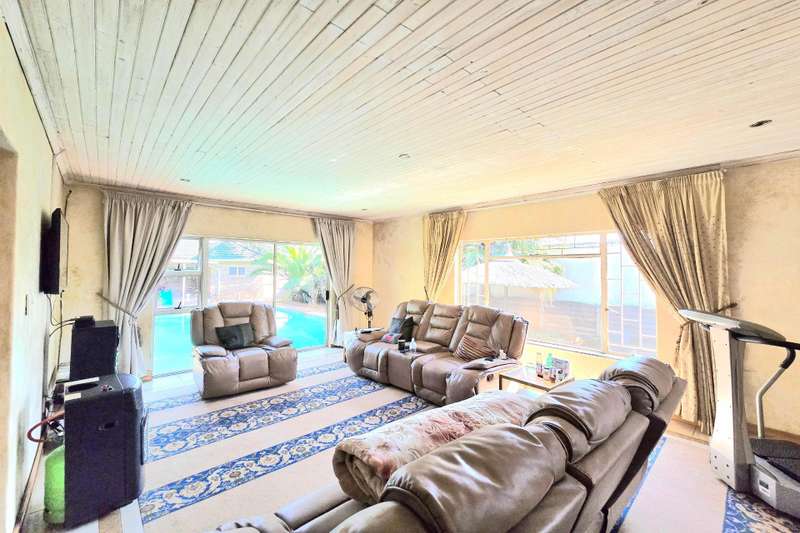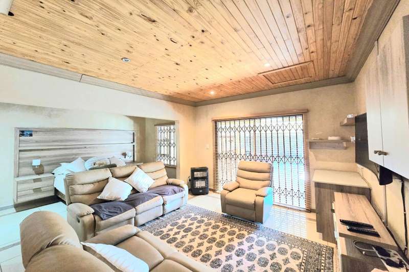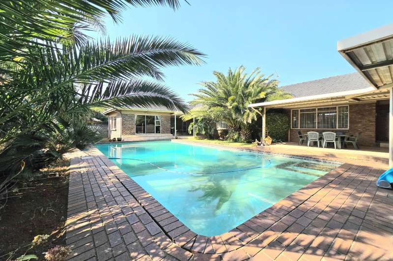 3 Bedrooms 2,5 Bathrooms Main bedroom with en-suite and lounge area overlooking the entertainment area and pool. Dining room area. Study Kitchen Built-in cupboards Double garage fits 4 cars. Carport that fits 3 cars. Pet friendly Fibre ready Granny flat with bathroom and lounge attached to the house and can be entered from the outside ass well. Staff quarters with shower and toilet. Prepaid electricity Rates Estimate: R 1500 (including water and refuse) 200L geyser in the house 150L geyser in the staff quarters.