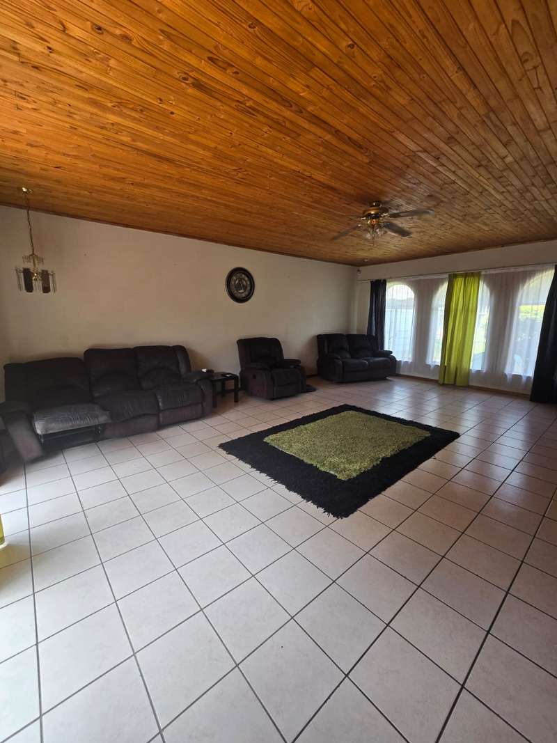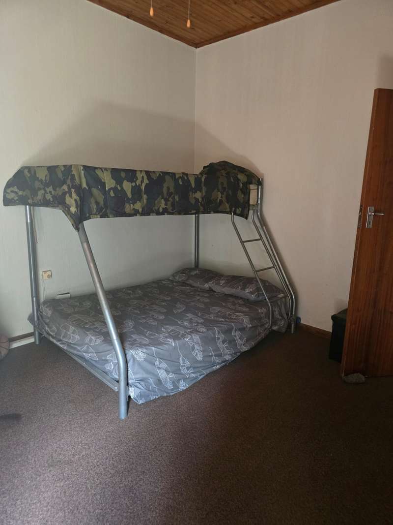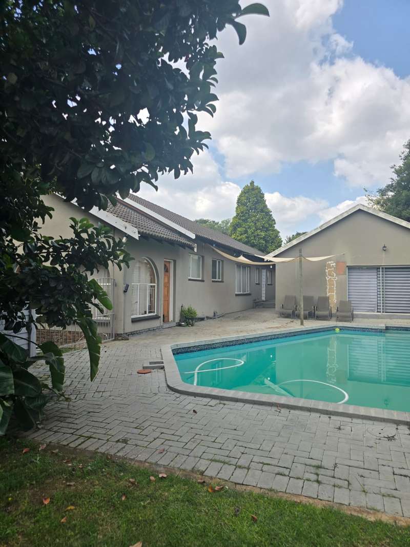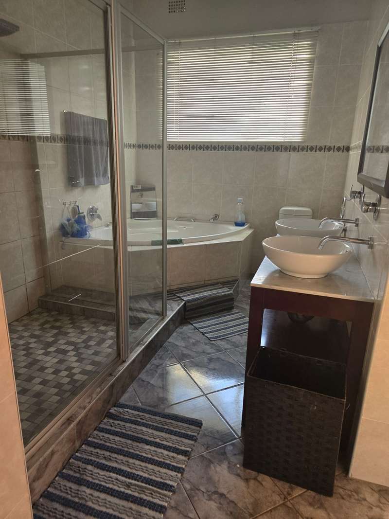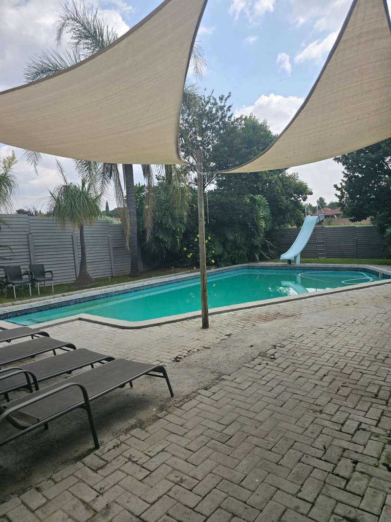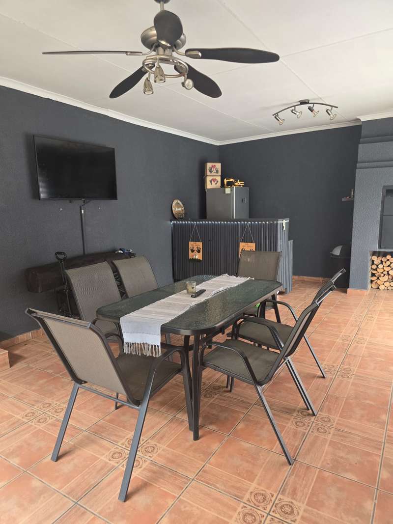 For the large family, the entertainer lover, the holiday at home type of family This must see property features 2 garages, 4 bedrooms, 2 full modern renovated bathrooms Spacious living area that opens up onto the patio, 1 study that can used as another lounge. A dining room, a lovely spacious kitchen offering a gas hob, eye-level oven and a separate scullery/laundry. The main bedroom gives an atmosphere of luxury and pampers, with access to the Jacuzzi room and en-suite bathroom. The closed separate entertainment comes with a built in braai and guest toilet facility, offer unlimitless entertainment or can easily be converted into a bachelor flat. Extra bonuses: solar panels, pre-paid, 5000 litre Jo-jo water tank with pump. Generator, switch-over and water purification system Book your viewing for this very affordable property!