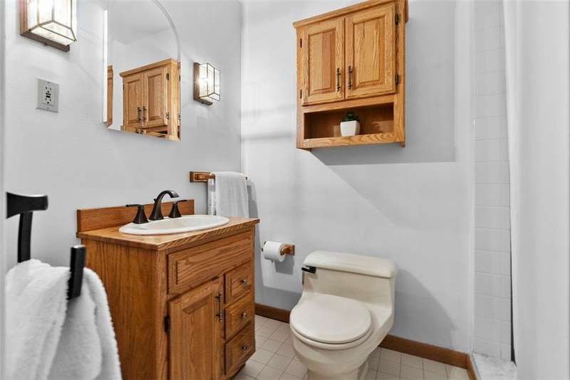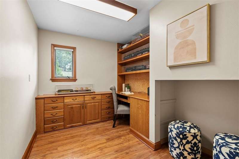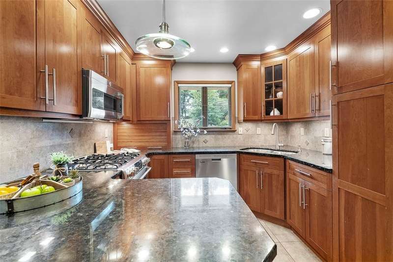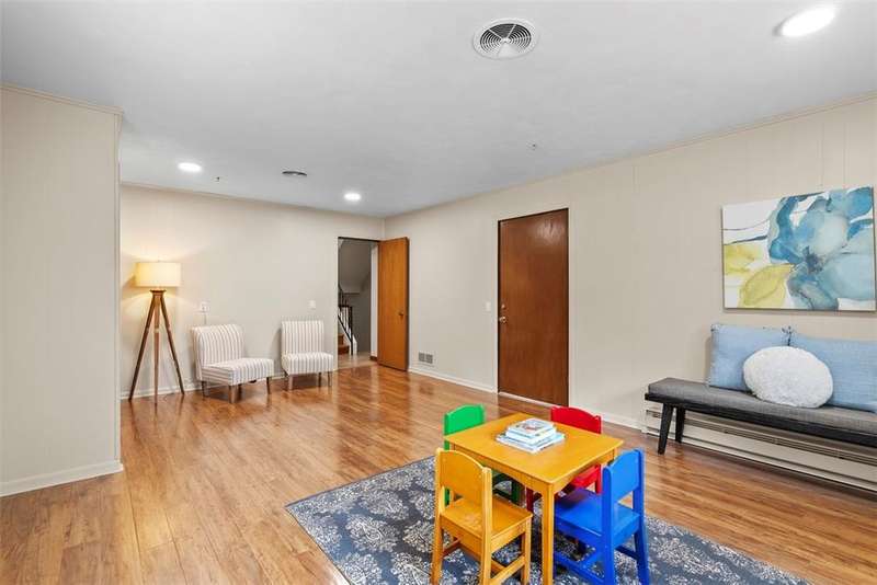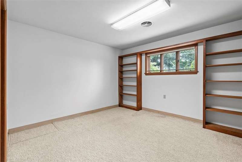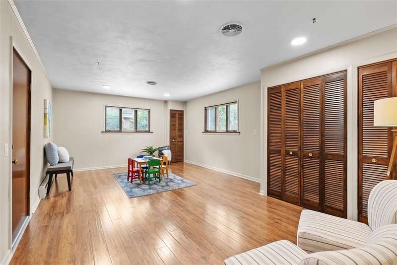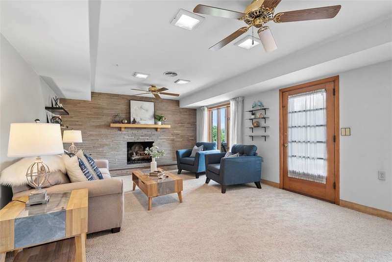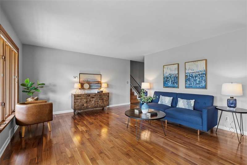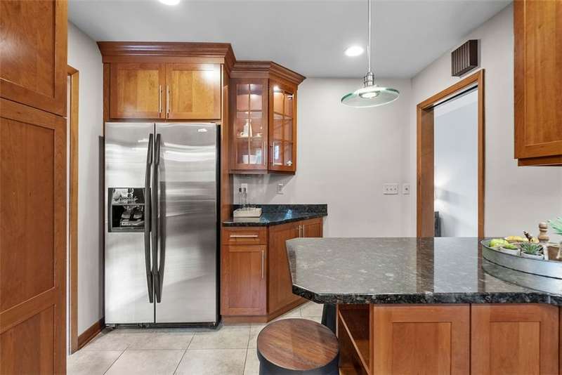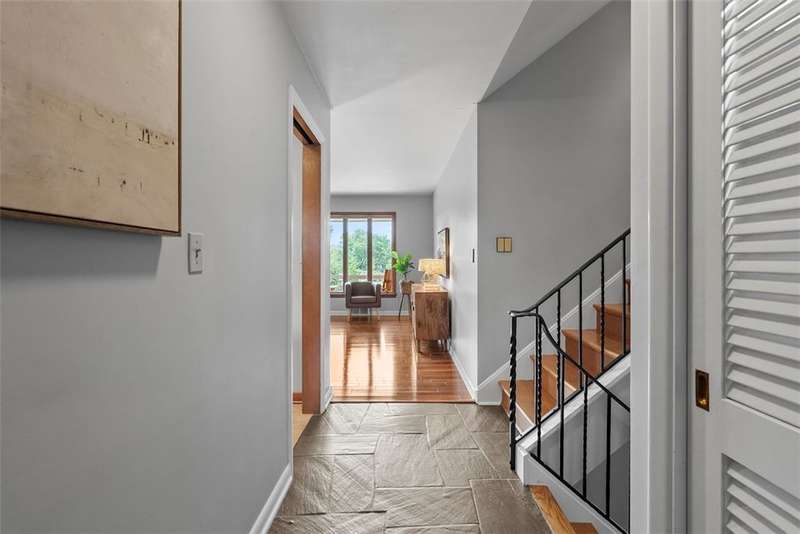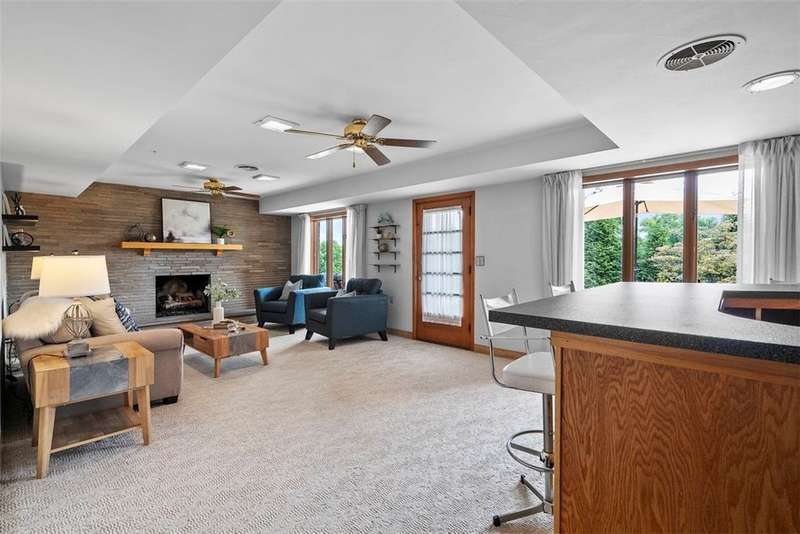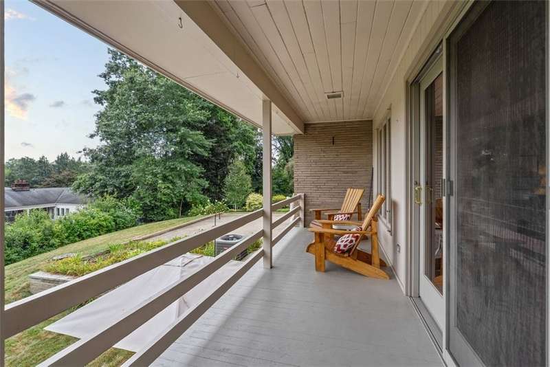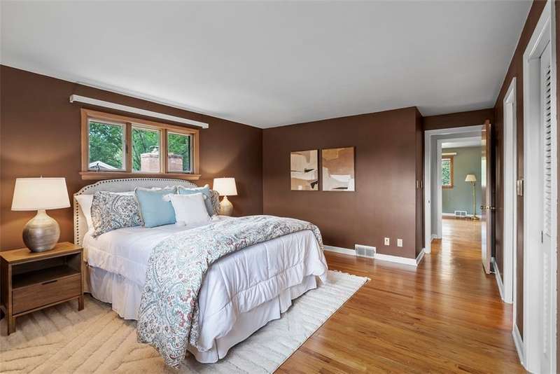 Experience the charm of a sunlit, mid-century modern multi-level home in Upper St. Clair, highlighting timeless design and incredible storage throughout. The new walnut floors and original woodwork radiate warmth and character, enhancing each room's inviting atmosphere. Fully remodeled kitchen features granite countertops and cherry cabinets, making cooking and entertaining effortless. There are two gas fireplaces, built-in wet bar, game room, and a spacious family room, ideal for hosting. It includes four or five bedrooms, a dedicated office, and a versatile lower-level bonus room that can serve as an additional bedroom or office. The second-floor bedroom boasts beautifully refinished oak floors. The expansive back deck provides scenic views of the lush yard, ideal for relaxing or gatherings. The backyard and patio are perfect for grilling and outdoor activities, with mature landscaping creating a peaceful setting. This home combines seamlessly style, functionality, and outdoor living