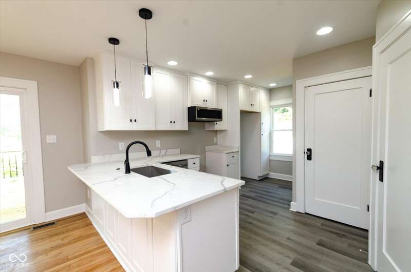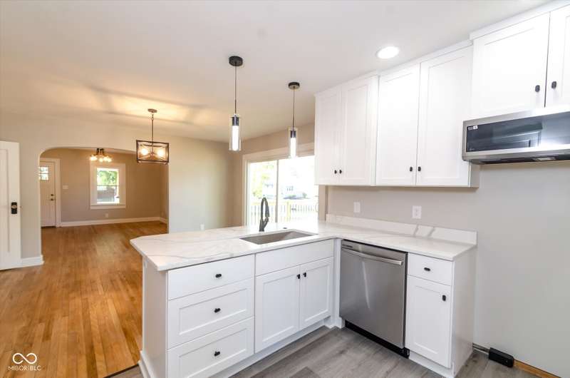 Charming and fully updated 3BR/2BA home just minutes from the University of Indianapolis. Built in 1926, this home blends original character with modern upgrades throughout. The main level features hardwood floors, a beautifully remodeled kitchen with quartz countertops, new cabinets, and a spacious pantry. Both bathrooms and the oversized laundry room have been completely redone. The finished basement offers stained concrete floors, a game room perfect for relaxing or entertaining, and a 3rd bedroom with a daylight window and oversized walk-in closet. New HVAC, plumbing, and electrical systems provide peace of mind. Thoughtful updates make this home feel brand new while keeping its classic charm. Kitchen appliances (refrigerator, dishwasher, stove, and microwave) not installed yet, but will be included in the sale.
