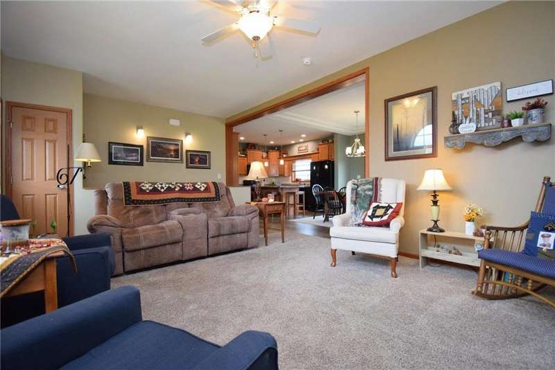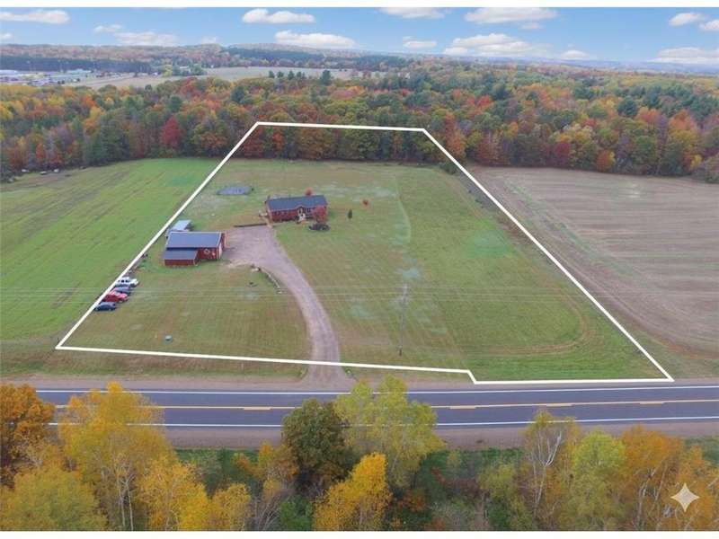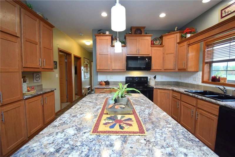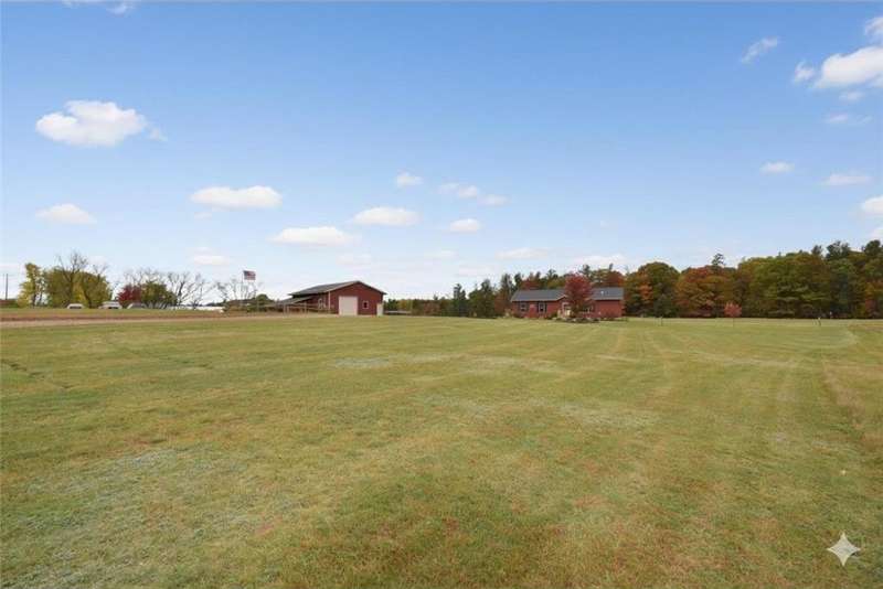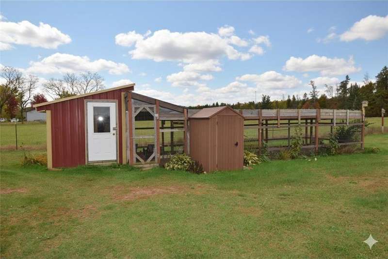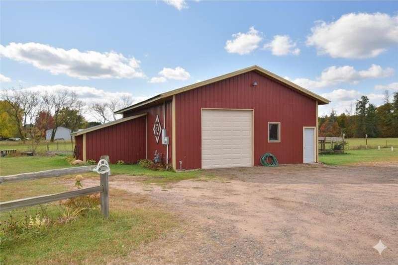 Charming newer 3 BR, 3 BA home offers all one level just outside of Spooner! Gorgeous setting situated on 5 private acres w/a mix of open and some wooded land. Home & all mechanicals new in 2018. You'll love the light & bright open floor plan! Stunning eat-in kitchen w/large island with seating and separate dining area, oak tiered cabinets, fun pendant lighting, black appliances & complimented w/distressed vinyl flooring. Perfect for entertaining! Large living room & dining accented w/reclaimed white barnwood. Retreat to your own master suite & 2 addt'l. BR's & BA for guests to enjoy. Main floor laundry, full basement is insulated w/finished ¾ bath, 9' ceilings & is a blank pallet for you to finish to suit & egress window for addt'l. BR. Beautiful landscaping surrounds the home, perennials, deck to watch the wildlife, large fenced garden & a darling chicken coop & fenced run. Large steel 30x40 fully insulated/heated 2+ car gar. w/1/2 bath, lean-to for addt'l. storage, has all the makings for the perfect man cave & place to store all the toys. Such a rare find for a quality, highly efficient build that's impeccably maintained and ready for you to step into!