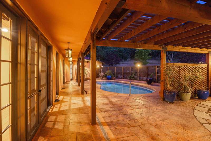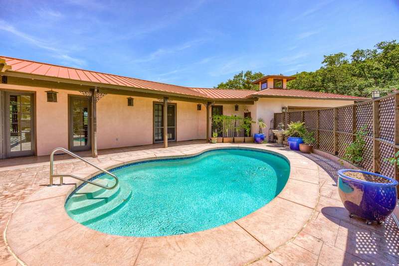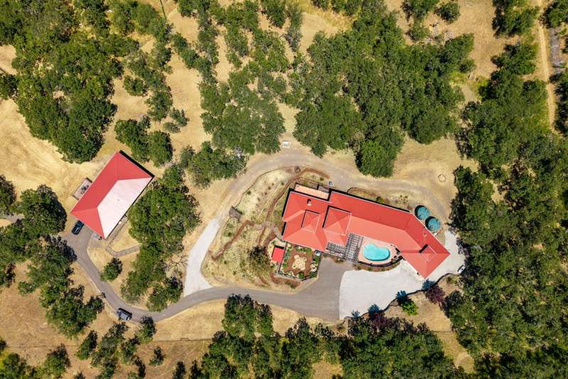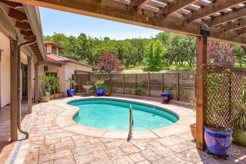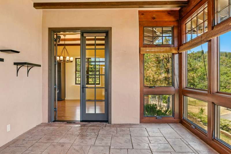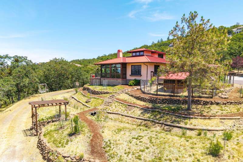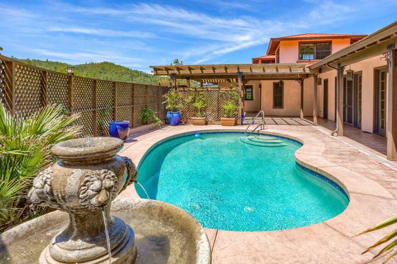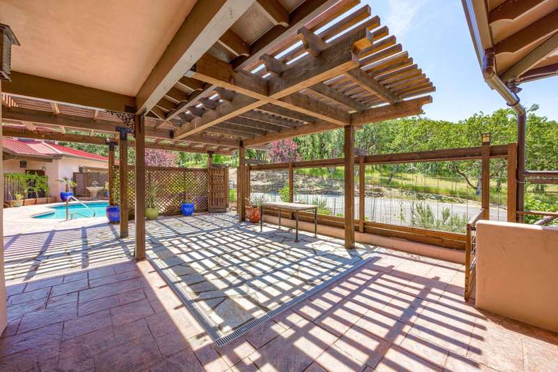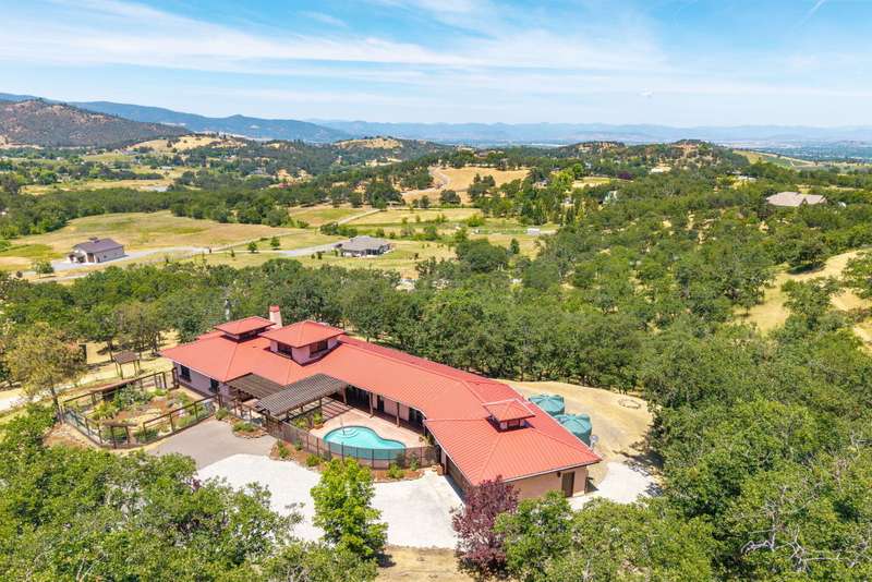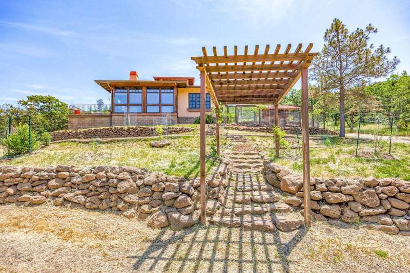 Custom Strawbale-insulated serene spa-like living w/stunning views. Paved drive w/elec gate opens to 6.62 fncd acres w/organic garden. Stucco ext w/fenced courtyard, flagstone walkways, heated saltwater pool, palm trees, window boxes & nite lighting. Wood-clad alum windows. Cupolas w/elec windows. Finished 2 car garage plumbed for bathroom. Stunning interior bamboo and cork floors, great room w/10' beamed ceiling & soapstone wdstv. 8' French doors lead from dining room to sunroom which opens to patio. Open kitchen has 5 burner cooktop, dbl conv ovens, coffee bar, granite counters & cherry cabinets. Mstr suite opens to courtyard, dbl sinks, claw foot tub, glass shower & tiled floors. Guest ste & 3rd bedroom/den leading to courtyard. Upstairs 230 sf office w/360? views. 1200 sf insul out-bldg wired for 220, HVAC, full bath, mini kitchen, professional recording studio or home theater, 300 sf deck w/valley views & 1000 sf carport. Irrigated w/10,000-gallon rainwater catchment.