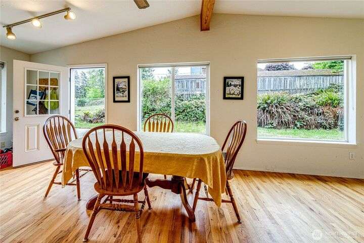 Charming rambler w/ 3 bed/1 bath on the eastern edge of town. Bright and open kitchen with plenty of space holds plenty of room to entertain. Exterior exit from kitchen opens up to fenced side yard where bbque or backyard games can flow effortlessly. Front yard is deer fenced and offers an array of level garden space. Hardwood floors throughout and plenty of natural light. Close to the bus line and the East side Safeway Plaza.