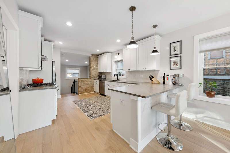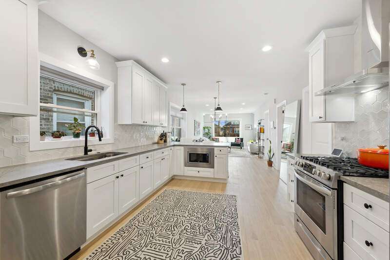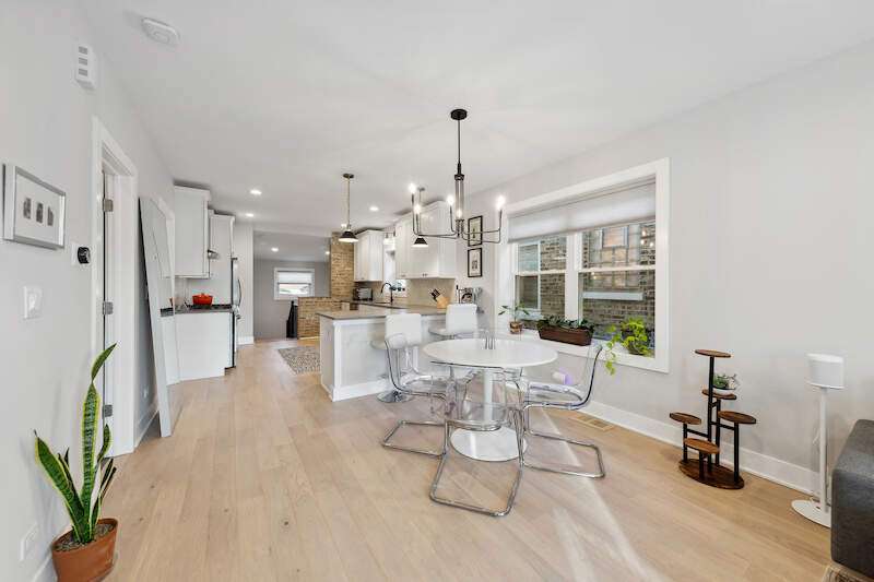 Gut-renovated single-family home for sale in Belmont Cragin, Chicago - 4 bedrooms, 2 bathrooms, smart home upgrades, finished basement, and a 2-car garage. This 2023 fully updated home blends modern luxury with timeless Chicago charm, located in one of the city's most vibrant and park-filled neighborhoods. Featuring 4 spacious bedrooms and 2 beautifully designed bathrooms, this professionally redesigned home is ready to welcome you into a lifestyle of comfort, convenience, and curated style. Welcome to the Chicago Lifestyle, a Belmont Cragin story. Set on a quiet, tree-lined street, this sun-drenched home immediately impresses with its west-facing picture window that floods the open-concept main floor with golden afternoon light. Inside, soaring 9' ceilings and white oak flooring create an airy, elevated feel throughout the main living and dining areas. The designer kitchen is a true focal point, outfitted with honed quartz countertops, brand-new stainless steel appliances, hex tile backsplash, and an exposed brick accent wall that adds just the right amount of edge and warmth. This is a smart home in every sense: electronic blinds and app-controlled lighting have been seamlessly integrated throughout, allowing for comfort and control at your fingertips. Three well-appointed bedrooms on the main level share a thoughtfully designed bathroom with a soaking tub and separate walk-in shower. The fully finished basement adds even more flexibility to the home, with a massive family room, custom dry bar with wine fridge, large laundry area, a fourth bedroom, and a second full bath. Luxury vinyl plank floors below provide both durability and style-perfect for everyday living or entertaining. Step outside to a backyard that invites connection to the earth: raised vegetable beds and professional landscaping offer the perfect canvas for the avid gardener or outdoor enthusiast. A 2-car detached garage completes this incredible offering. And then, there's the neighborhood. Belmont Cragin is one of Chicago's most dynamic communities, rich with parks, restaurants, and easy access to transportation. Enjoy weekends at nearby Riis Park, Hanson Park, or the iconic Portage Park, just a short distance away. Grab a comforting bowl of pozole from local favorite Pozoleria el Mexicano, or indulge in fresh seafood at Baha Restaurant. Daily essentials are effortless with Aldi just one block away, and CTA buses and major highways offer quick commuting options across the city. If you've been searching for a move-in ready, gut-renovated home in Chicago that offers both modern amenities and a welcoming community-this is it. This isn't just a home. It's a lifestyle, and it's waiting for you in Belmont Cragin.