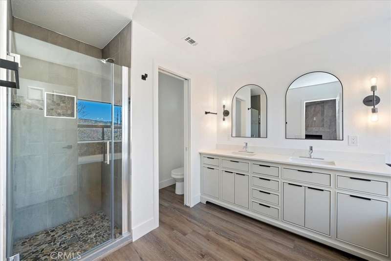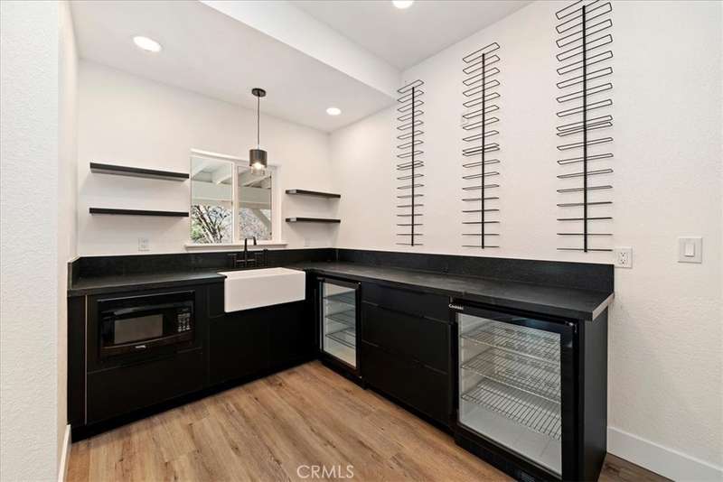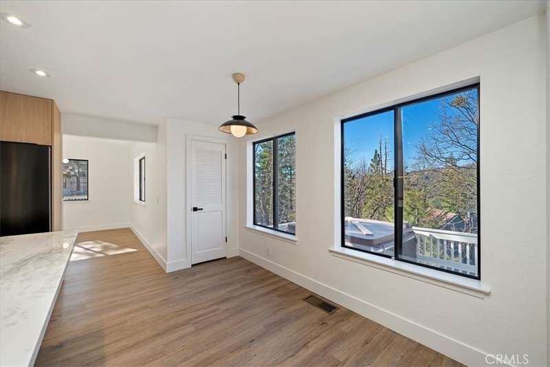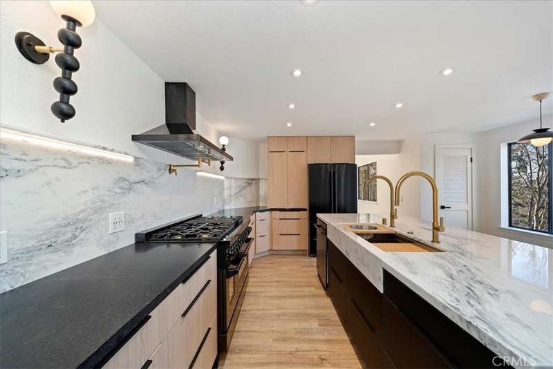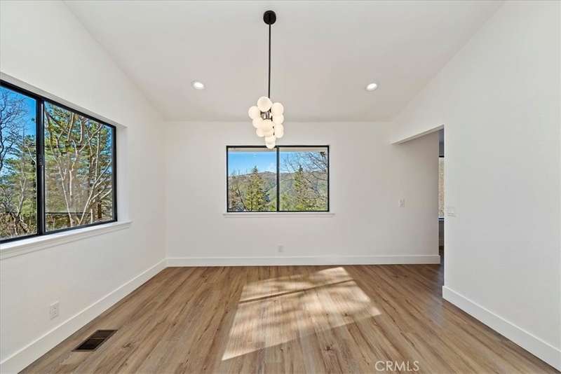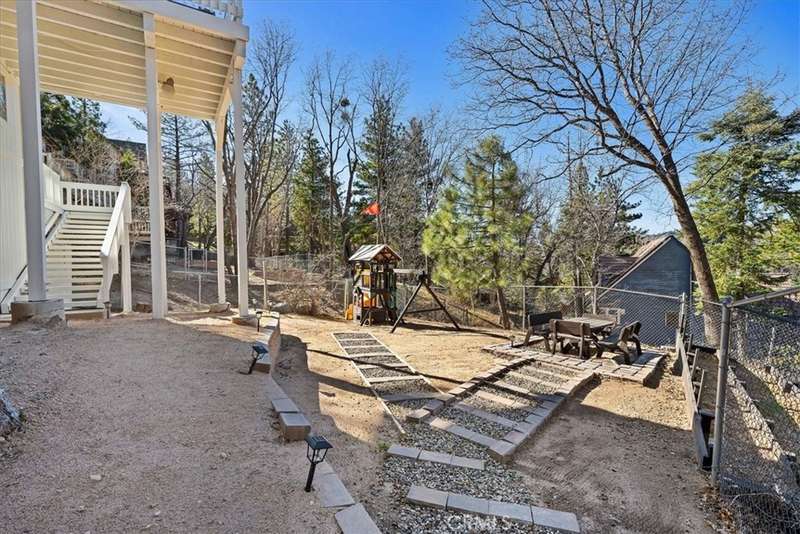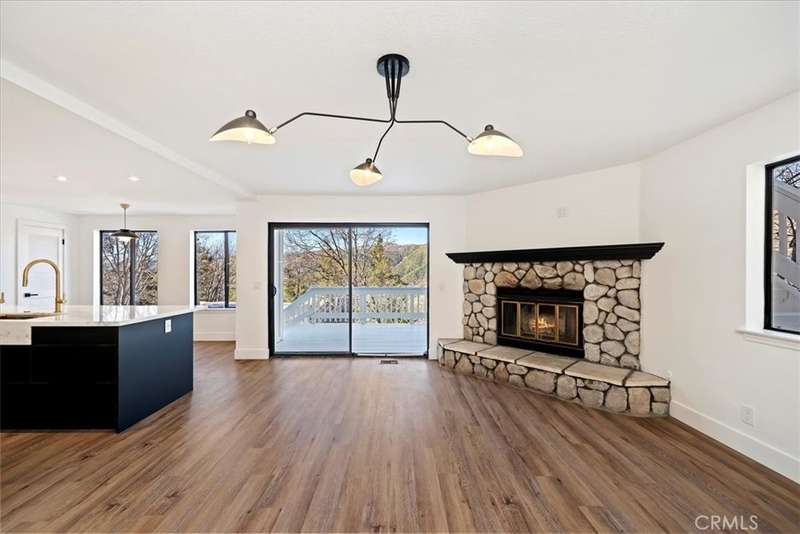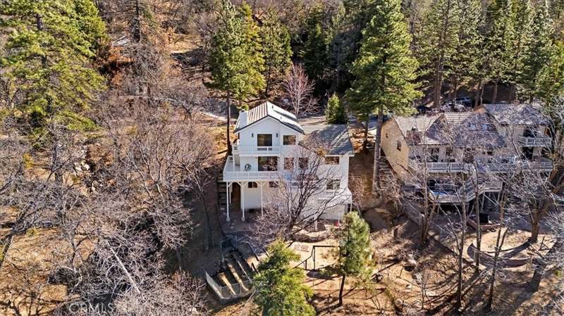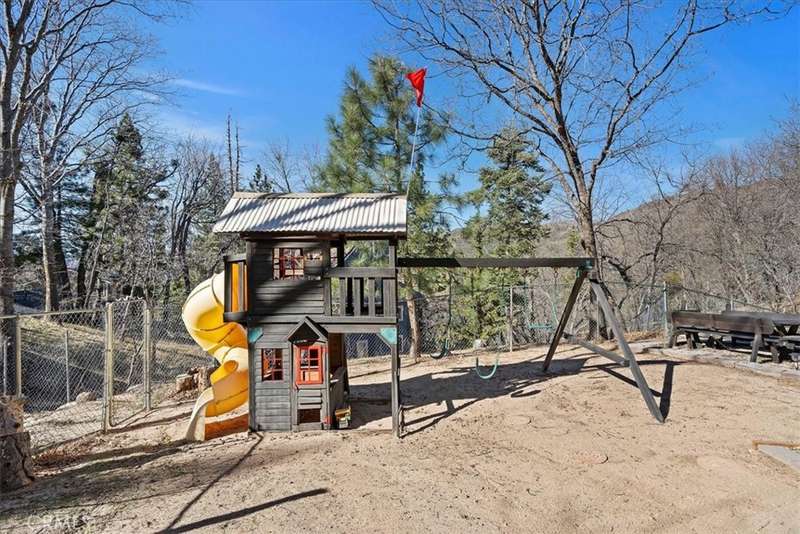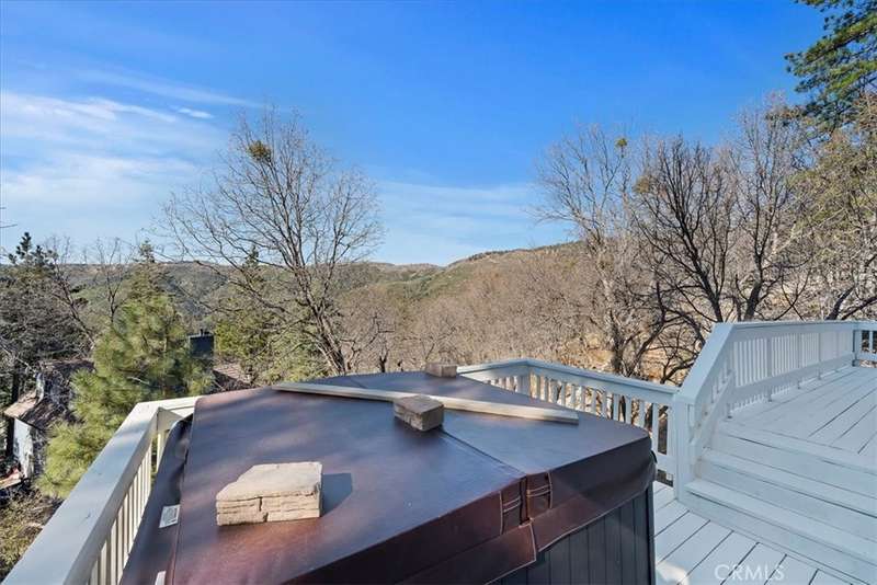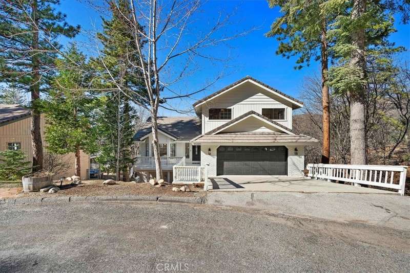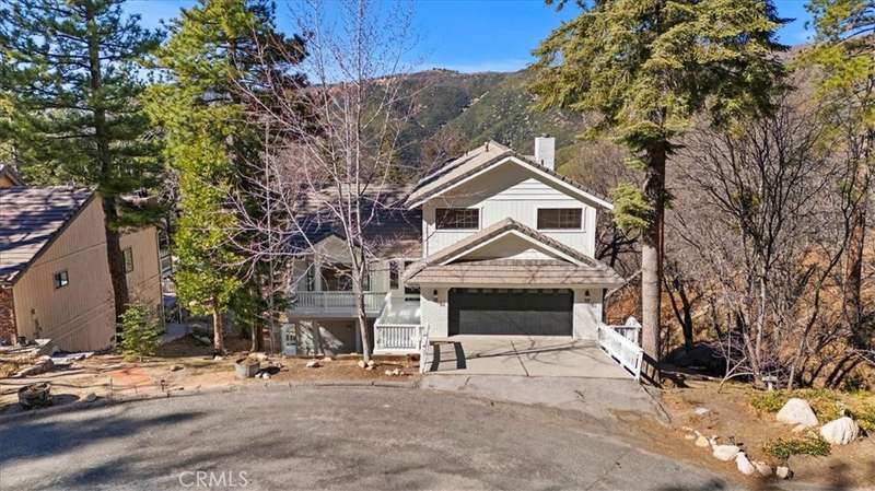 Beautifully renovated Luxury Cabin in the Enchanted Forrest. This Sought after area is surrounded by nature, phenomenal views, and nestled on a quiet cul-de-sac. Immaculate upgraded chef's kitchen featuring a 48" black stainless steel Zline professional-grade range, matching Zline appliances, a Kraus 45" two-tier stainless steel sink, and brushed brass fixtures. Dolomite and black mist honed granite countertops and backsplash complement the European flat-panel oak and black cabinets. Enjoy luxurious living with wood-burning & gas fireplaces in the family room and master suite, plus an electric fireplace in the game room. Enjoy beautiful forest views from all 3 levels, including a jacuzzi located on the main level deck. All bathrooms are recently renovated with tasteful, modern updates. New light fixtures, door handles, LVP flooring, and fresh paint throughout. Dual laundry areas, decks off the family room, master suite, and game room, and a spa. Game room set up with theater surround sound and bar area. Game room was once a mother in-law suite and can be converted back for great rental possibilities or separate family living area. Private backyard with playground, picnic area, and space to add more. This amazing opportunity is located close proximity to Lake Arrowhead, Big Bear, and Snow Valley Ski Resort.