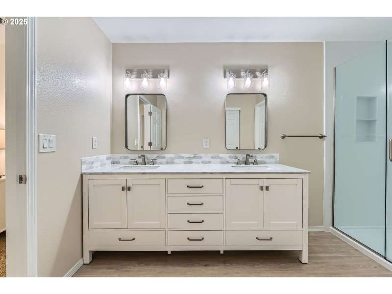 Completely turn-key townhouse in desirable Hillsboro location! This beautiful home has been meticulously maintained and fully remodeled with no detail overlooked and no expense spared. Deluxe kitchen offers new ceiling-height cabinets with soft close drawers, quartz counters, stainless steel appliances, pantry, wood floors, and a breakfast bar. It's completely open to the great room and dining room, ideal for entertaining. A slider offers convenient access to the fenced backyard and new oversized paver patio. Upstairs, a luxurious primary suite features a fully remodeled attached bathroom with walk-in shower, LVP floors, double vanity with dual sinks and marble countertops, and new fixtures. There are two additional generously sized bedrooms upstairs, plus a fully remodeled hall bathroom with new shower/tub enclosure, LVP flooring, and new vanity with quartz counters. The laundry room is conveniently located upstairs. High-quality construction with high ceilings, abundant window space for excellent natural light, and large room sizes. Numerous updates including recent interior paint, recent flooring, new fixtures, and important big-ticket system updates, including new furnace (2022) and A/C (2020), new water heater (2022), new roof (2021), and more. Attached insulated garage with epoxy flooring, storage, and opener, plus driveway parking. Fantastic location, close to parks, downtown Hillsboro, local Washington County employers, and easy access to Hwy 26!