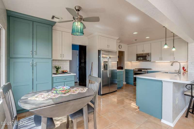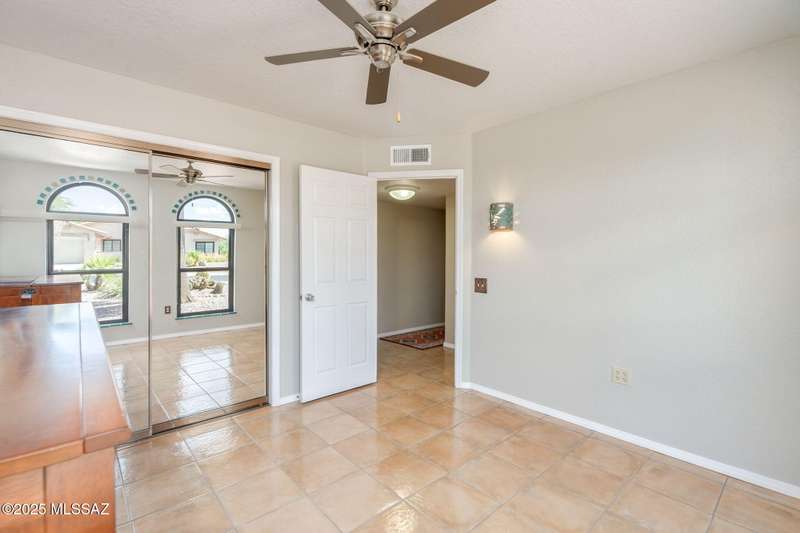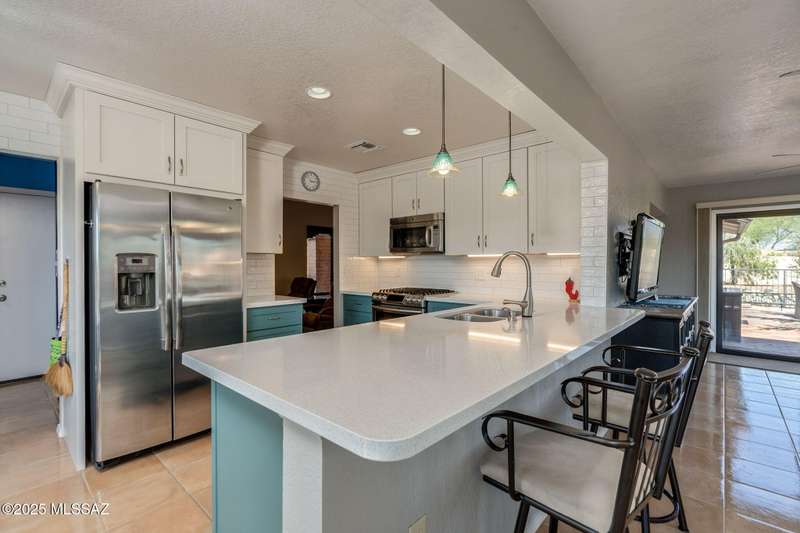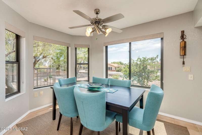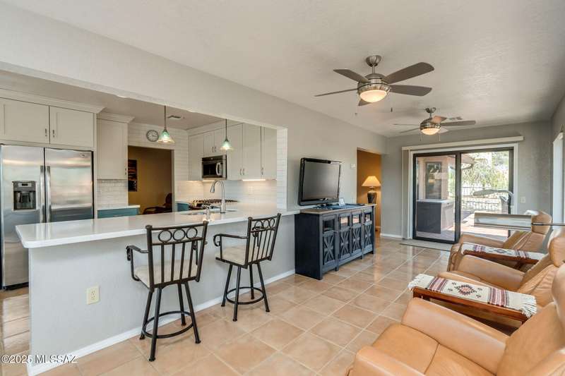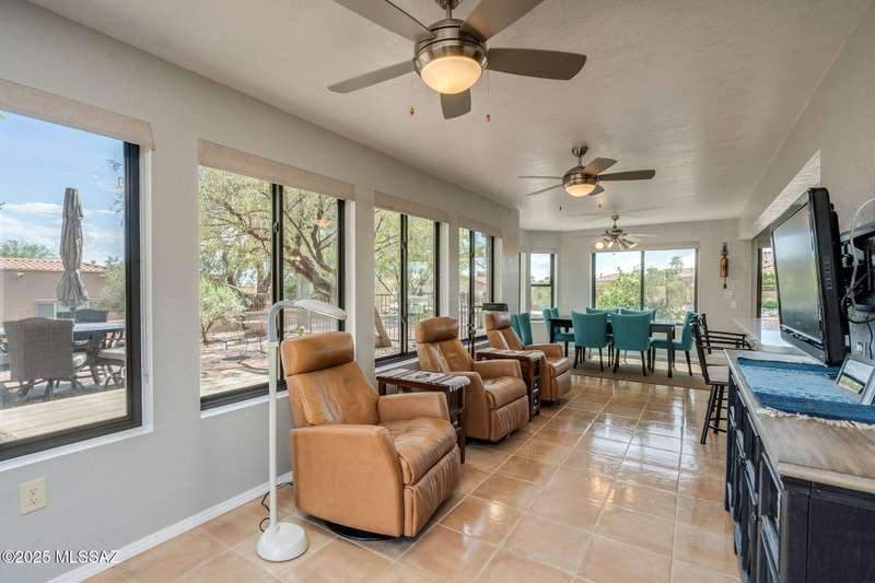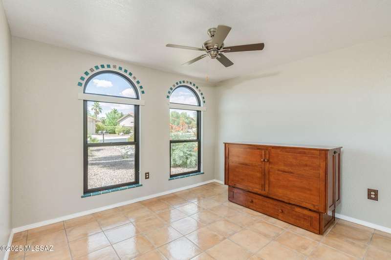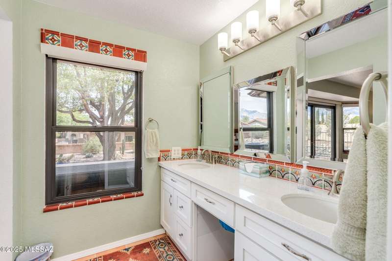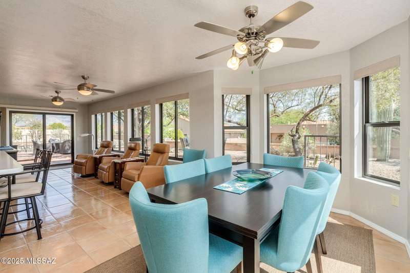 Fabulous, highly updated 2BD/2BA (1,645 sq ft) extended Dakota plan boasts flexible living spaces, seller owned SOLAR plus tranquil outdoor setting with Catalina mountain views. Formal living area displays vaulted ceilings and decorative tiled fireplace while large Great room affords multiple dining options and walls of windows for natural light. Sleek chef's kitchen with quartz and SS amenities adjoins built-in office. Inviting Primary suite hosts large bay window and ensuite bath while guest room adjoins hall bath. Extended garage with laundry sink & storage plus updated roof/HVAC/water heater. Step outside to an enchanting yard with meandering brick paver patios, mature shade trees and impressive Catalina views. A perfect retreat in Sun City Oro Valley's premier Active Adult community.