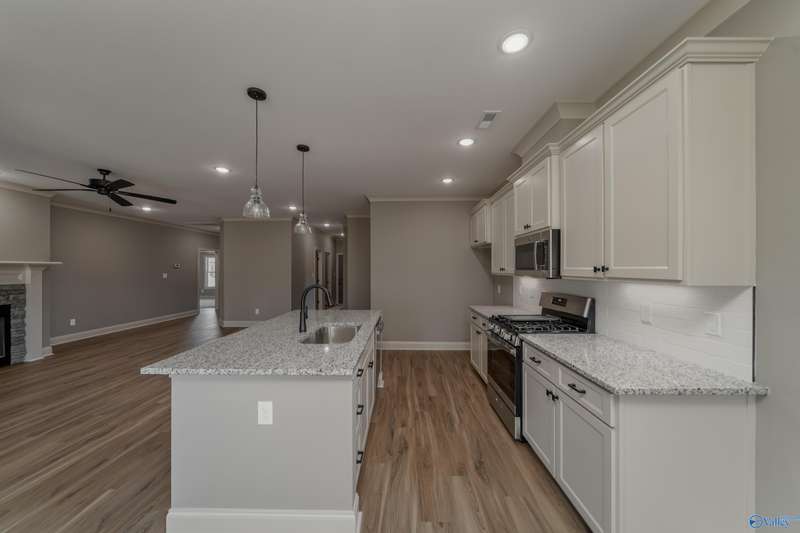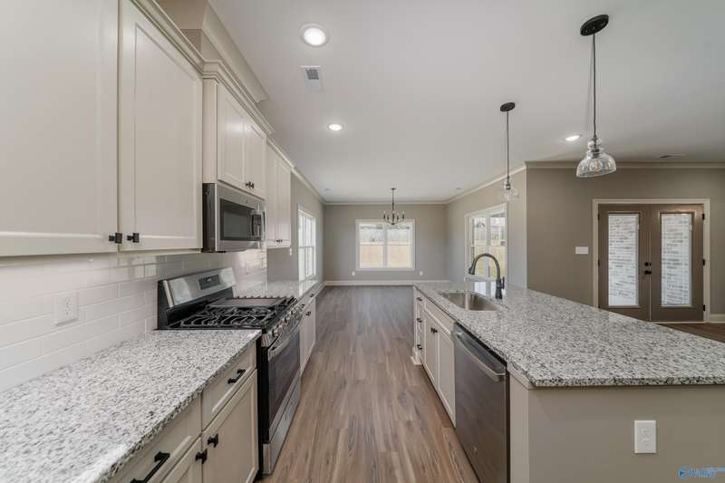**Model Home for sale and Move In Ready!!** Welcome home to the thriving neighborhood of Shoal Creek! This stunning new construction features 4 bedrooms, 3 bathrooms, and several amenities throughout. Enjoy the modern kitchen with stainless steel appliances, granite countertops, and a walk in pantry. The main living and wet areas offers LVP flooring, while 9ft ceilings enhance the spacious feel. Durable 30 year shingles, gutters, and downspouts ensure longevity. Relax on the covered porches and appreciate the fully sodded yard with an irrigation system. This home perfectly blends style, comfort and quality!**24 hour FROR**