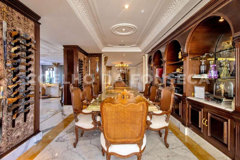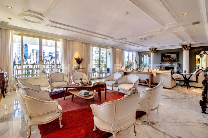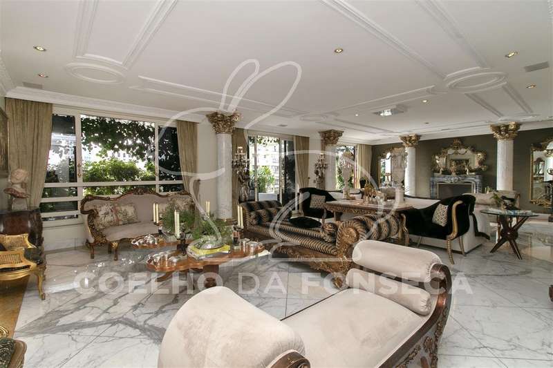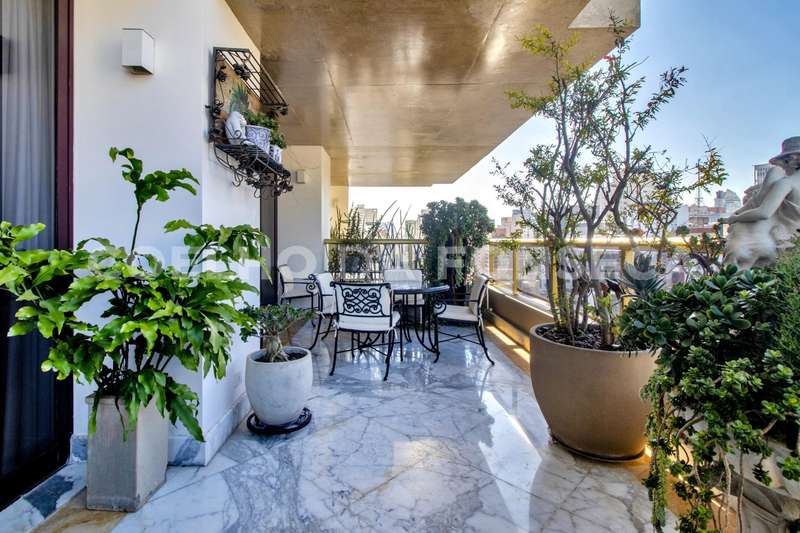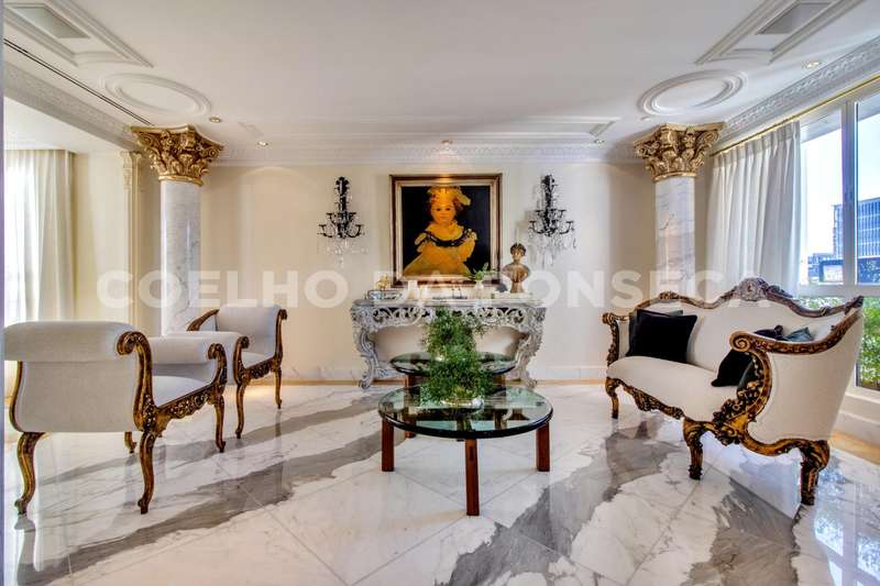 Apartamento em prédio imponente, andar alto com linda vista. Projeto diferenciado, com piso estatuário italiano na área social, doze colunas também de mármore estatuário, com capitel de bronze banhado a ouro. Boiserie típica do século XVIII no hall de entrada e sala de jantar. Paredes da área íntima revestidas de Rádica Pioppo na cor clara, assim como os armários. Ar condicionado central, dois aquecedores, instalação de gás com medidores. Prédio com vagas para visitantes.