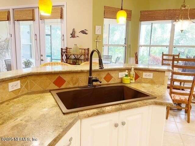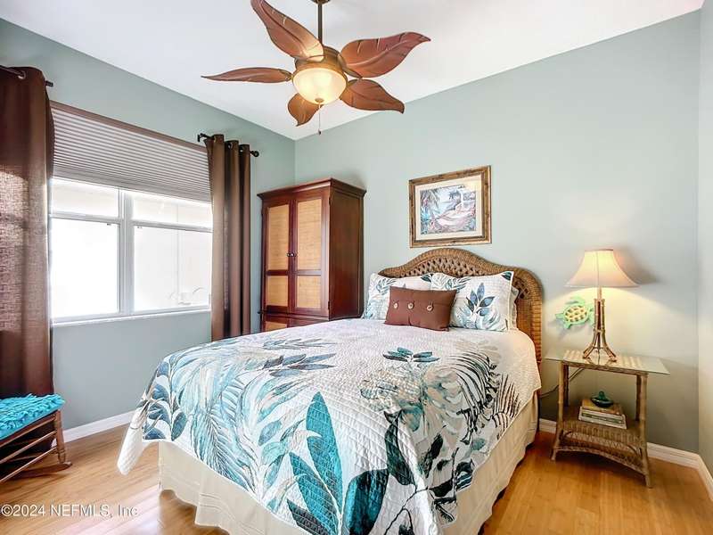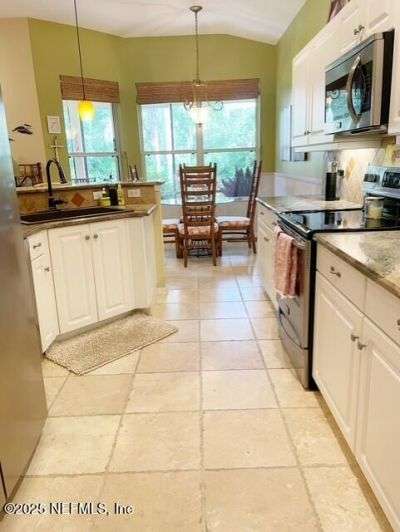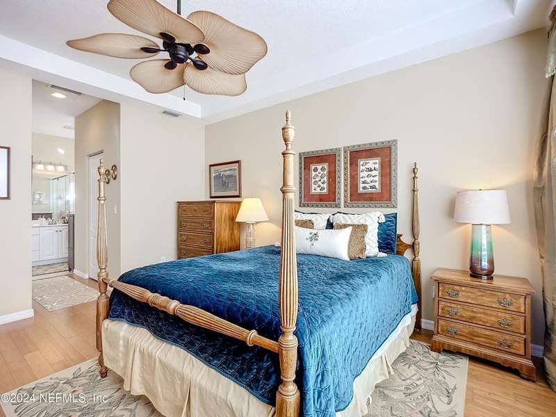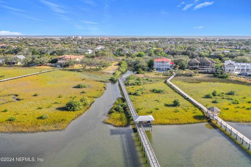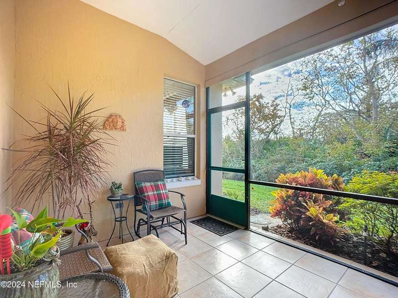 Are you ready to embrace the laid-back island lifestyle? This stunning home in the gated community of Ocean Palms is your perfect retreat! With a freshly painted exterior (November), inviting curb appeal, and a paver driveway, it's love at first sight. Inside, enjoy elegant travertine tile and farmhouse sink in the kitchen and bamboo floors in the primary and two bedrooms. Unwind in the spacious screened-in patio, where you can relax and take in the serene beauty of 60 acres of natural land right in your backyard, providing ultimate peace, privacy, and picturesque views. The garage is equipped with 3 roof racks for storage and a pulley system to store your kayak. Located on Anastasia Island, Ocean Palms offers incredible amenities, including a private dock on the Intracoastal Waterway, walking trails, a playground, and lawn care included in the HOA. Enjoy a 7-minute bike ride to the beach, easy access to top-rated schools, and proximity to historic downtown St. Augustine.