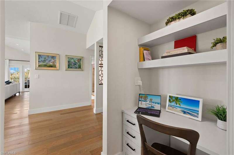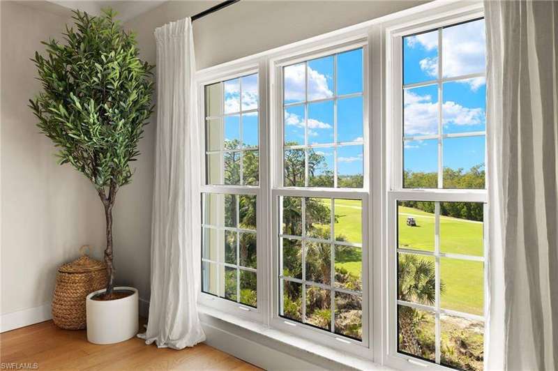 Welcome to 4460 Yacht Harbor Drive in desirable Windward Cay enclave in Windstar on Naples Bay. If you are considering Gulf Shore Boulevard, Moorings or Park Shore condo living Windstar offers the waterfront lifestyle while being set back and protected from the bay for true peace of mind. This stunningly redesigned and fully renovated corner end-unit penthouse unit is located in a boutique 6-unit elevator building with only 2 units per floor and features 2 Bedrooms and 2 Baths in almost 2200 square feet of truly luxurious living space. Enter into a welcoming foyer to a truly fabulous open-concept living space with a contemporary light and airy vibe with soaring vaulted ceilings and stunning natural views all around. Spacious living room with walls of glass boasting unparalleled Audubon Society-certified views overlooking the serene 8th fairway, lake and tropical mangroves. A true chef's eat-in kitchen replete with custom shaker cabinetry, GE Monogram stainless steel appliances, pot filler, contemporary quartz countertops, open shelving with lighting, breakfast bar and custom built-in Brazilian walnut dining table ideal for daily dining and entertaining. Custom built-in office nook ideal for today's work from home lifestyle. Convenient laundry room with side by side washer/dryer, custom built-in cabinetry and counter affording great storage. Master suite oasis features spacious bedroom, access to lanai, dual walk-in closets with California custom built-ins and a spa-like master bath with a gorgeous oversized walk-in shower with dual rain heads, contemporary floating double vanity and freestanding soaking tub. Large guest bedroom with a gorgeous view plus a lovely full hall bathroom. Oversized covered parking for 2 vehicles and electrical outlet for your golf cart. No expense spared in this truly custom renovation with the finest of materials and craftsmanship a rarity to find this level of high-design and finish in a condo in Windstar. Windstar on Naples Bay is the only gated golf community with Tom Fazio designed 18-hole golf course that offers direct bay access, a private beach plus dock on Keewaydin Island with seasonal October-July boat shuttle included in your Windstar HOA plus a full service 73-slip deep water marina. Newly renovated clubhouse (separate membership) with multiple dining areas with stunning views of Naples Bay and Port Royal, billiards room, 6 Har-Tru tennis courts, 3 bocce courts and a state of the art fitness center slated for 2026 completion. Preferred location just a short 2 mile drive via car, bike or golf cart to downtown's 5th Avenue South and 3rd Street South known worldwide for its fine dining, shopping and beaches. Situated in the vibrant Bayshore Arts District, Windstar is walkable to Naples Botanical Garden and Naples Pickleball Center home of the pickleball US Open. Easy access to I-75, Naples and Fort Myers airports.