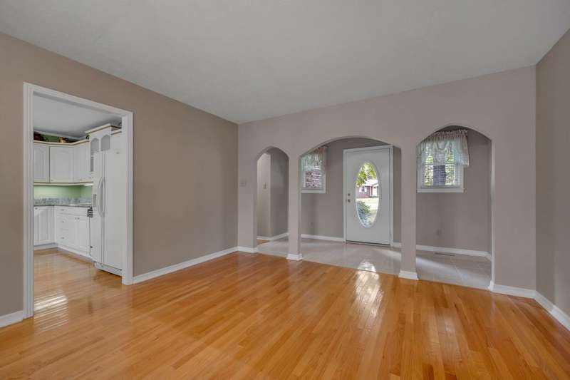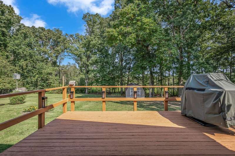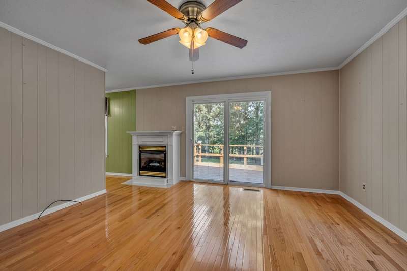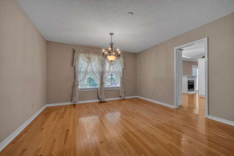 This stunning home is conveniently located near the interstate. This beautifully maintained property features elegant hardwood and tile flooring throughout. A spacious dining room/den and a cozy family room with a fireplace. Enjoy entertaining and cooking in the updated bright cheery kitchen too! Additional highlights include a storage building equipped with electricity and heat, plus an overside garage. You'll love the spacious deck for Fall gatherings.