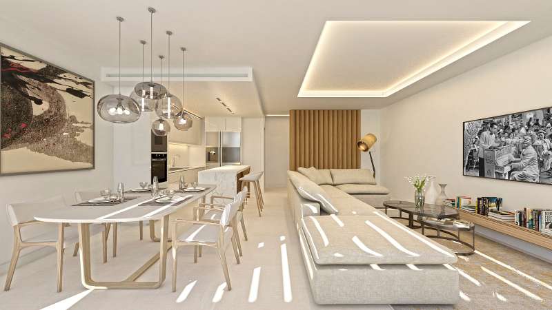 These are smartly designed apartments for contemporary luxury living that boast breathtaking views overlooking the coast and the Mediterranean Sea. The main highlights of the apartments are modern architecture, top-quality finishes, premium materials, and the use of the latest trends in cutting-edge technology. All units will be delivered with a sophisticated a/c system, fully fitted kitchens with luxury Italian furniture and branded appliances, and underfloor heating. Each apartment will have its own storage room and private parking.