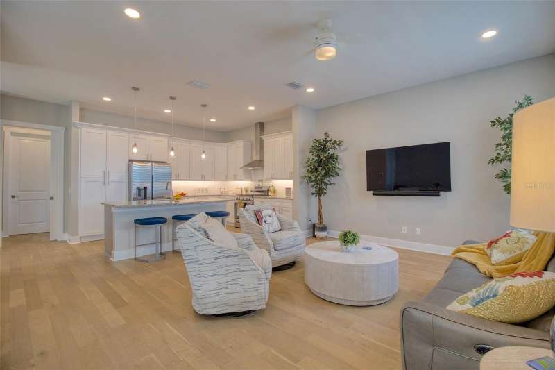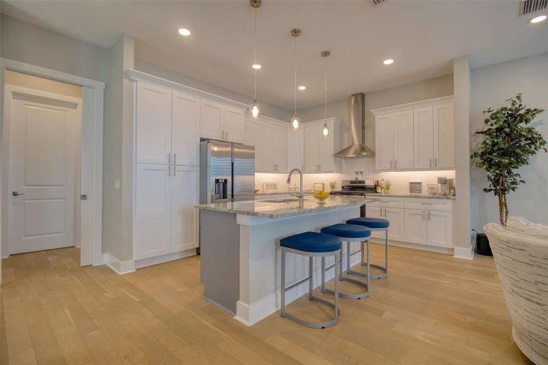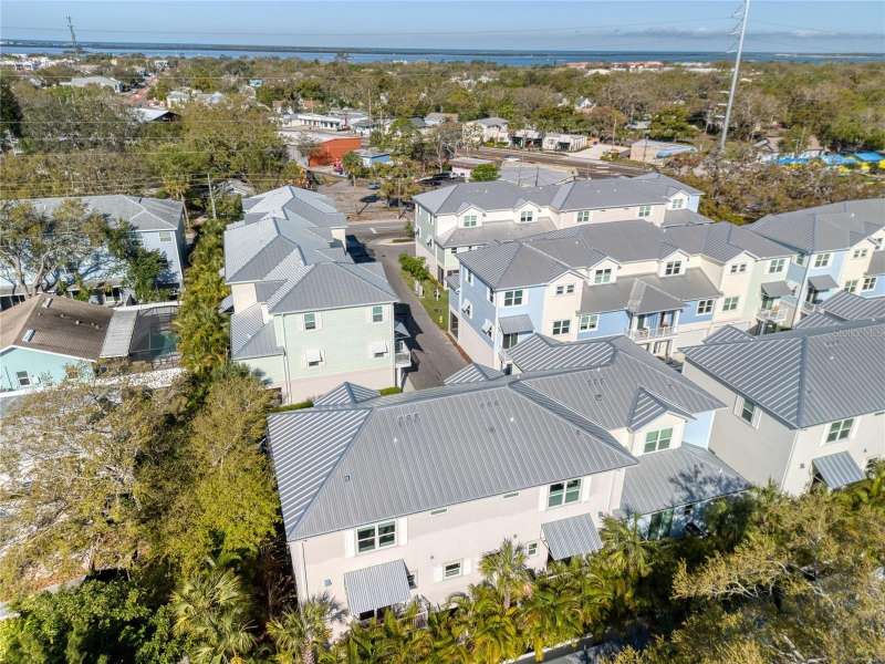 MOTIVATED SELLER!! Welcome to the best of Downtown Dunedin living in this stunning 2390 sq ft townhome with superior ICF (Insulated Concrete Forms) construction, cement siding and a metal roof built in 2023. This intimate complex of townhomes, will be the only newer construction Downtown neighborhood with a POOL! Bright and beautifully chic aptly describes this pristine 3 bedroom, 3 1/2 bath (AN ADDITIONAL 1/2 BATH IN THE GARAGE) townhome in the highly sought after vibrant Downtown Dunedin golf cart area, tucked deep into the neighborhood for peace and quiet and privacy. This elegant END UNIT home features plenty of natural light and room to grow in this well laid out floor plan, with arguably the best layout in the neighborhood, with an ELEVATOR seamlessly connecting the 3 levels. This delightful home features 3 generous bedrooms (all with a bathroom), a dining area, a spacious living room, and a culinary enthusiast's dream kitchen. The kitchen showcases pristine granite countertops complemented by a spacious island, sleek white 42" cabinetry, and high-end stainless-steel appliances including a gas range. The tranquil primary suite is located on the third floor for privacy; with its airy dimensions and a sumptuous ensuite bath that boasts dual vanities set in stunning granite, alongside a frameless glass shower and a designer walk-in closet. The home's second and third bathrooms mirror this modern aesthetic with its streamlined fixtures and granite surfaces. Privacy and entertainment seamlessly merge in the home's outdoor living spaces, featuring a private patio, and 2 balconies, including a private balcony off the 2nd floor bedroom. This home boasts superior architectural touches such as; engineered hardwood flooring, 6-inch baseboards, towering 10-foot ceilings, LED lighting, modern light fixtures, open floor plan, neutral color tones, silhouette blinds, 8" trimmed windows casings, solid core 8 ft interior doors, tankless gas hot water heater, and CA Closets. The 4-car garage is an exceptional space that can house, your golf cart, kayaks, jet skis, workshop or a fun "Man Cave" with access to the back patio. The garage also has a 1/2 bathroom for convenience while entertaining outside or working out. This space also gives the option of building a bedroom on the ground floor. This home does not compromise on comfort or elegance. This delightful home also has energy-efficient hurricane impact windows and offers ample storage solutions. This chic home's location is unparalleled—a leisurely walk or easy golf cart ride to downtown dining, Pinellas Trail, parks, shopping and festivities. This home's low maintenance "lock and leave" ability makes it the perfect home for buyers who like to travel or just want worry free living and more time to spend at the beach or downtown. This home is the quintessential Florida lifestyle home: offering highly rated schools, pristine beaches, and everything delightful Downtown Dunedin has to offer.