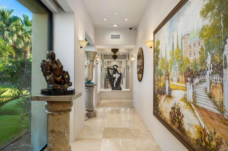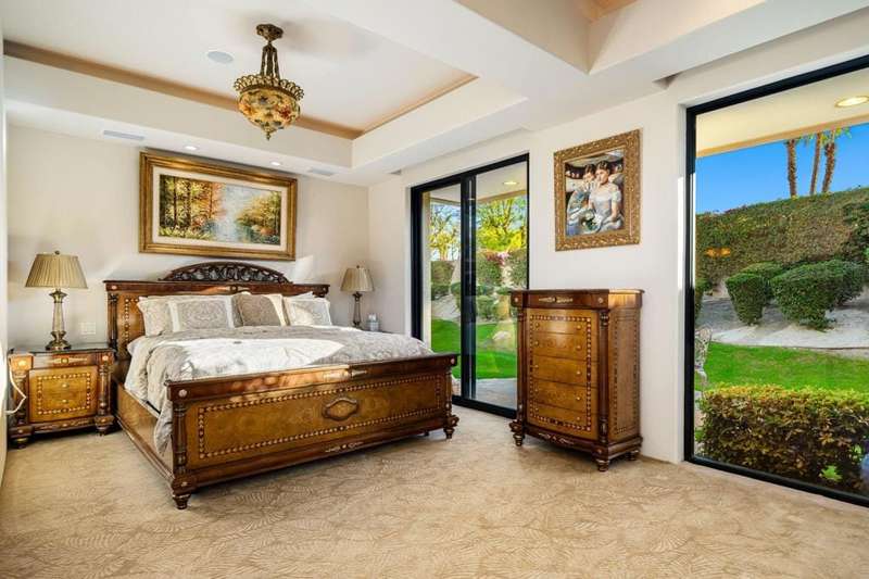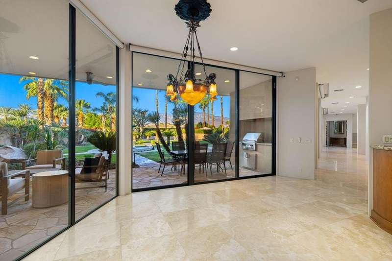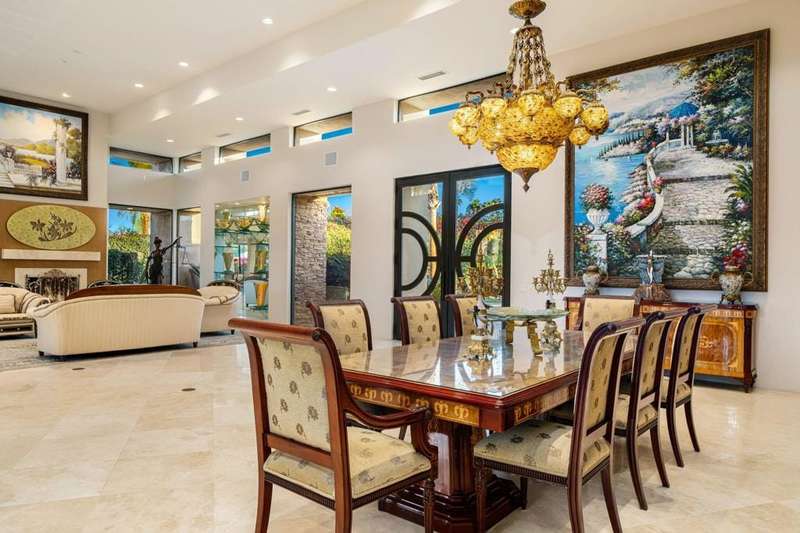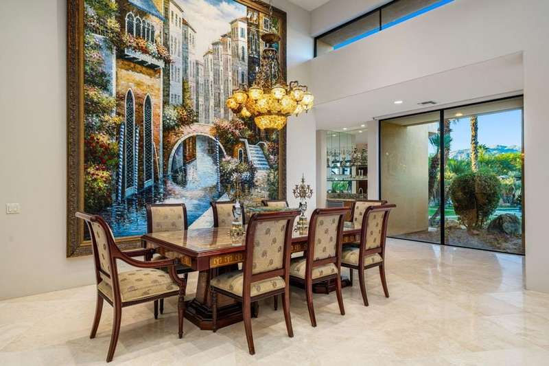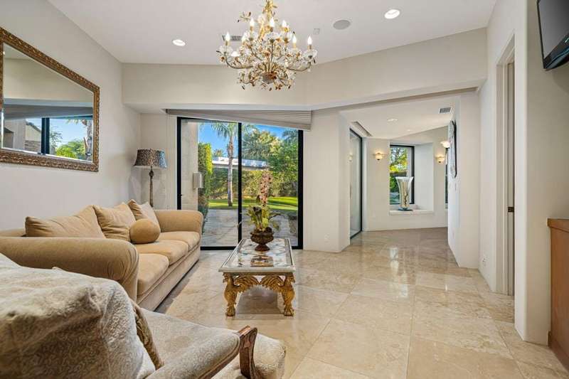 This private Custom Contemporary Rancho Mirage Estate is situated in Serrano, an exclusive gated enclave offering some of the best south & west panoramic views in Rancho Mirage. Set on 1.09 acres of manicured, park-like grounds, this estate features 5 bedrooms and 7 bathrooms, including separate primary and guest wings for ultimate privacy.Elegant formal living and dining room boast fireplace and walls of glass to capture stunning mountain views. The spacious family room features a built-in entertainment center, breakfast area, and bar, flowing seamlessly to a gourmet chef's kitchen with Wolf and Sub-Zero appliances. The luxurious primary wing offers a fireplace, sitting area, and his-and-her spa-inspired bathrooms.The guest wing provides a sitting area, gym/office with bar and refrigerator, plus multiple luxurious guest suites with stone finishes, steam showers, jacuzzi tubs, and separate climate controls. A fully equipped separate guest room with full kitchen ensures privacy for visitors. Additional highlights include a gated driveway and 5-car garage accessible from both the main house and guest wing, plus resort-style outdoor spaces perfect for entertaining or relaxing under breathtaking desert skies.
