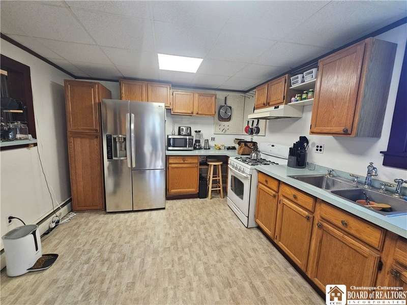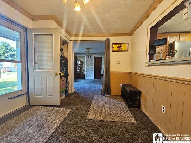 This inviting 4-bedroom, 2-bathroom home offers comfort, convenience, and plenty of room to spread out. The first floor features a bright living room, an updated kitchen, a cozy family room, a formal dining room, a first-floor bedroom, convenient laundry area, and an enclosed porch perfect for year-round enjoyment. Brand-new carpeting has been installed on the main level, adding a fresh touch throughout.Upstairs, you'll find three more bedrooms and a full bathroom, with both the bathroom and one of the bedrooms featuring skylights that fill the spaces with natural light. There's also a bonus room upstairs, ideal for storage or a small office.Outside, the property includes two outbuildings?a garage and a second structure great for storage or a workshop?both ready for a little TLC to unlock their full potential. A charming side covered porch offers a relaxing spot to enjoy the outdoors, while the large city lot provides space for gardening, play, or entertaining.Located just minutes from shopping, restaurants, and other Olean amenities, this home combines convenience with plenty of potential, making it an excellent opportunity for a buyer ready to make it their own.