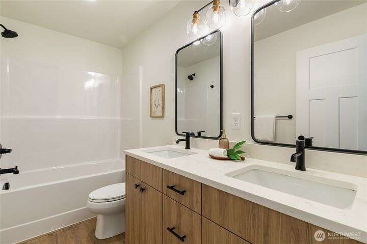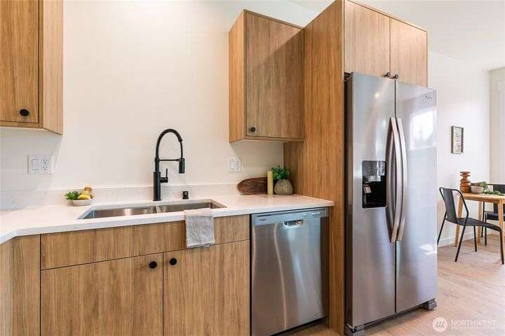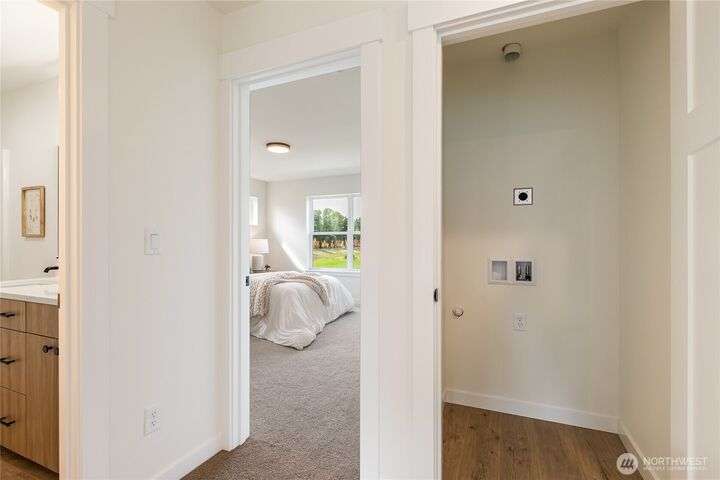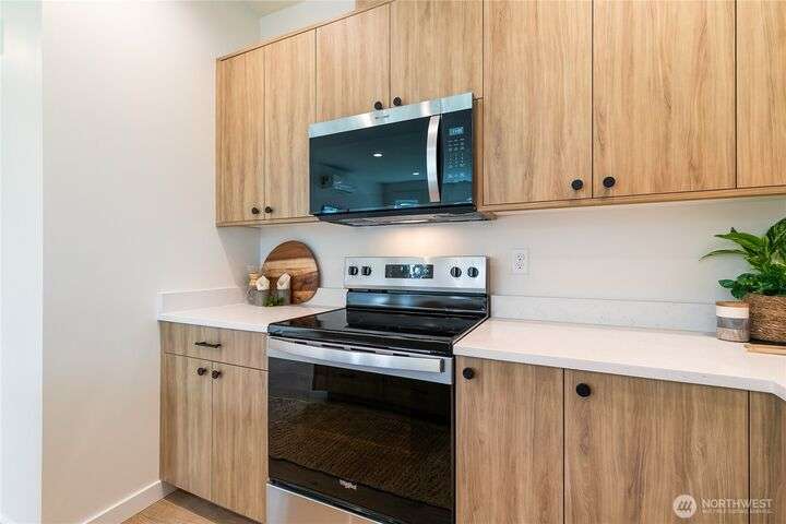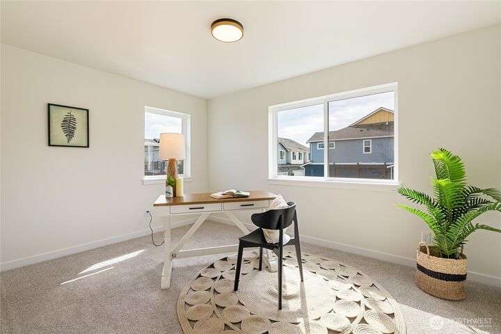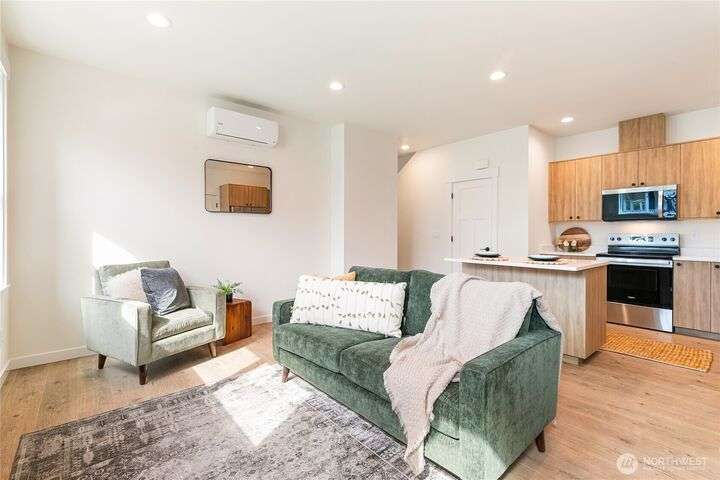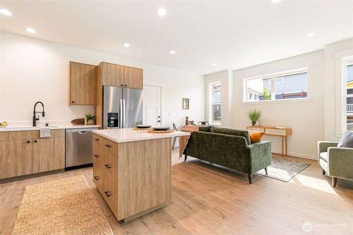Beautiful townhome in Trailside located along the pond and trail, offering fantastic views and privacy. This modern, craftsman style home offers warm, premium finishes throughout. This is a corner, 3-bedroom design w/ a 2-car garage & fenced front yard overlooking the pond. Main floor offers a welcoming great room, primary bedroom w/ en-suite bath, & kitchen w/ quartz counters, custom wood cabinets, & stainless-steel appliance package. Upstairs you will find 2 additional bedrooms, full bath, a bonus space, & laundry closet. Features include ductless heat/AC, premium flooring, pantry, ample storage, 9-ft ceilings on main floor - the list goes on. 5.5% permanent rate buy-down available & no HOA dues until 2027!