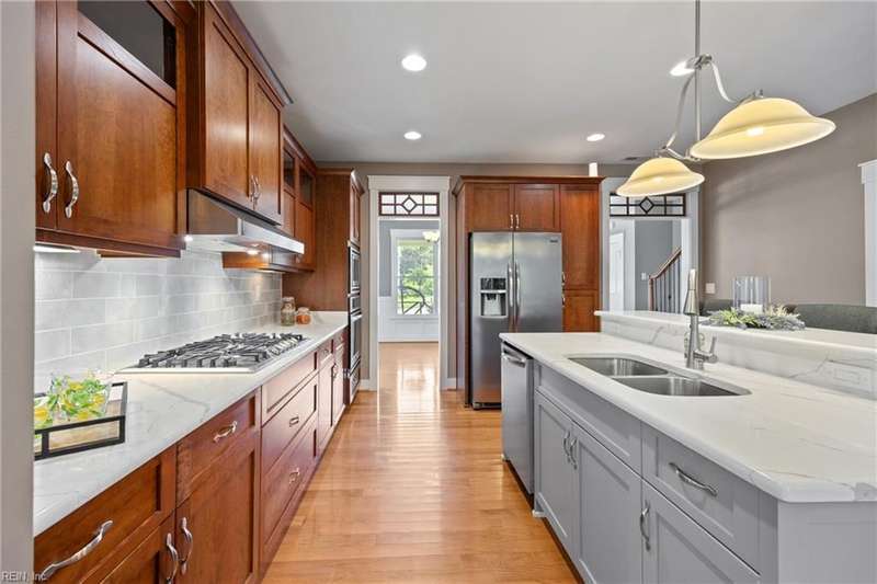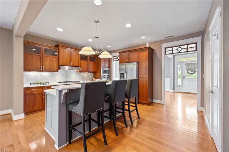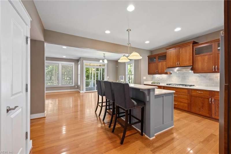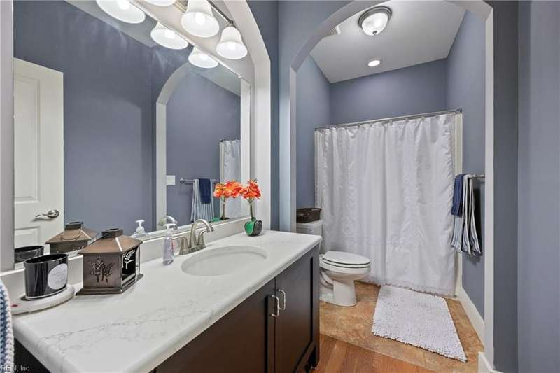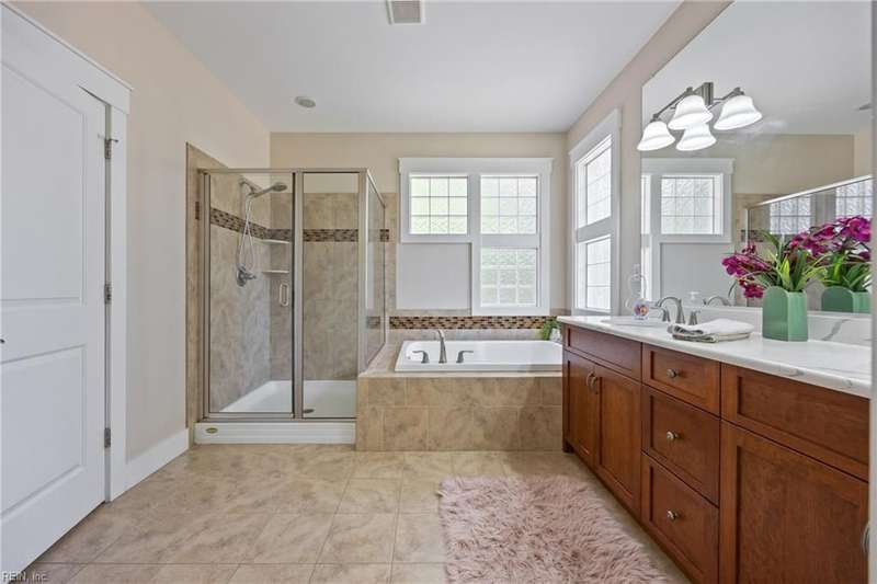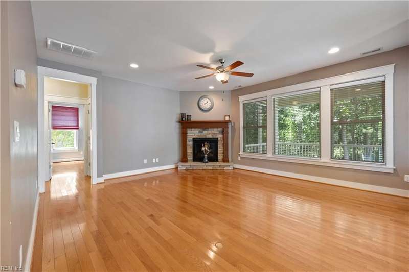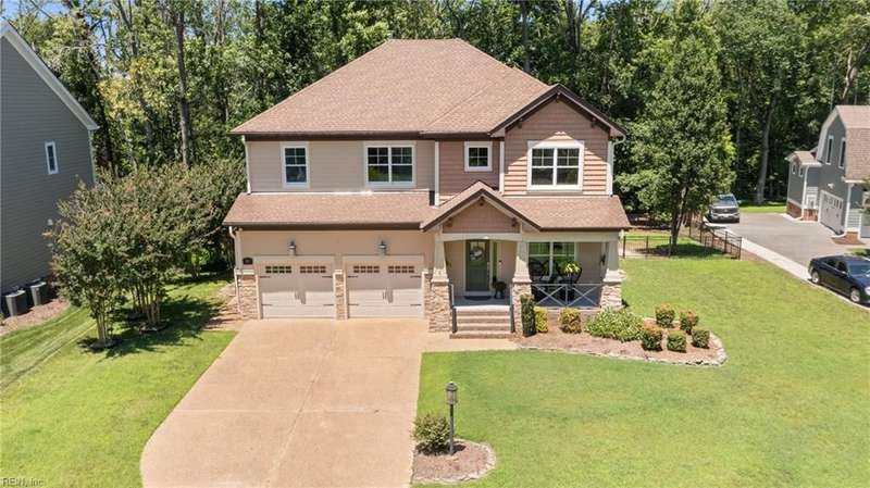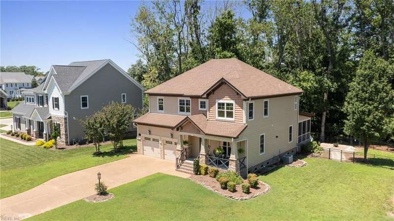 Located in the sought-after Founders Pointe community, this beautiful Sasser-built home offers 4 bedrooms and 3 full baths, including a downstairs bedroom and full bath?perfect for guests or multi-gen living. The spacious upstairs layout features a large primary suite with space for an office, nursery, or workout area, plus two closets and a luxurious en-suite bath with soaking tub and separate shower. Two additional bedrooms and a versatile den provide room to spread out. The open-concept kitchen and living space boasts updated countertops, backsplash, and generous cabinet space. Enjoy your private backyard from the screened porch. Resort-style amenities include a pool, pier with water views, playground, and trails. Close to shops, dining, bases, and more!