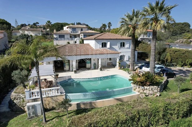Set in a peaceful and sought-after residential area, this stunning villa enjoys a southeast exposure and an elevated position offering breathtaking panoramic views.From the moment you enter, you’ll be charmed by the generous volumes and natural light of the spacious dual-aspect living room, enhanced by an elegant fireplace. This refined space opens seamlessly onto a large terrace featuring a beautiful mosaic infinity pool—perfect for relaxing while taking in the exceptional surroundings.The fully equipped independent kitchen (which can easily be opened to the living room) and the adjoining dining area complete the warm and welcoming living space.On the main level, you’ll find two spacious en-suite bedrooms with their own private bathrooms, as well as a large office—ideal for working from home or creating a library or reading room.Upstairs, the villa offers a serene master suite with its own bathroom, in addition to two further bedrooms sharing a stylish bathroom with both a tub and shower.A large basement, two storage cellars, a carport, and ample outdoor parking complete the property’s features.Set on a beautifully landscaped 1,400 m² plot, the villa also benefits from underfloor heating and mains drainage.Ideally located just minutes from the city center and major road connections, this property is perfectly positioned for both convenience and tranquility in one of the region’s most desirable settings.
