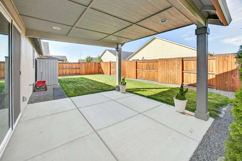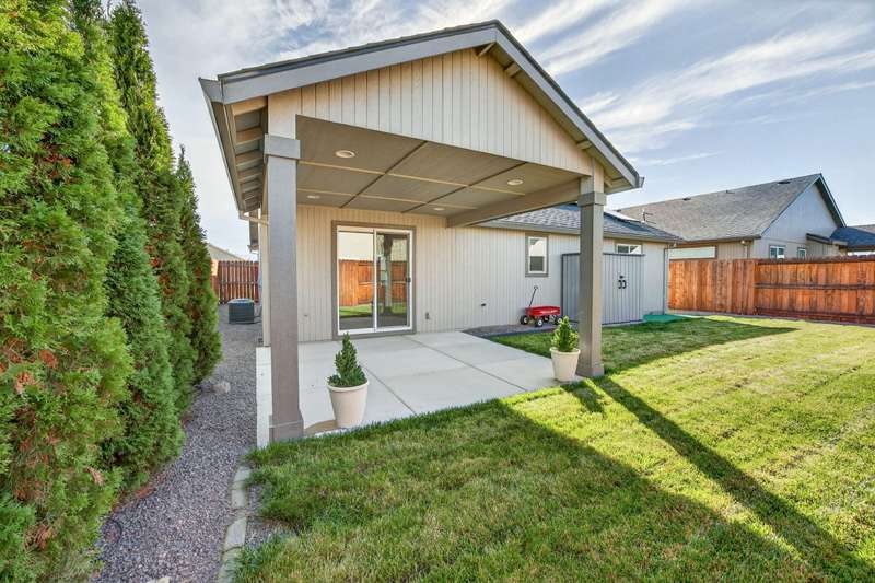 Better than new! This beautifully maintained single-level 2019 E. Medford home is move-in ready & full of thoughtful upgrades, including a paid for solar system! So much savings! Enjoy territorial & mtn views from the lg kitchen window, along w/upgraded features-custom window blinds/shades, newer stainless-steel fridge & range/oven, higher end fixtures & toilets, added garage shelving & insulation & backyard storage shed. The vaulted great room & tiled entry create a spacious, welcoming feel, while the primary suite offers a ceiling fan, double vanity.. a relaxing retreat. A covered patio provides yr-round outdoor enjoyment—perfect for quiet evenings or barbecues w/family & friends. Front & back sprinklers make yard care easy & the landscaping offers just enough green to feel tranquil w/o much maintenance. Nestled in a desirable neighborhood of newer homes & conveniently located near shopping, healthcare & schools. Recent home inspection completed—this home is truly in tip-top shape