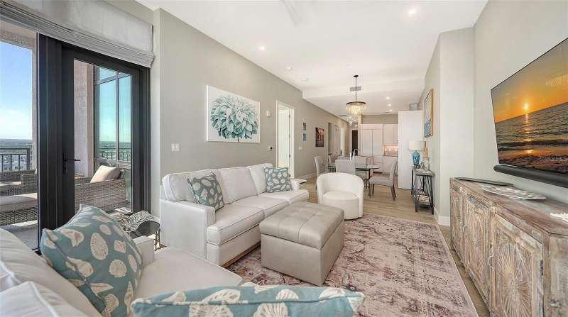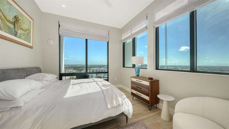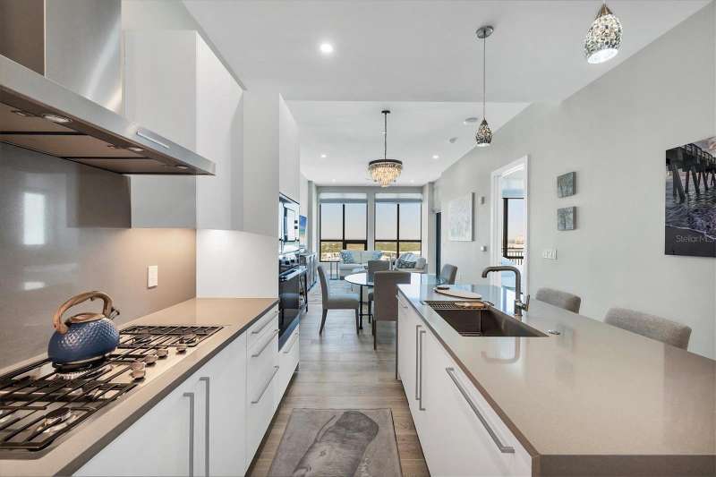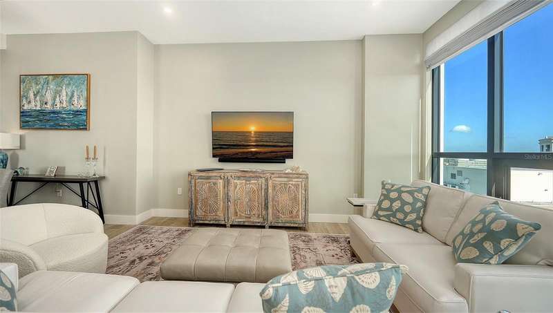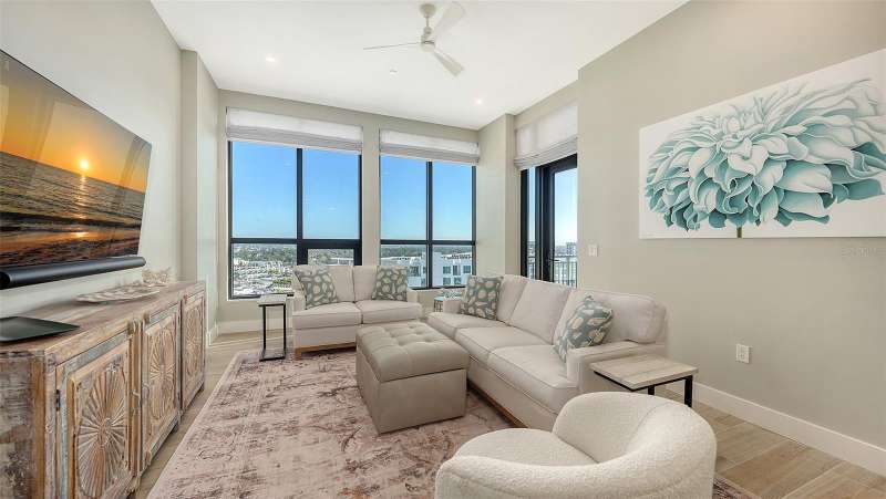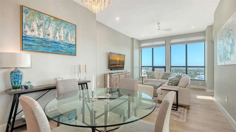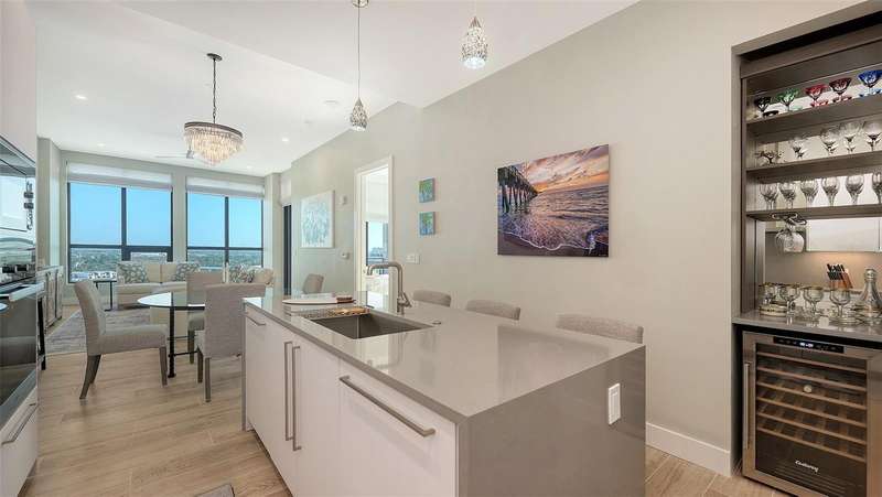 Welcome to the DeMarcay- an 18-story boutique condominium community on prestigious Palm Avenue, in the heart of downtown Sarasota. This impeccably designed 2-bedroom, 2-bathroom home on the 14th floor can be furnished and move-in ready- offering a seamless blend of luxury, comfort and convenience. Step inside to soaring 11-foot ceilings, elegant porcelain flooring, and expansive windows that fill the home with natural light and delightful city and bay views. The chef’s kitchen features Italian custom cabinetry, Miele appliances including a gas cooktop, sleek quartz countertops and a large island perfect for cooking and entertaining. Additional highlights include built-out closets, stylish window treatments, a custom-designed dry bar, and a temperature-controlled storage space. Relax on your private terrace and enjoy the abundance of natural light and sweeping views of Sarasota. The amenities are found on the 18th floor rooftop and include a heated saltwater pool and lanai area, an outdoor kitchen and casual entertaining space, a fitness center, and a sophisticated club room with a catering kitchen - all with unobstructed 360-degree views of the Bay and downtown skyline. On-site staff is available 24/7 providing resident services for owners and their guests. This is downtown living at its best.
