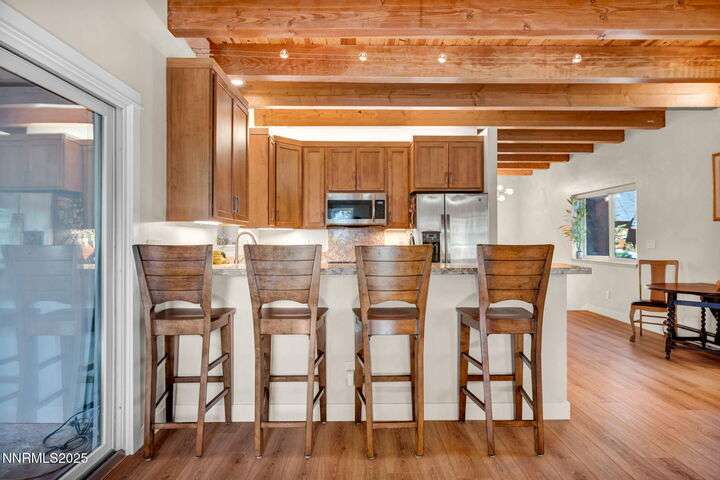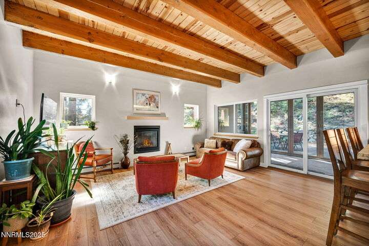 Completely rebuilt from the framing up, this stunning Glenrock residence feels brand new—offering the perfect blend of mountain charm and modern design. Situated on a spacious lot for added outdoor space and privacy, this 3-bedroom, 2.5-bath home showcases thoughtful craftsmanship and high-efficiency upgrades throughout. Step inside to a bright, open layout featuring new flooring, high-performance insulation, all-new windows, and hydronic heating. The chef's kitchen shines with granite surfaces, new cabinetry, and stainless appliances, opening seamlessly into the sun-filled living and dining areas. A 15-foot sliding glass door connects to the new Trex deck, blending indoor and outdoor living perfectly. Additional highlights include a new roof, siding, and exterior paint, fully remodeled bathrooms, new doors and retaining walls, and a cozy heated workshop—ideal for projects year-round. Every system has been modernized, from plumbing and heating to insulation and finishes, ensuring comfort and efficiency in all seasons. Nestled in one of Incline Village's most sought-after communities, residents enjoy easy access to Lake Tahoe beaches, golf courses, Diamond Peak ski resort, and Glenrock amenities including a pool and clubhouse. This is Tahoe living—reimagined and rebuilt to perfection.