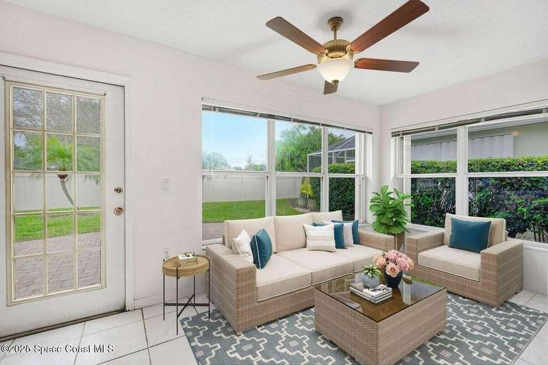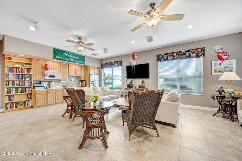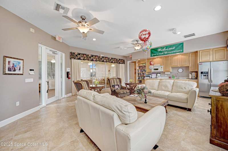 Please check this bright and welcoming 2-bedroom, 2-bath home in the highly sought, gated 55+ Pine Creek community. Enjoy an open living and dining area, a flexible bonus room perfect for an office or hobby space, and a sunroom filled with natural light. The primary suite offers comfort and privacy, while the second bedroom and bath are ideal for guests. New carpet in bedrooms and flex room. The white kitchen is the perfect backdrop for your personal accessories. Roof 2024 and AC 2023. Easy to operate accordion shutters makes buttoning down a cinch! Step outside to a paved patio for relaxing or entertaining. Low-maintenance living in this secure, active neighborhood with community amenities and your lawn care and exterior painting responsibility of HOA.