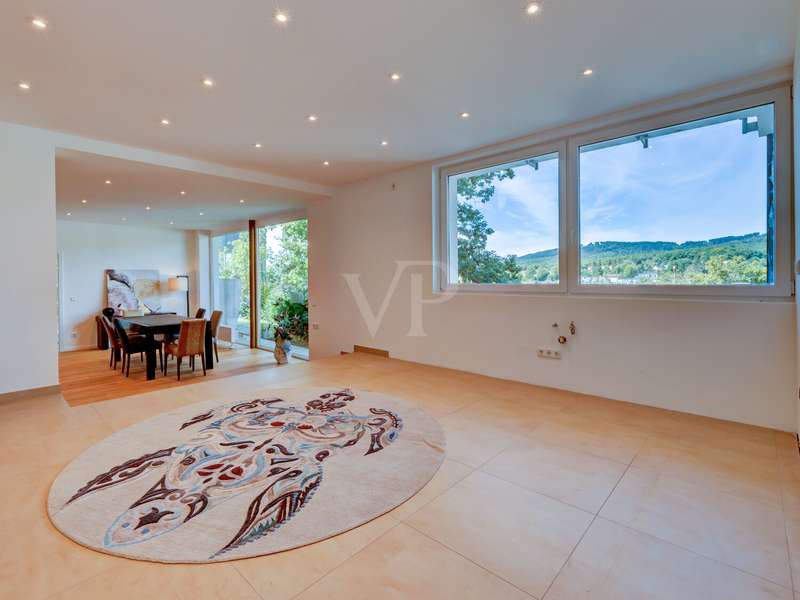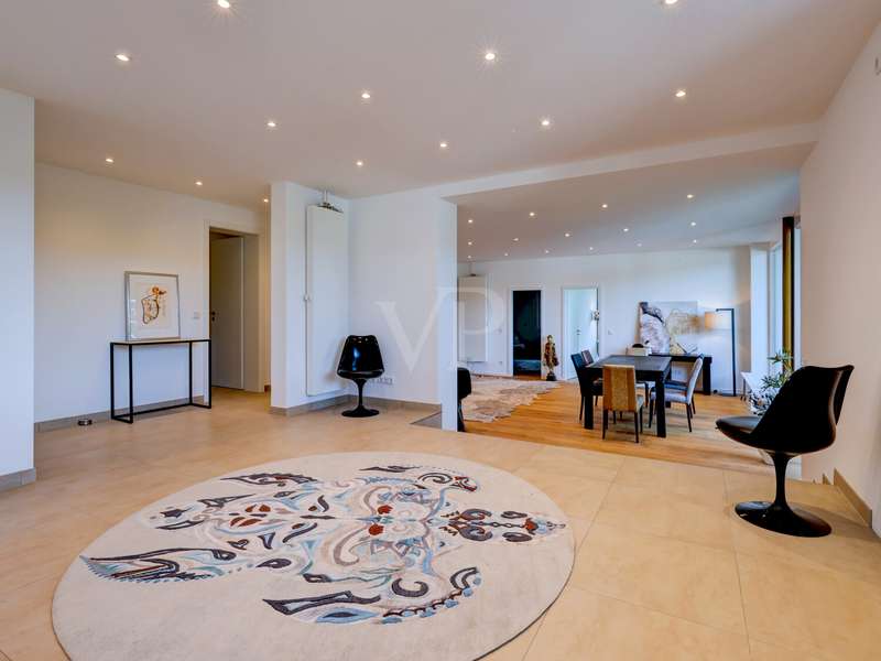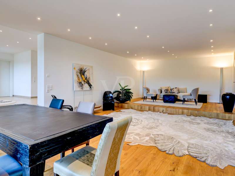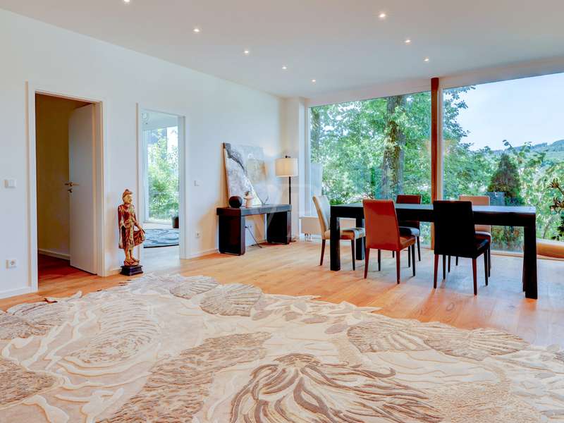 Exclusive 3-room apartment in a charming small residential complex with only 3 units - your new home with incomparable views. This rare opportunity combines modern living with privacy and a touch of luxury. In a small apartment building with just three residential units, you can look forward to a property that not only impresses with its quiet location, but also with its stylish room concept and fantastic views. Here you live in an exclusive neighborhood, enjoy peace and privacy and at the same time the benefits of excellent connections. The highlights at a glance: Light-flooded living spaces: Generous window fronts create a unique living ambience and allow the rooms to shine with natural daylight. Open, loft-like floor plan: The modern room layout creates an airy feel and offers plenty of space for individual development. Fantastic terrace: Create your own personal outdoor retreat - whether it's a sunny breakfast with a distant view or a cozy barbecue evening with friends, here you can enjoy life in the open air. Exclusive features: High-quality wooden floorboards lend the living spaces a warm and elegant atmosphere. Feel-good bathroom: The luxuriously equipped bathroom with elegant fittings invites you to relax, complemented by a separate guest WC for additional comfort. Floor-to-ceiling windows with sliding doors: Maximum brightness and a harmonious transition between the living and outdoor areas create a feeling of freedom and openness. Modern lighting concepts: Stylish, integrated downlights set elegant accents and create an atmospheric living ambience. Convenient access: In addition to the stairwell, there is a second access to the apartment via the elevator - ideal for shopping or everyday life. Optional parking: An additional garage parking space can be purchased on request (plus €15,000).