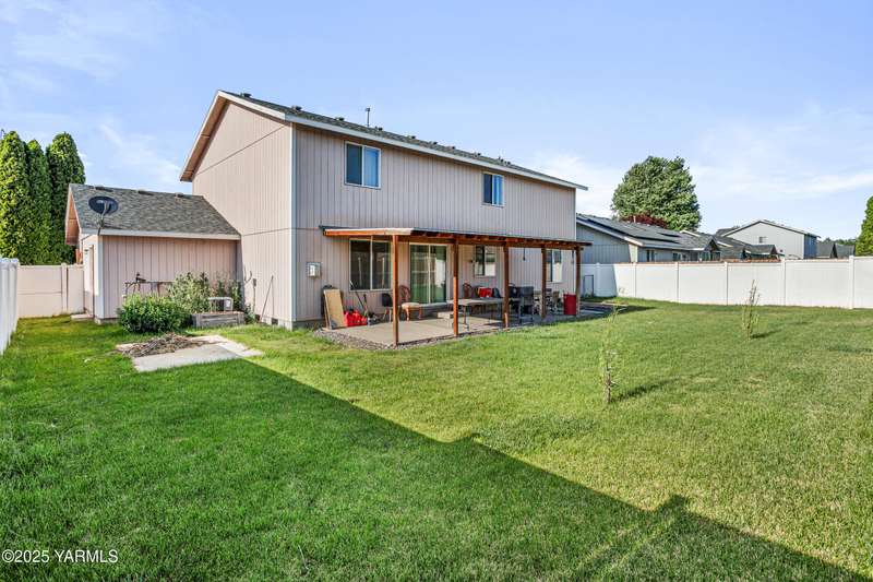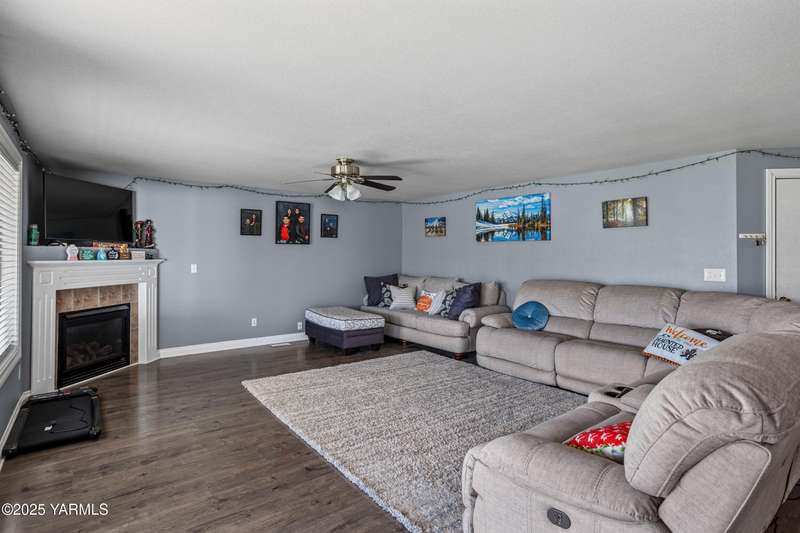 Tucked into a desirable Moxee neighborhood, this spacious 4-bedroom, 3-bathroom home offers nearly 2,500 square feet of beautifully designed living space, perfect for comfortable everyday living and effortless entertaining. The 3-car garage home welcomes you in with warmth, space, and functionality at every turn. Inside, you'll discover two generous living areas that offer versatility for gatherings and relaxation. The heart of the home is the expansive kitchen, complete with an eating bar, sleek stainless steel appliances, and an open layout that flows seamlessly into the second living area where a cozy gas fireplace invites evenings of comfort and connection. The primary suite is a true retreat, featuring a spacious bedroom, including an ensuite with a jetted soaking tub, separate shower, and a large walk-in closet. Multiple additional bedrooms also include walk-in closets, providing both space and smart storage solutions. Step outside to enjoy the covered back patio that is ideal for morning coffee, outdoor dining, or hosting friends in the shade, rain or shine. Along with ample grass space to play. From the functional floorplan with many amenities to the inviting outdoor space, this home offers the perfect blend of comfort and convenience in a sought-after location. Come experience the lifestyle waiting for you in Moxee.