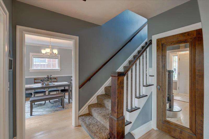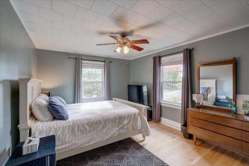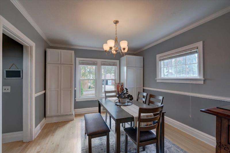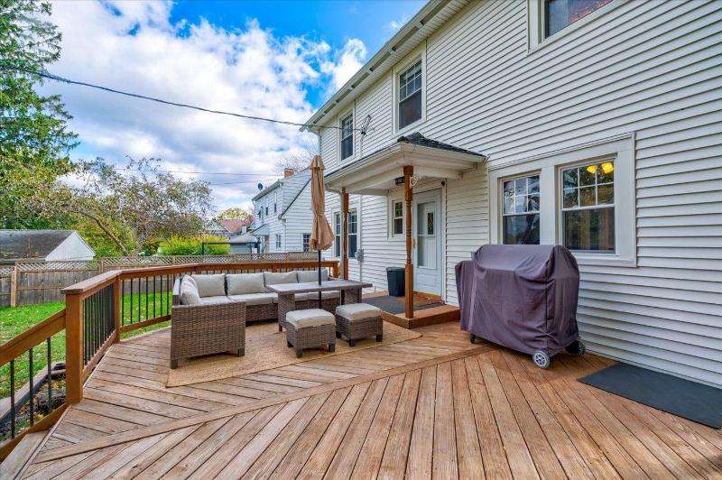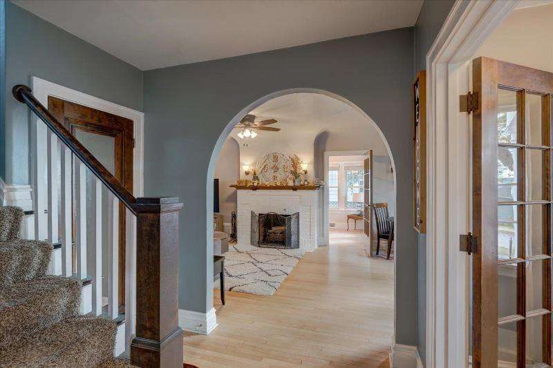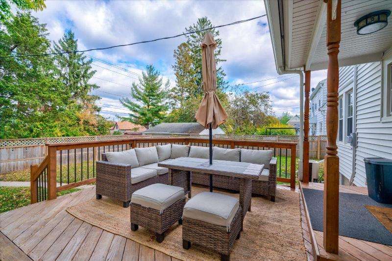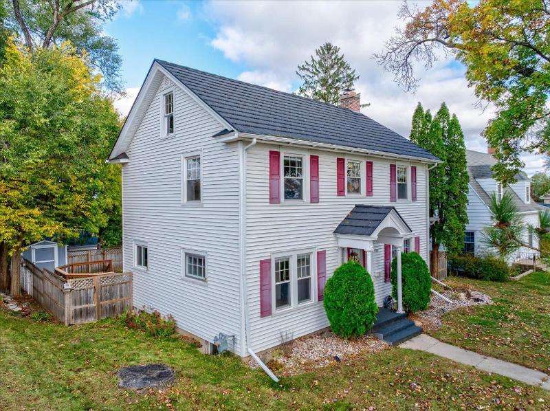 Character, comfort and convenience! This meticulously maintained Colonial is situated in one of Portage's sought-after historical locations. The current owners say they fell in love with its charm and character the first time they saw it. Step through the arched doorway into a sizable living room with oak floors and a brick wood-burning fireplace. From there you can have your morning coffee in the cozy sunroom. The house is filled with natural sunlight from large, updated windows throughout. Upstairs, you'll find three bedrooms with recently refinished solid wood floors, and an updated full bath. There's even a walk-up attic. The lower level is partially finished and has an extra shower. Outside, you can entertain on the deck in the fenced-in back yard. Make this your new home!