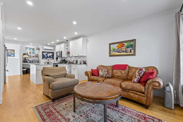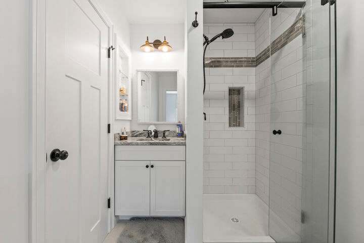 Thoughtfully designed cottage bungalow featuring quality finishes and attached garage. Offering two bedrooms and two and a half baths, laundry on the main floor, along with hardwood floors, crown molding, and solid wood cabinetry. The basement includes approximately 600 sq. ft. of finished space offering two large rooms, for potential entertaining, bonus space, office or guest bedroom, full tiled shower and abundant storage. Conveniently located near Green Belt Trail and Community Rec Center. Evans Street promises a blend of luxury, comfort, and convenience for modern living,