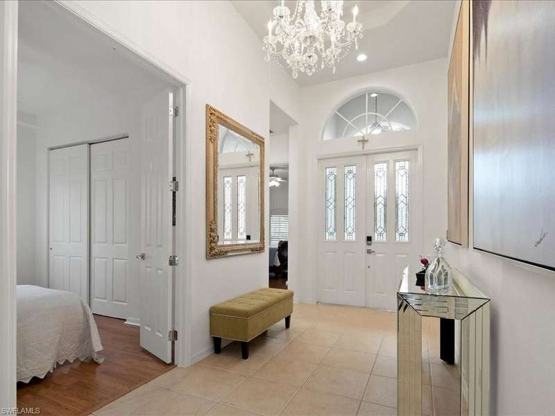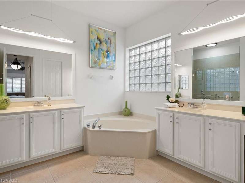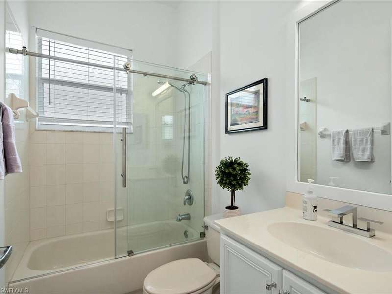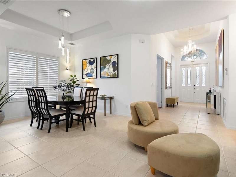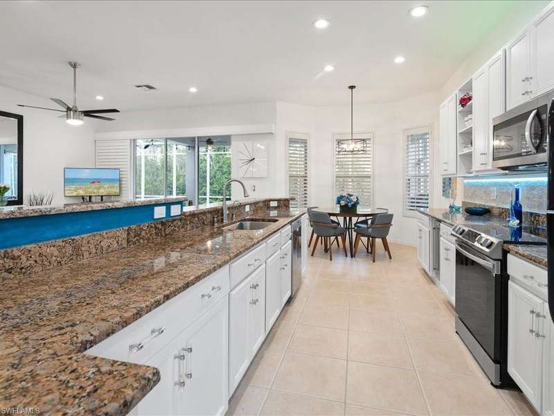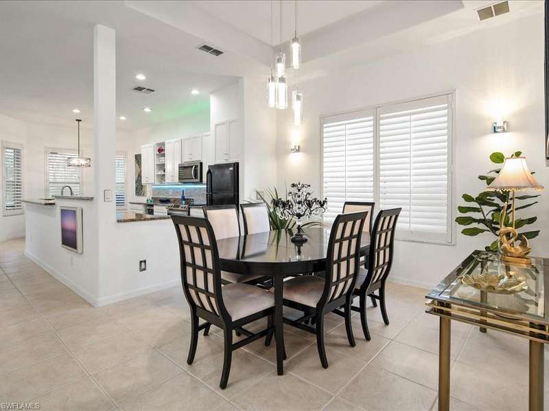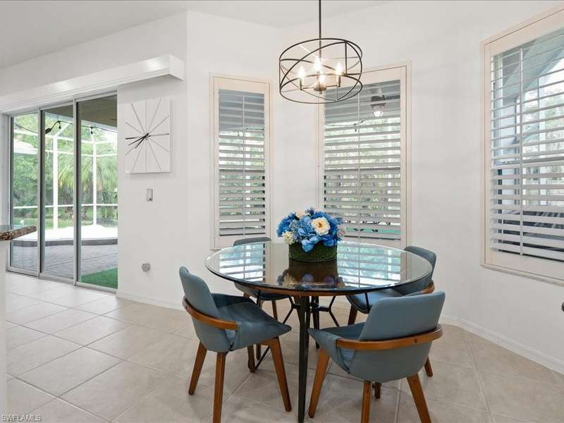 A BEST BUY FOR FULL GOLF MEMBERSHIP CLOSE TO THE DOWNTOWN AREA. Life is Good - Enjoy golf or tennis and dine at your private club, live near the GULF of MEXICO and a world-class downtown area with exquisite shops and restaurants! An incredible opportunity to own a home in GLEN EAGLE with a transferable FULL GOLF membership, which is a coveted amenity in Naples FL! Situated in the Addison Reserve neighborhood on an X-Zone lot, this beautiful 2115 sq ft home offers 3 bedrooms, 2 baths, a 2-car garage, a formal dining area, breakfast room, a sitting area with aesthetic fireplace, and an extended brick paved screened lanai with a custom built below-ground spa. Special features include high volume ceilings, 8' doors throughout, coffered ceilings, white kitchen cabinets with a tiled backsplash, under cabinet lighting, extended granite counter-tops, 16" tile, laminate flooring, plantation shutters, all new modern light fixtures and ceiling fans, white paint and more. Bright and spacious, wher