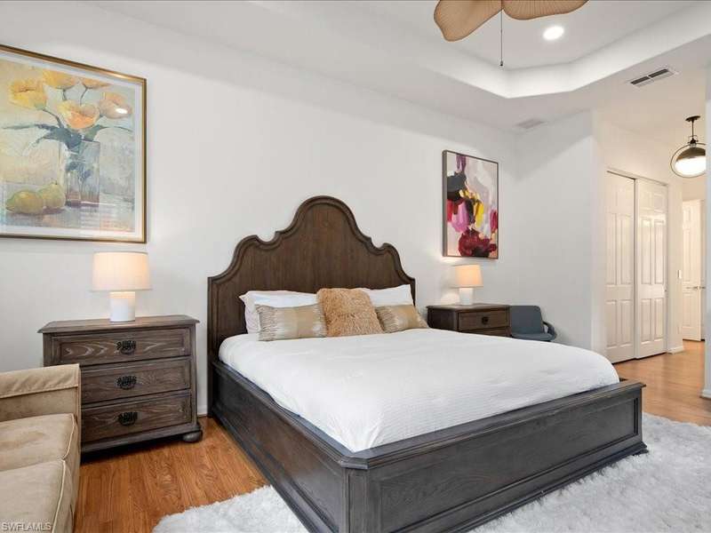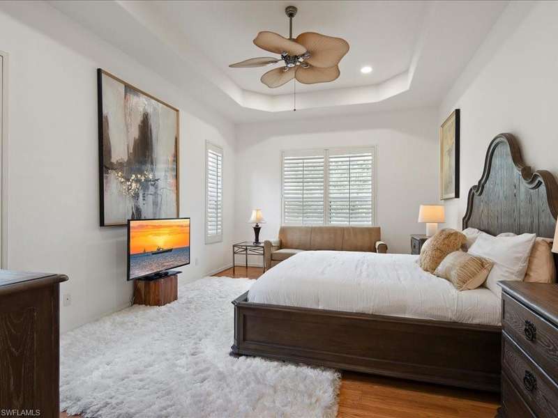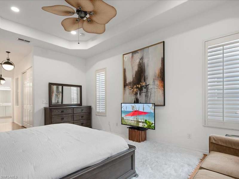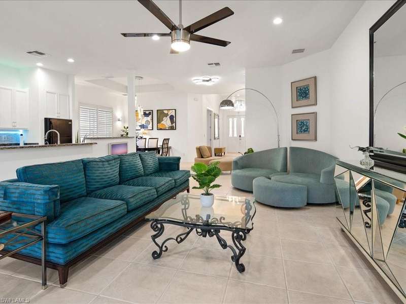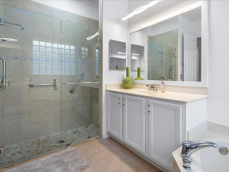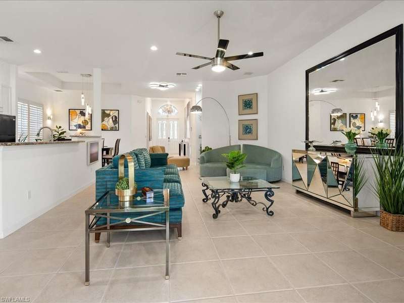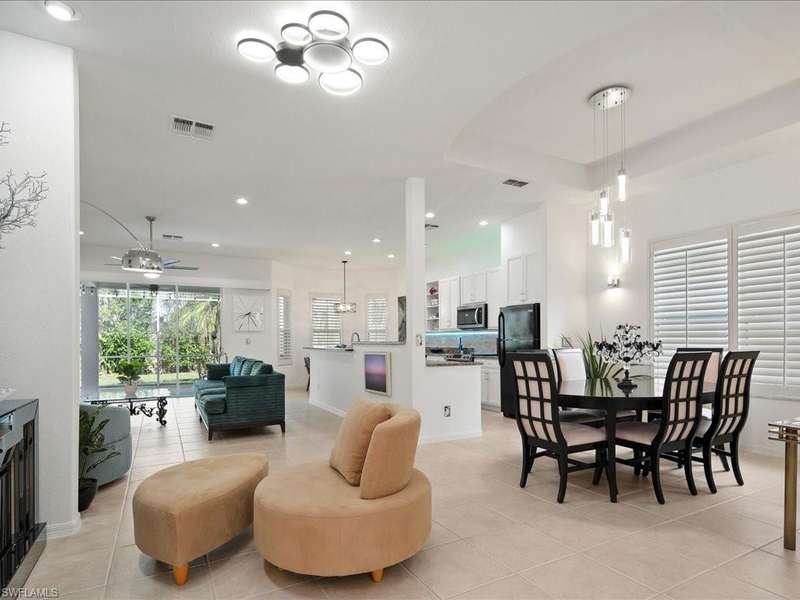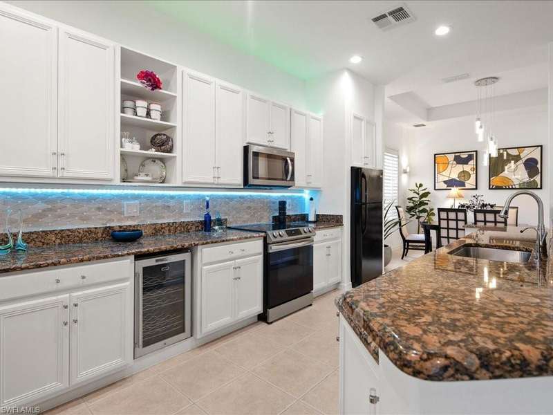 A BEST BUY FOR FULL GOLF MEMBERSHIP CLOSE TO THE DOWNTOWN AREA. Life is Good - Enjoy golf or tennis and dine at your private club, live near the GULF of MEXICO and a world-class downtown area with exquisite shops and restaurants! An incredible opportunity to own a home in GLEN EAGLE with a transferable FULL GOLF membership, which is a coveted amenity in Naples FL! Situated in the Addison Reserve neighborhood on an X-Zone lot, this beautiful 2115 sq ft home offers 3 bedrooms, 2 baths, a 2-car garage, a formal dining area, breakfast room, a sitting area with aesthetic fireplace, and an extended brick paved screened lanai with a custom built below-ground spa. Special features include high volume ceilings, 8' doors throughout, coffered ceilings, white kitchen cabinets with a tiled backsplash, under cabinet lighting, extended granite counter-tops, 16" tile, laminate flooring, plantation shutters, all new modern light fixtures and ceiling fans, white paint and more. Bright and spacious, wher