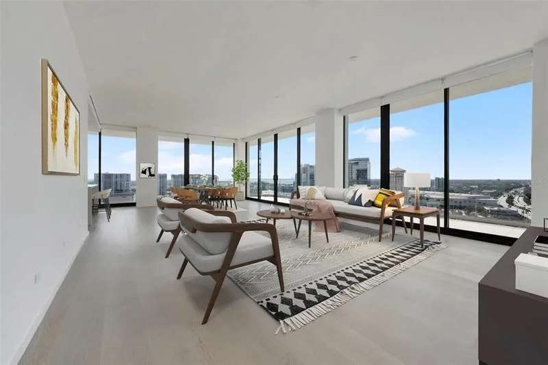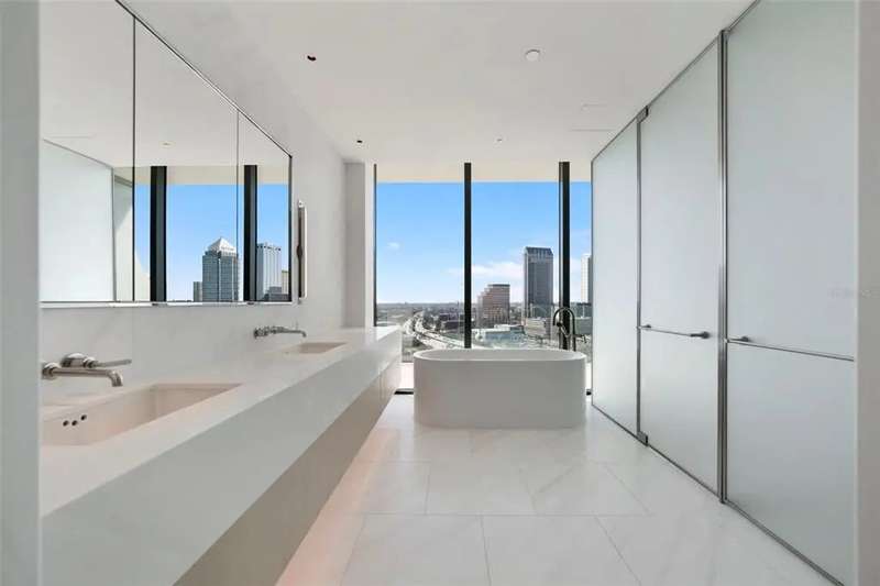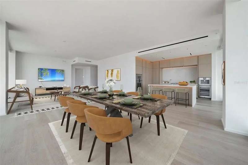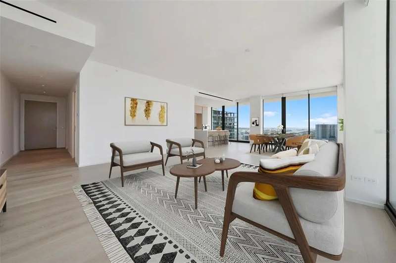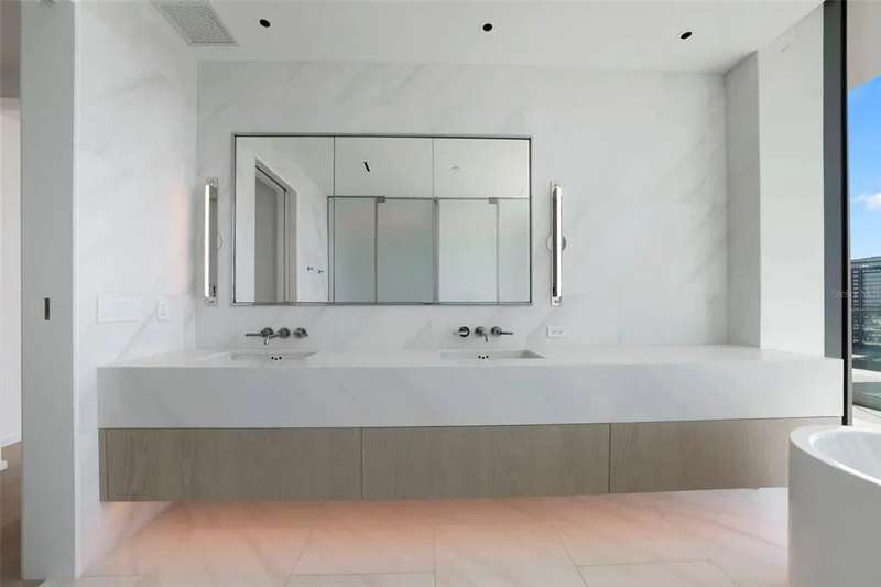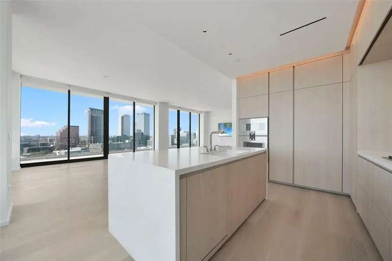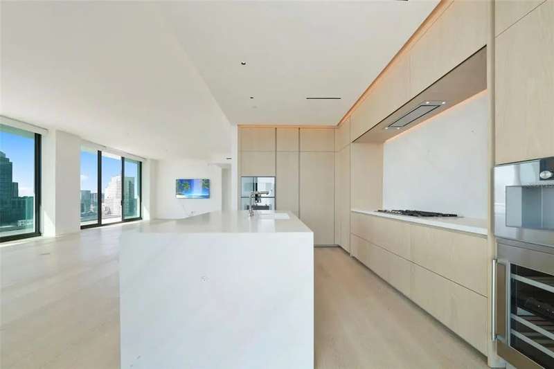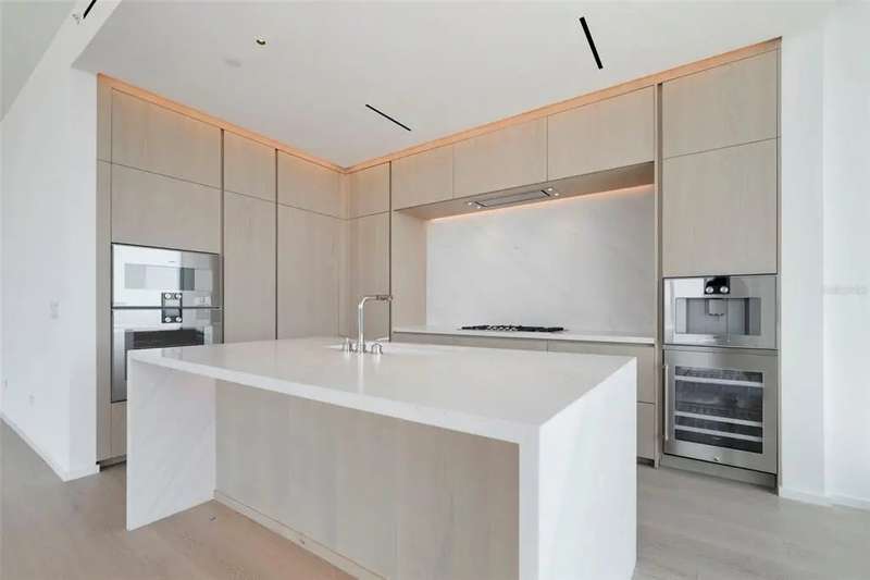 Elegant Residences rising skyward above a five-star hotel offering comfort and intimacy of an expertly-designed home with hotel benefits including a rooftop pool & terrace and access to a full-service spa, residents will enjoy EDITION’s signature approach. Privacy is assured with each floor limited to a small number of homes, and a private residential entrance, lobby, concierge and elevators dedicated to The Residences. Floor-to-ceiling windows invite panoramic views of Tampa Bay and the downtown skyline, while sliding glass doors lead to generous wraparound terraces with post-less glass railings. Interiors inspired by Roman and Williams create airy, exceptionally inviting spaces with ten-foot ceilings. Wide plank 10-inch white oak Grato hardwood floors throughout. Polaris White marble kitchen countertops with waterfall island and custom white oak Molteni Italian Millwork with powered upper cabinets. Gaggenau Kitchen Appliances including wine cooler and 5-burner gas cooktop. Miele fully venting hood incorporated into cabinetry. Laundry room with Electrolux Washer and Dryer.