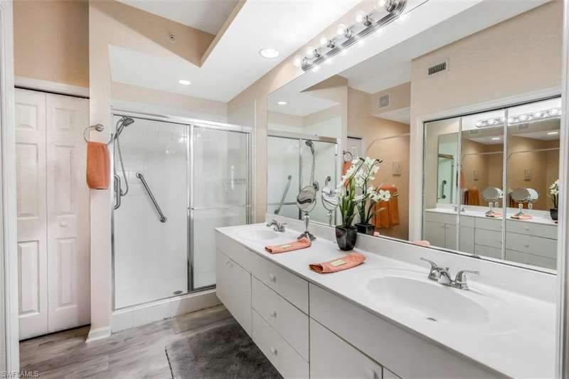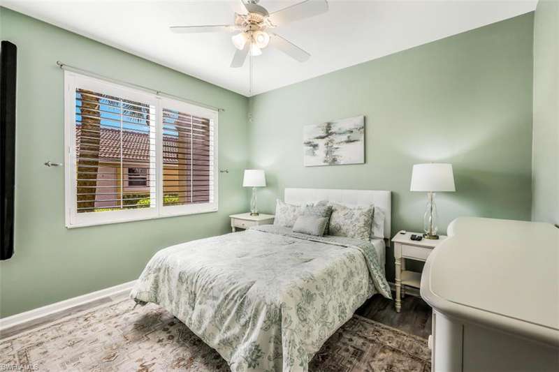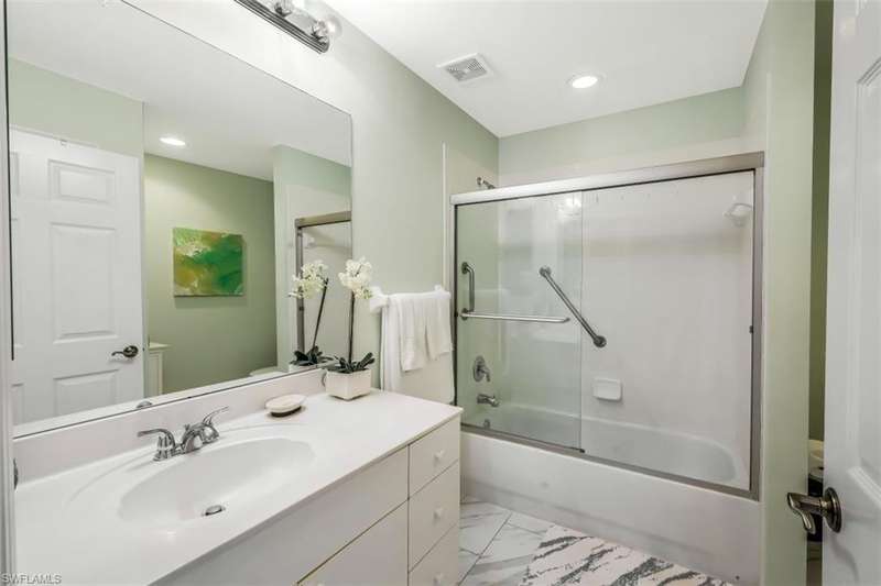 This lovely, updated 2-bedroom, 2-bath condo is nicely furnished and features interesting artwork throughout. It includes a one-car detached garage to keep your car out of the sun. The master bedroom boasts a king-sized bed and a smart TV, while the guest bedroom offers a queen-sized bed and another smart TV. The condo has hard surface floors throughout with no carpeting. The large lanai complete with a table and chairs overlooks a landscaped area and pond. It is perfect for entertaining guests or enjoying breakfast and dinner al fresco. Falling Waters features beautiful landscaping, walking paths and has many amenities and is close to all the amenities that Naples has to offer.