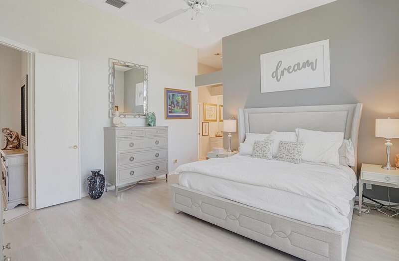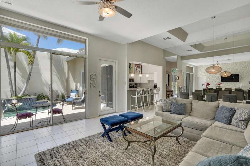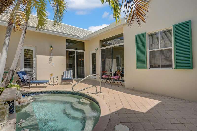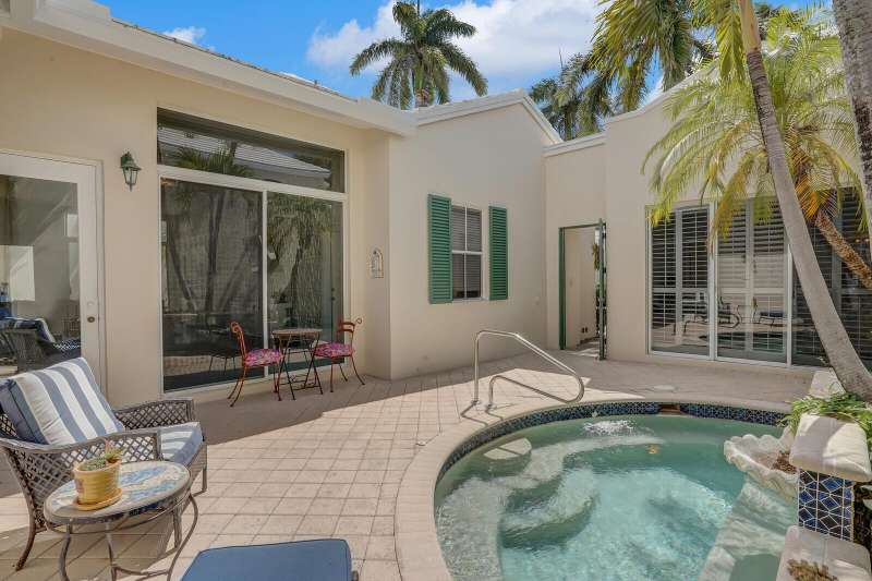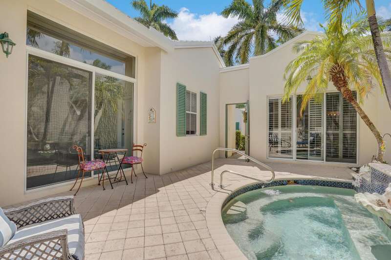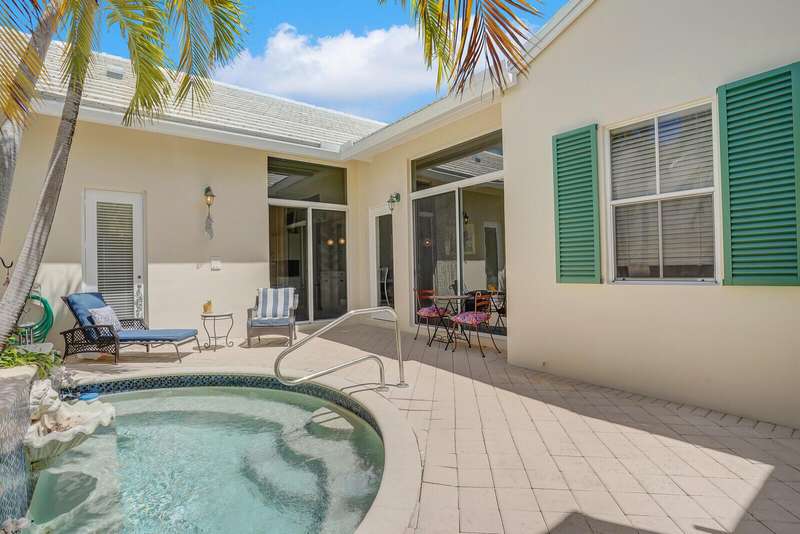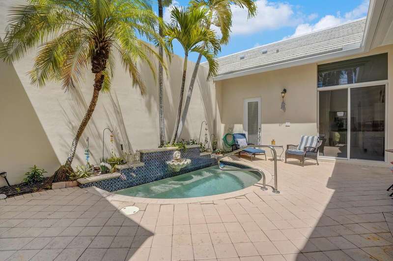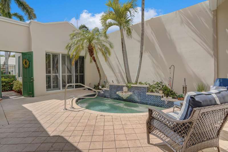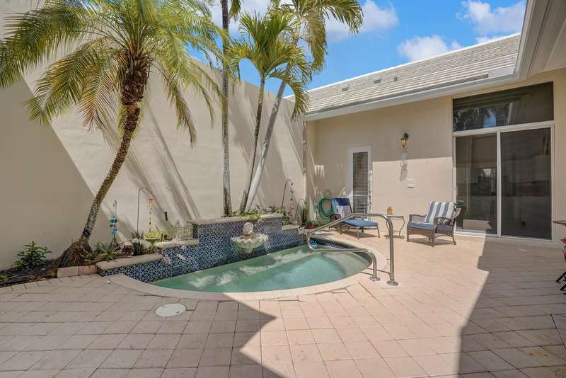 Welcome to this beautifully maintained 3-bedroom, 3-bath home, including a separate guest house--perfect for hosting family or friends. Enjoy resort-style living in your private courtyard featuring a private pool and serene lounging areas, all surrounded by lush landscaping for ultimate privacy.Soaring high ceilings create a light and airy ambiance, plantation shutters throughout the home. The spacious primary suite boasts a huge walk-in closet and tranquil golf course views. The open-concept layout seamlessly connects the living and dining areas, offering both comfort and elegance.Pet-friendly and located in a highly desirable community with no mandatory membership fees, A-rated schools, and just minutes from downtown Boca Raton's best shopping, dining, and entertainment.