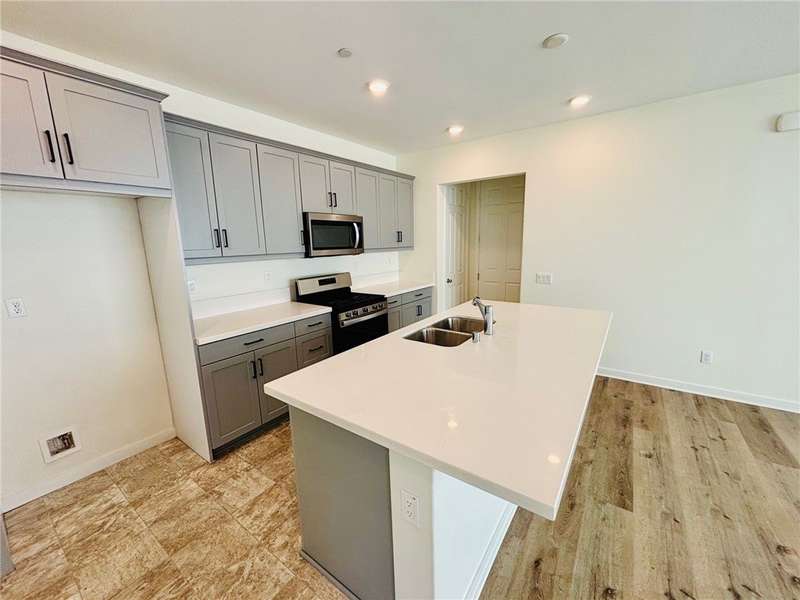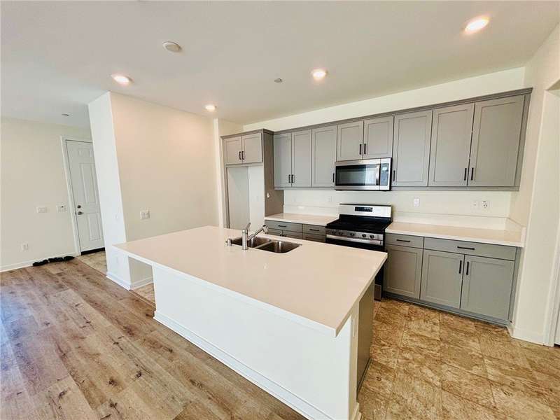 Home For Rent In the new community of Five Points, Valencia. This beautiful home was built in 2022 and has 3 large bedrooms and 2 bathrooms. Recessed lighting throughout. New vinyl throughout downstairs, staircase, and upstairs hallway. Open Kitchen w/ white quartz countertops, center island, stainless steel appliances, under cabinet lighting, pantry, & plenty of cabinet space. Large living room w/ lots of windows making the home light & bright. Low utility costs w/ solar panels on roof. Community pool and spa. Rec center. Confluence park and six flags magic mountain in walking distance. Rent at only $3,899 per month.