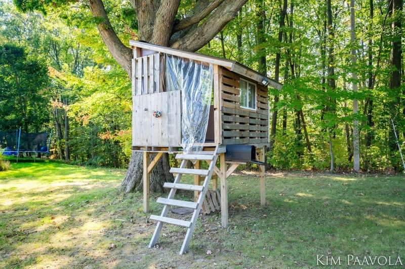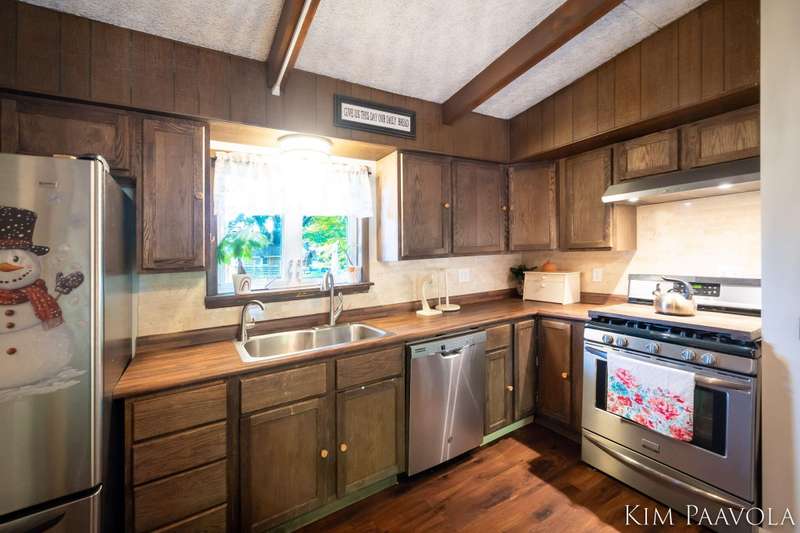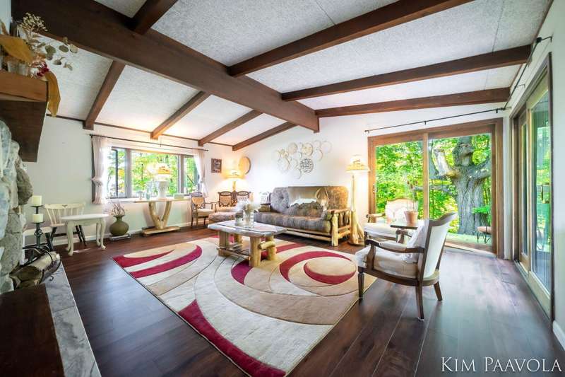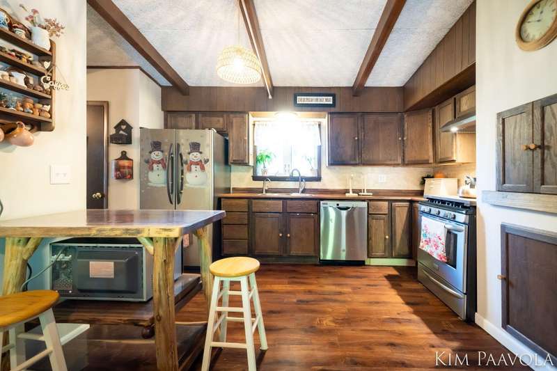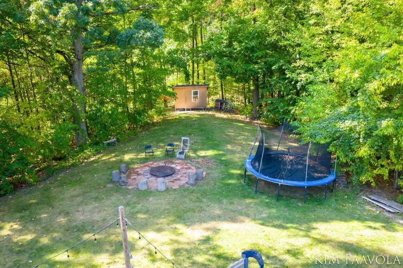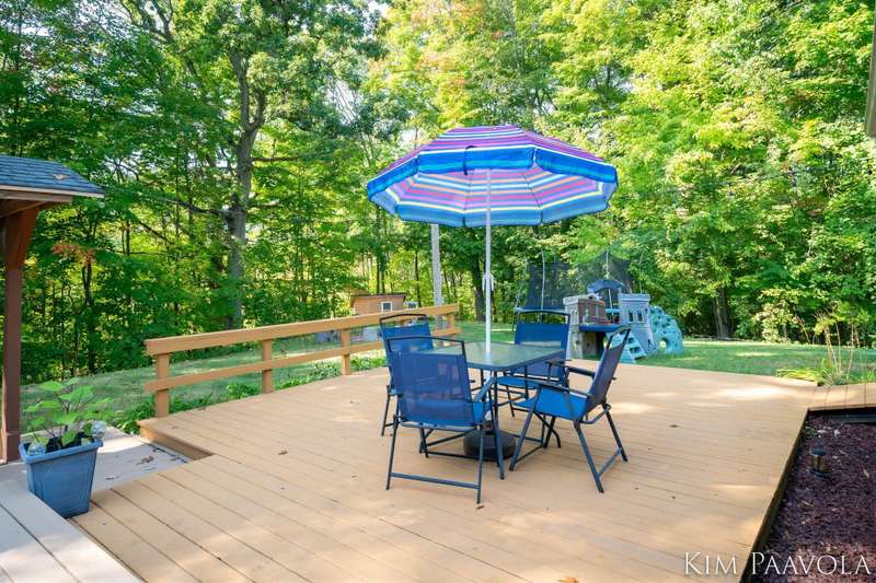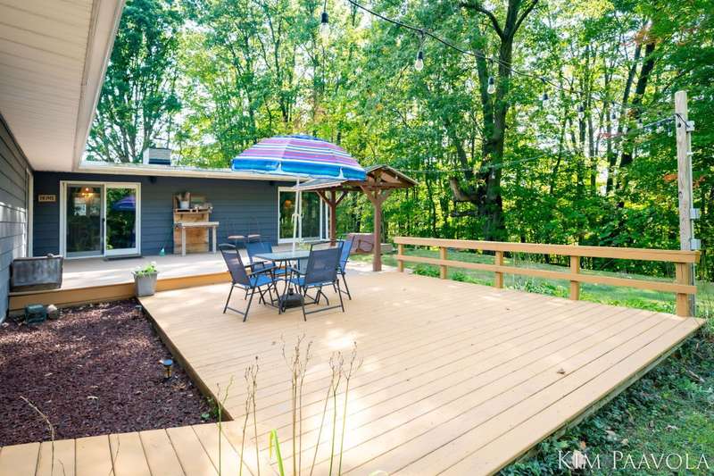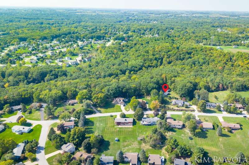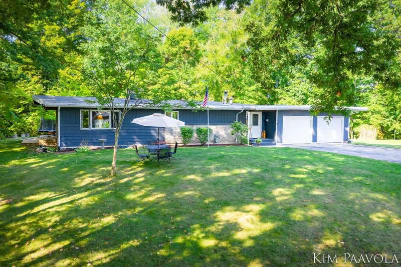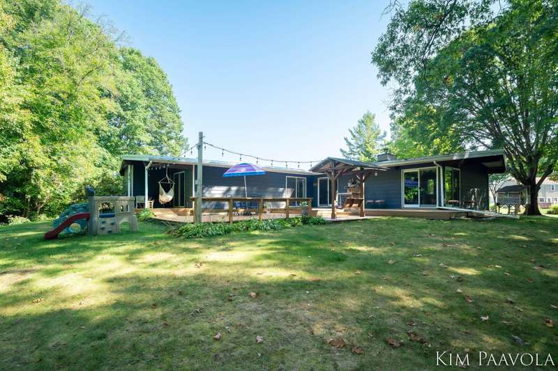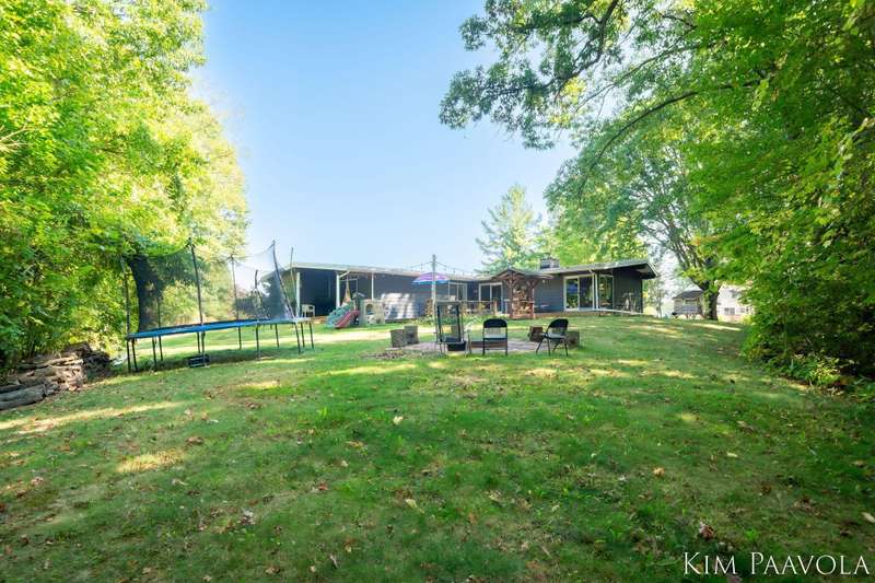 Uniquely positioned home in tranquil neighborhood enjoys woods & privacy on two acres! Owners have updated kitchen, baths, flooring on main floor, plumbing, pressure tank as well as washer + dryer new in 25! THREE full baths + 1/ 2 bath and LR with lovely stone gas-log fireplace. Primary Suite with large walk-in closet & updated bath + covered rear deck. Main floor Bonus Room could be used as office or nursery or turned back into main floor laundry. Open & airy layout with ample sliders & a true back yard paradise as the photos will show! Expansive rear deck overlooking woods, fire pit, kid's play fort & more! The clean & crisp basement offers future finish options & would be perfect for home theater room! This home offers the benefit of living in a peaceful neighborhood on a cul-de-sac street yet with privacy & nature in abundance! Award winning Comstock Park schools & immediate occupancy too!