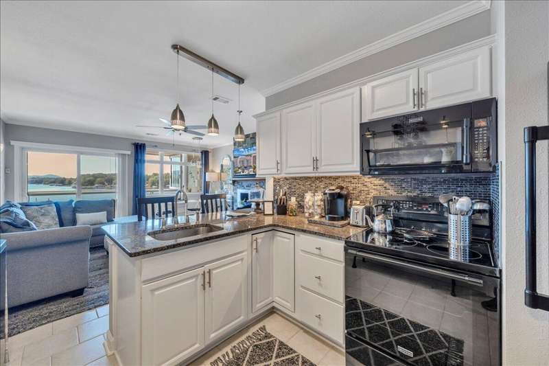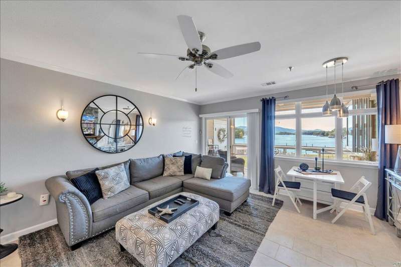 Decked out to the nines! This gorgeously appointed 2 bedroom, 2 bath waterfront condo is located at The Pointe at Mariners Landing, one of Smith Mountain Lake's most desirable Country Club communities. Enjoy the long water and mountain views from the conditioned four-season sunroom with accordion windows. This condo has been upgraded with granite countertops and tile backsplash in the kitchen, custom walk-in tiled showers and granite countertops in both bathrooms, and ceramic floors throughout. The custom stone faced fireplace uses bio-ethanol fuel that provides colorful flames and true warmth. Sold fully furnished, you won't need to bring a thing! The building has a secured climatized lobby with an oversized elevator that brings you to the underground promenade level that spans all 3