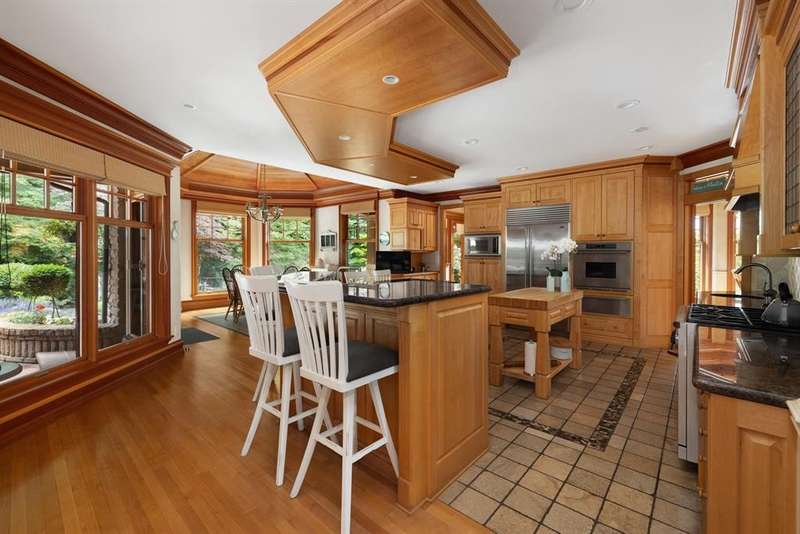 Magnificent Gated Stone Mansion nestled on a manicured Acre in Elgin’s most prestigious locations with gorgeous Greenbelt & Ravine views. This exquisite 8,200sqft estate was crafted with the finest materials inside & out in a timeless West Coast style. Foyer leads to the formal Living & Dining Rooms, Great Room with barrel-vaulted wood ceilings flows into a gourmet Kitchen & additional prep kitchen. Primary suite on the main level opens up to the outdoors with double French doors. Lower level is an entertainer’s delight featuring a bar, media room, gym, wine cellar, and guest bedroom. Detached guest suite above the garage. The beautiful backyard complete with a custom pool, hot tub, fire pit, dining areas, and a covered patio evoking the charm of the Beverly Hills Hotel. Truly Remarkable!