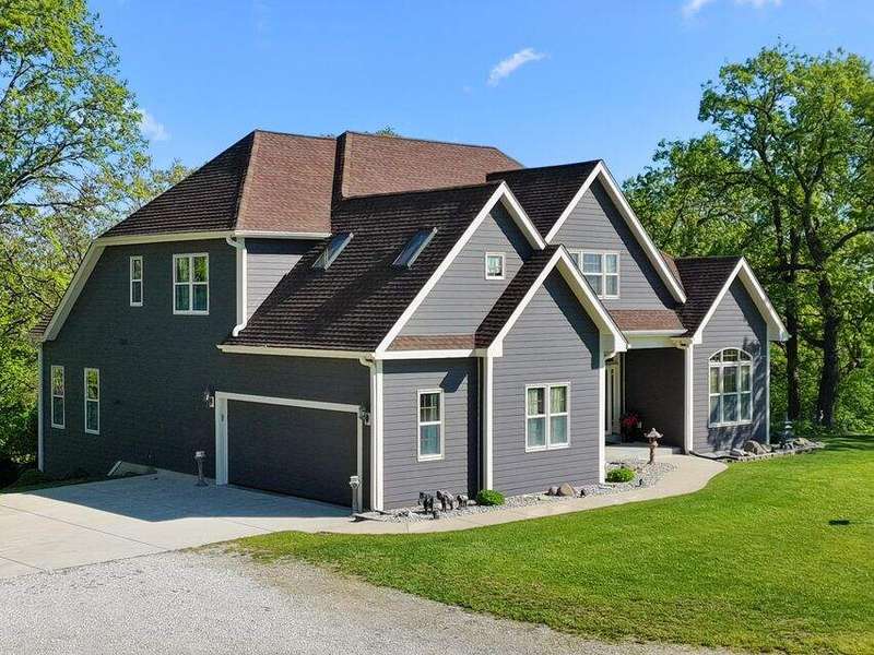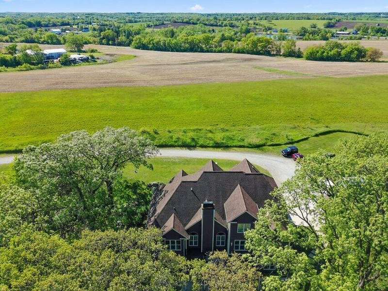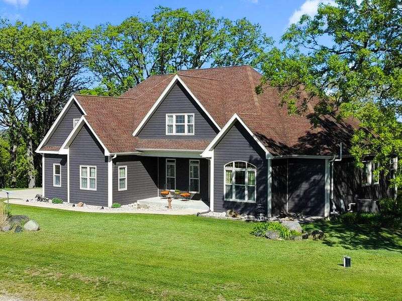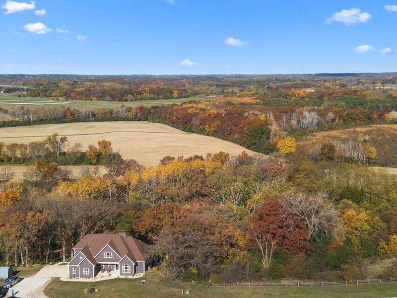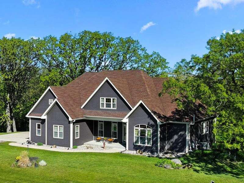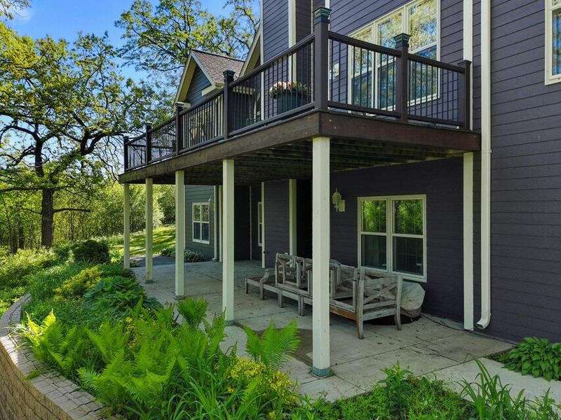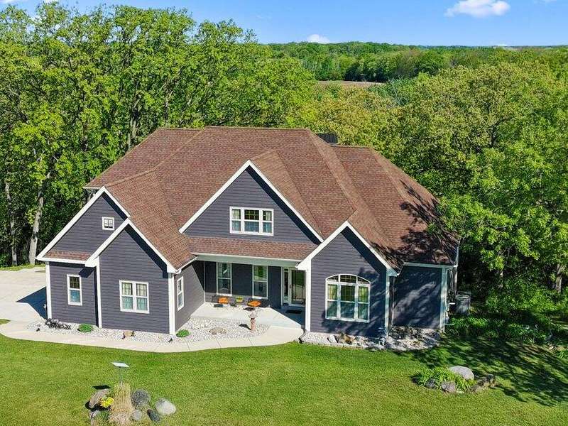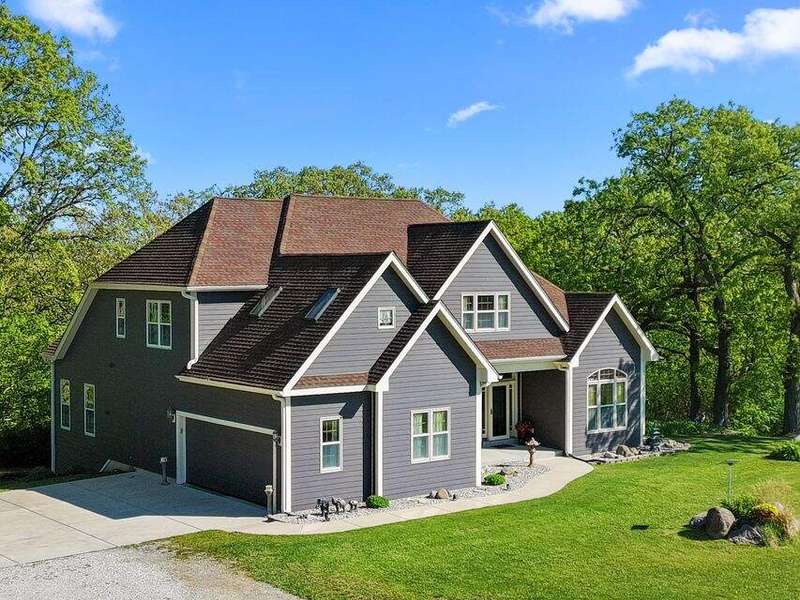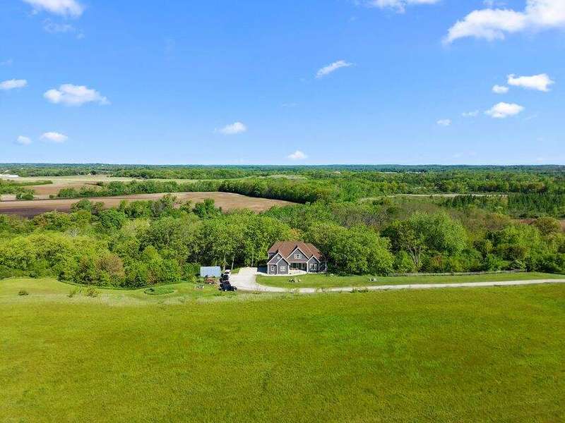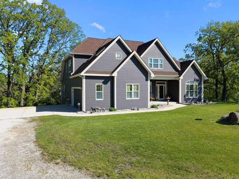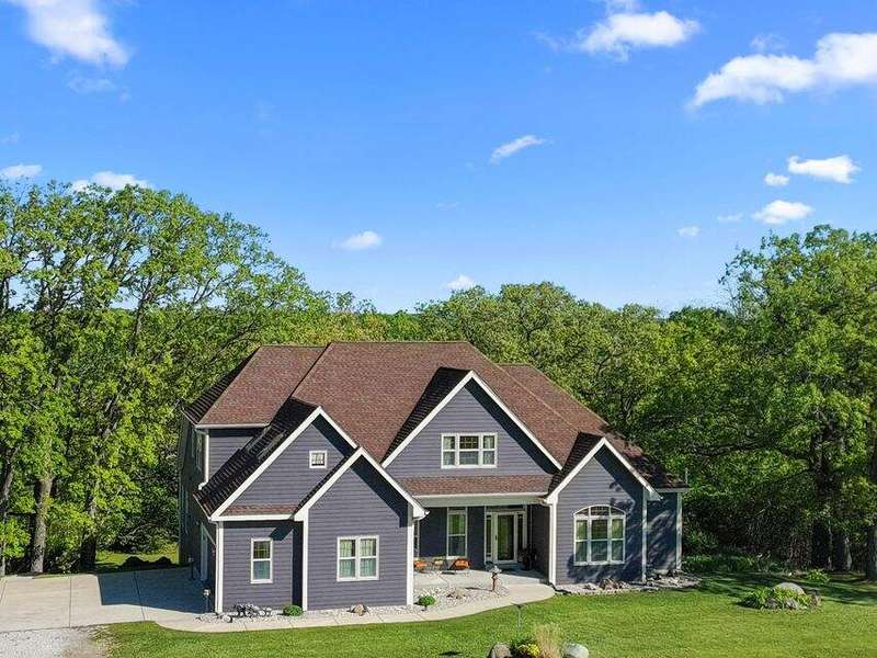 BACK ON THE MARKET through no fault of the Seller! Conveniently located only 2.5 miles from I-43, ideal for daily travel. Prime commuter location. The ultimate nature enthusiast property on a very private 5.73 acres, amongst majestic oak trees. You'll be impressed by this 5BD, 3.5BA, 2 story with finished walk-out. As you enter the foyer off the covered porch you're greeted by the LR with vaulted ceiling gas fireplace adjacent to Ktch w/ wood floors, large breakfast bar, granite tops & new Bosch appliances WiFi capable. Master BD ensuite with double vanity, soaking tub plus glass shower & walk-in closet. Upstairs offers a loft 3rd BD with sitting area, jack and jill bath & 4th Bd. Family room walk-out to patio, 5th Bd and ample storage. Walking trails throughout & natural spring pond