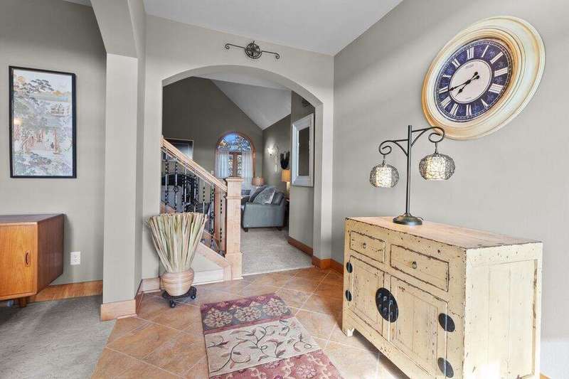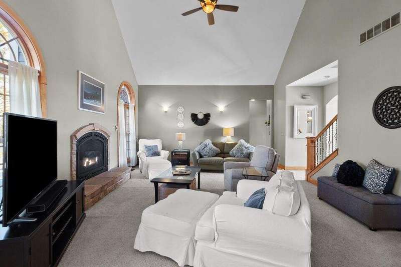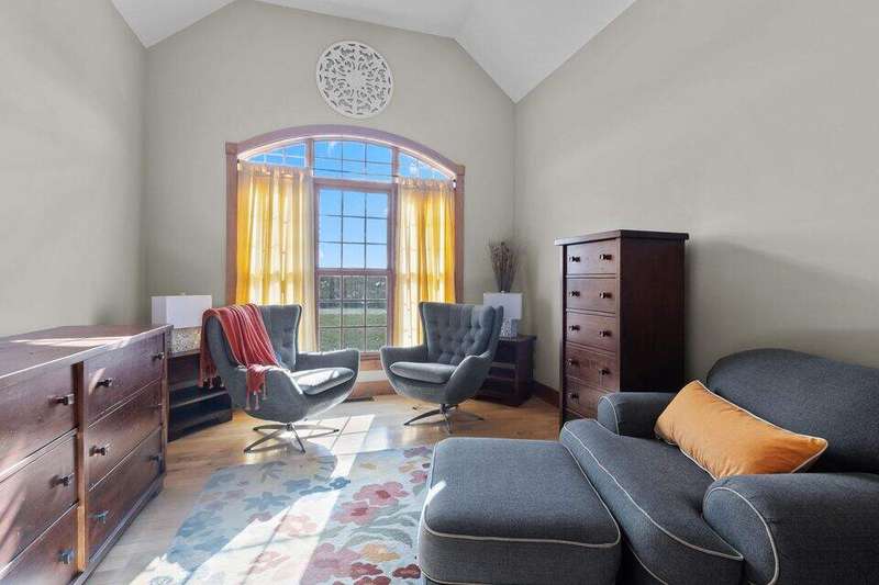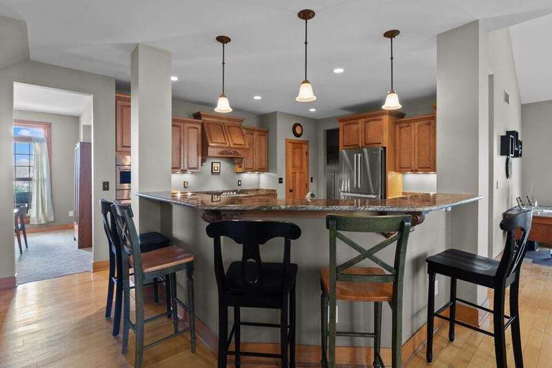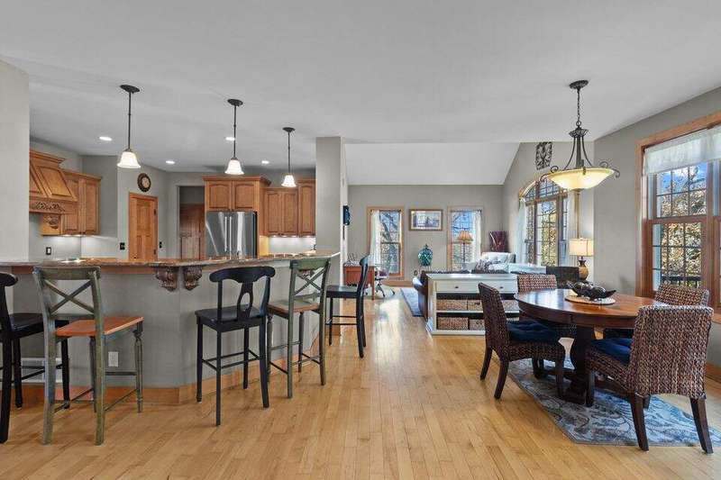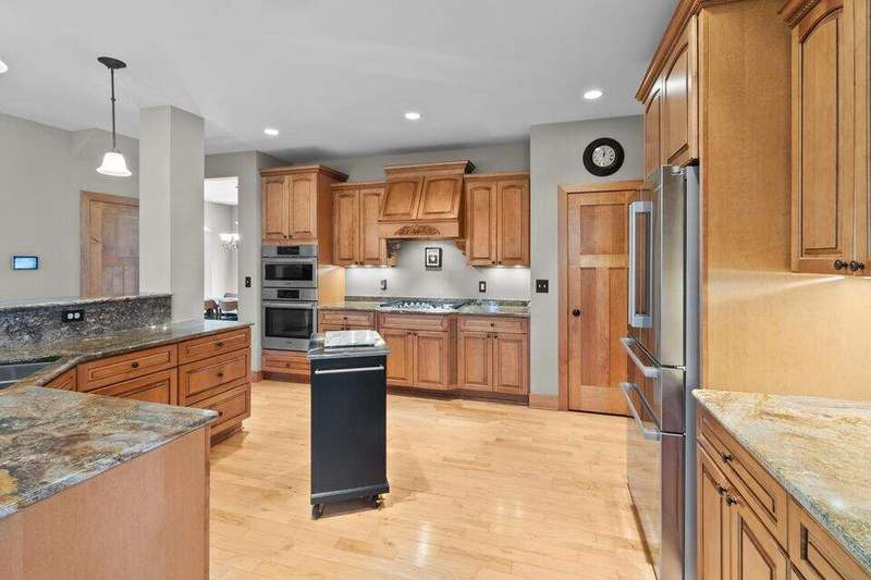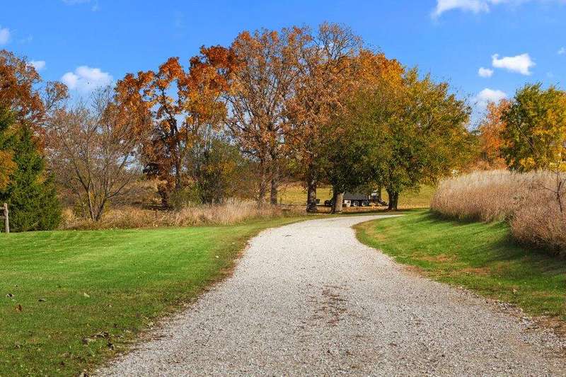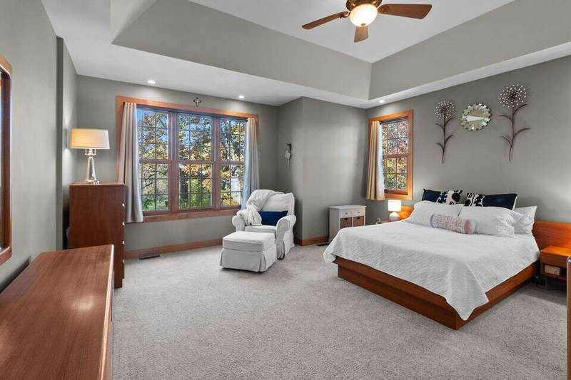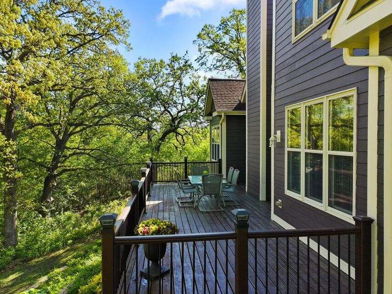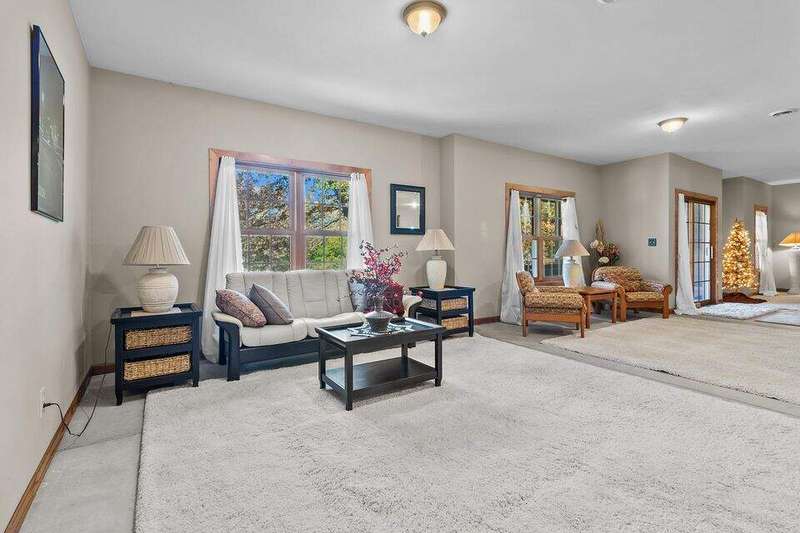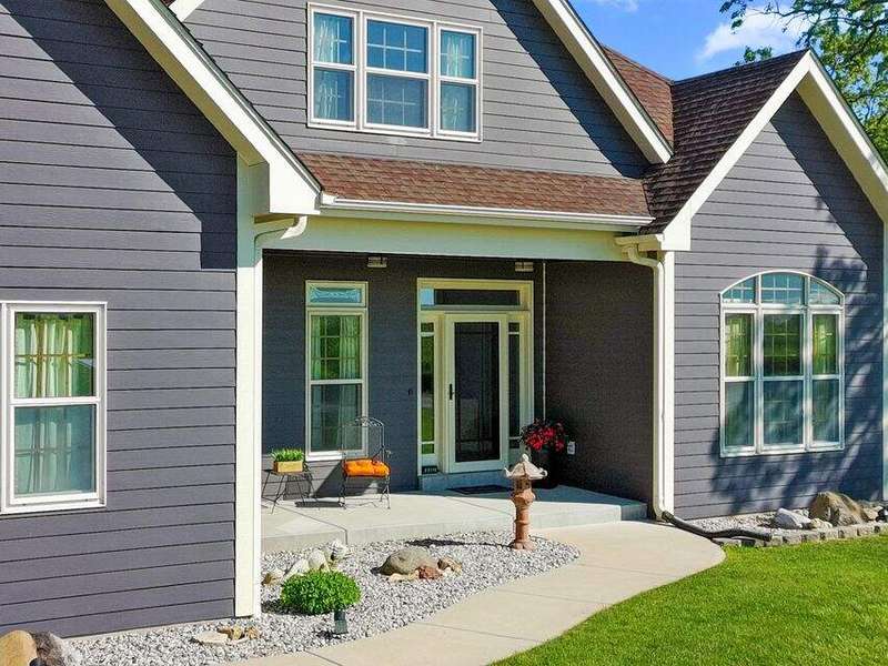 BACK ON THE MARKET through no fault of the Seller! Conveniently located only 2.5 miles from I-43, ideal for daily travel. Prime commuter location. The ultimate nature enthusiast property on a very private 5.73 acres, amongst majestic oak trees. You'll be impressed by this 5BD, 3.5BA, 2 story with finished walk-out. As you enter the foyer off the covered porch you're greeted by the LR with vaulted ceiling gas fireplace adjacent to Ktch w/ wood floors, large breakfast bar, granite tops & new Bosch appliances WiFi capable. Master BD ensuite with double vanity, soaking tub plus glass shower & walk-in closet. Upstairs offers a loft 3rd BD with sitting area, jack and jill bath & 4th Bd. Family room walk-out to patio, 5th Bd and ample storage. Walking trails throughout & natural spring pond