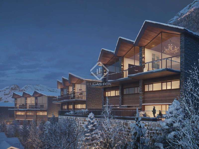 Lucas Fox presents this exclusive 396 m² villa with the best qualities in the new build Development Luxury Complex, located in El Tarter, in the Grandvalira ski area in Andorra. The villa features a modern and comfortable design with open and airy spaces where the space flows perfectly. The villa is spread over four floors, plus the lower floor , which offers a garage with capacity for several vehicles and with the option of a charging point for an electric car , as well as a storage room and technical rooms. The ground floor houses the huge main bedroom with its dressing room, private bathroom and access to the private terrace with stunning mountain views. On the first floor, there are two double bedrooms, one of them with a private bathroom, a single bedroom and an additional bathroom to serve the rest of the rooms. On the second floor, we find the day area in a single room, with the living room, dining room and kitchen with access to two terraces, one on each side. The entire floor enjoys huge floor-to-ceiling windows that allow in plenty of natural light, increase the feeling of spaciousness and give access to the terraces. Likewise, there are incredible views of the mountains and the ski area from all the front rooms. The floor is completed with a guest toilet and the laundry area. Among its qualities we can highlight the exterior carpentry made of aluminium with thermal break and with triple glazing and air chamber, armoured door, motorised blinds, built-in wardrobes and wooden floors in the main rooms and porcelain floors in the wet areas . The kitchen is furnished and fully equipped with the best appliances , such as an induction cooker, oven, hood or dishwasher, among others. Finally, it offers a heating system with electric radiators, for greater comfort and a video intercom, for greater security. Please contact us for more information on this incredible new build development .