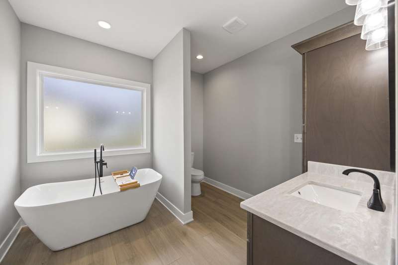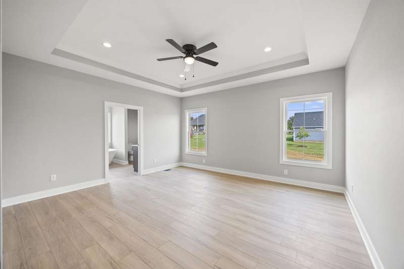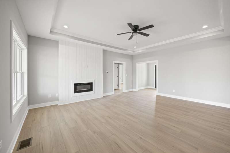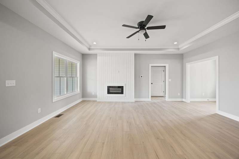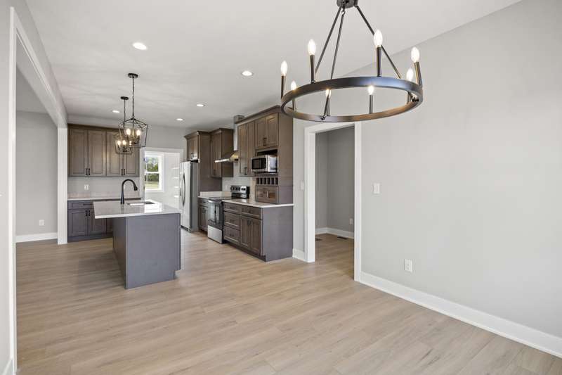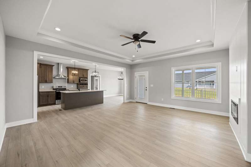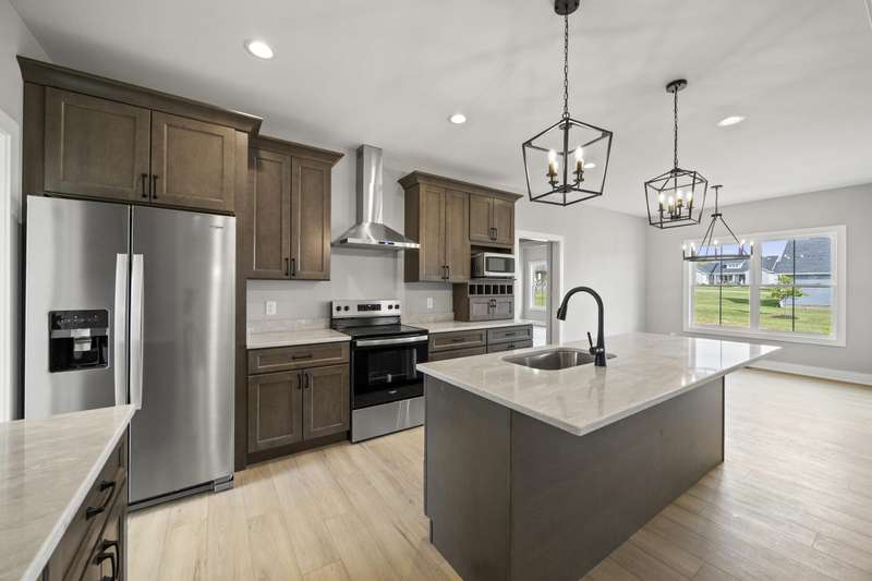 Welcome home to this beautiful 4-bedroom, 2-bath ranch home perfectly blends comfort, style, and functionality! Step inside the foyer to an open floor plan with family room seamlessly flowing into the eat-in kitchen featuring sleek quartz countertops, stainless steel appliances, and a walk-in pantry. The kitchen island is the centerpiece for this beautiful living space. The inviting family room with cozy electric fireplace, perfect for relaxing or entertaining. The primary suite offers a luxurious retreat with double vanities, a soaking tub, separate beautifully tiled shower, and a spacious walk-in closet. Enjoy the outdoors year-round from your covered patio, and take advantage of the walk-in, spray foamed crawl space for additional storage. This stunning home combines modern design and everyday practicality. Schedule your showing today and make it yours!