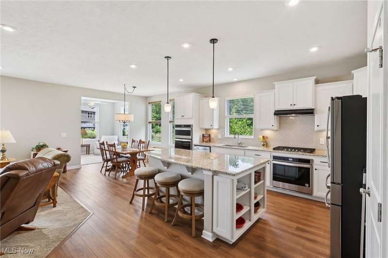 Awesome, super sharp 4 years young Blooming Acres ranch * This beautiful home highlights a large, modern, stunning eat-in kitchen which features granite counters, tile backsplash, center island with breakfast bar, stainless steel appliances, huge pantry, pristine white cabinetry and luxury vinyl flooring * Spacious and comfortable great room with 9 ft ceilings, carpeting and plenty of natural lighting * Great, relaxing sun room with luxury vinyl flooring and access to the incredible paver patio * Four generously sized bedrooms features a 1st floor master suite with huge walk-in closet and a full bath with double sinks and a beautiful tile shower * Four full baths * Open loft area great for a sitting room, library or study * Full, finished lower level features a super-sized recreation room, a media/theatre room, living suite with additional egress now used as a 5th bedroom, second office, workshop, 2 storage areas, and partially finished utility room * Entrance foyer with luxury vinyl flooring * 1st floor laundry * Custom, sophisticated Luxul networking and Wi-Fi solutions on all 3 floors * incredible paver patio with 2 remote controlled sun setter patio awnings * Large attached, extra deep insulated garage with plenty of storage and shelving * Conveniently located to shopping, dining, parks and schools * Schedule a showing today to see this very special home!