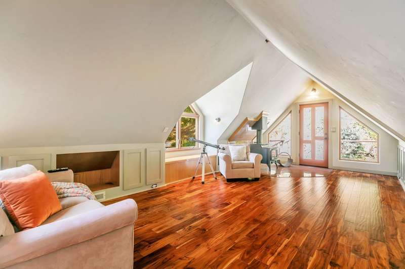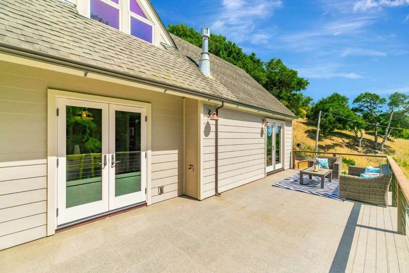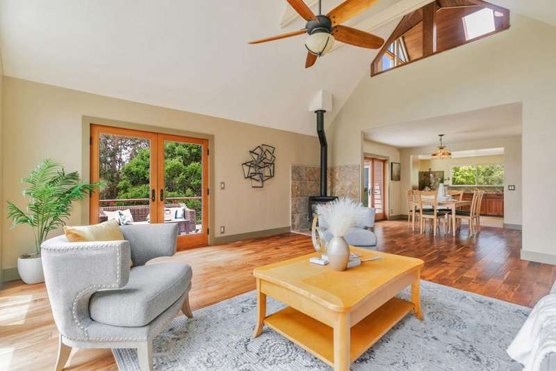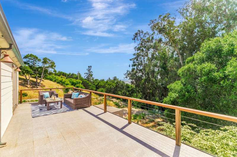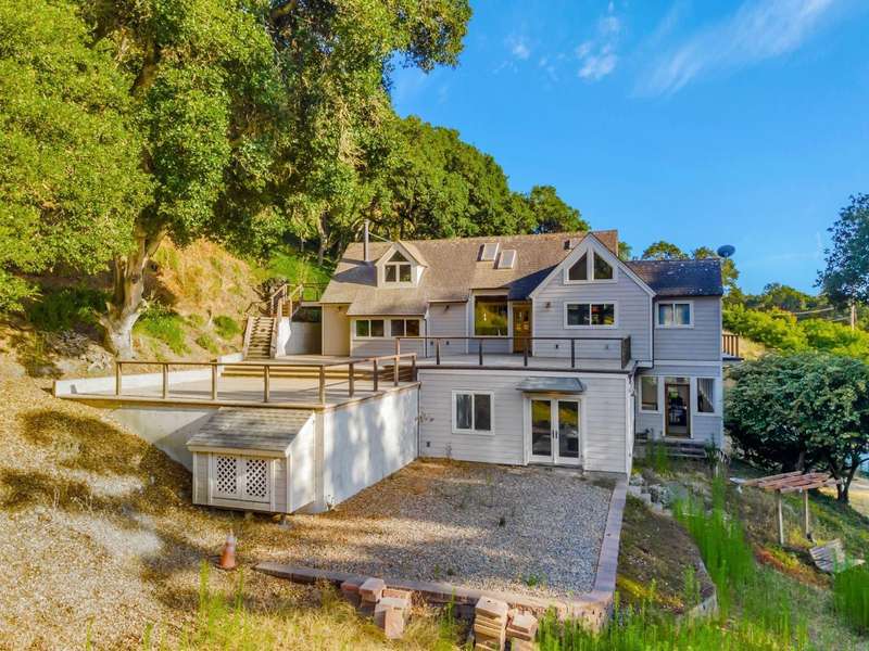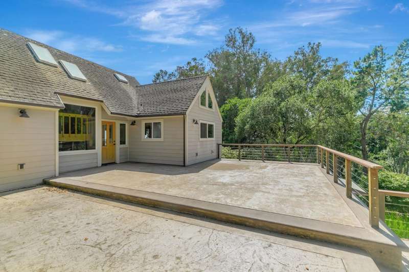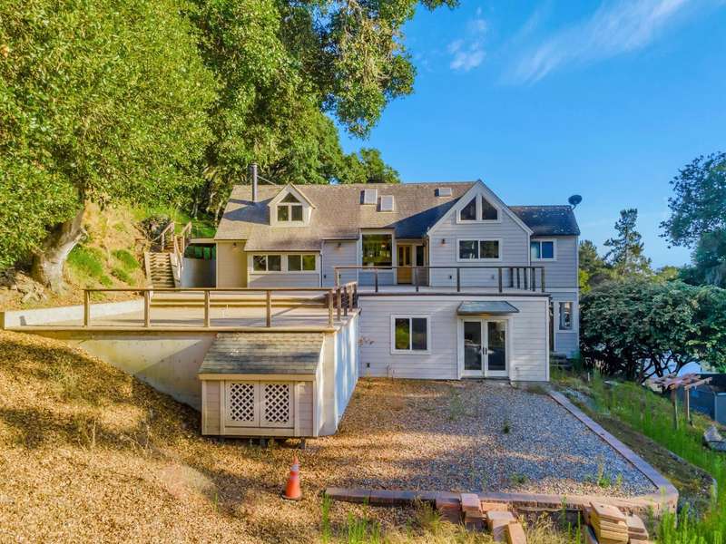 Experience unparalleled luxury & breathtaking panoramic views of Monterey Bay from this exquisite 4 bedroom, 4 bathroom custom estate, boasting 3,279 sqft of sophisticated living space. Nestled on a vast 4.16 acre lot, this property seamlessly combines privacy, comfort & functionality. On the main floor enjoy 2 bedrooms, including primary retreat w/ private bath, guest bath, living room w/ vaulted ceilings, separate dining room overlooking large outdoor balcony w/ views & gourmet kitchen w/ stainless steel appliances & breakfast bar! Private deck off the living room is amazing for viewing those marvelous sunsets! Top story has a cozy office area, living room, full bath, reading/library nook & plenty of storage space. Bottom level has 2 large rooms, private deck, laundry hookup, radiant floor heating & an abundance of storage space. The 4 car detached garage has a loft above & is surrounded by massive deck w/ beautiful views. Below away from the home is a detached 3 car garage & 1200 sqft shop, plus a small storage shed w/ access to a five freight container bunker underneath. Home has over 3,000 feet of decking with two gas hookups for outside entertaining. Copper gutters throughout, fire resistance siding and numerous windows to view the abundant wildlife & spectacular views!
