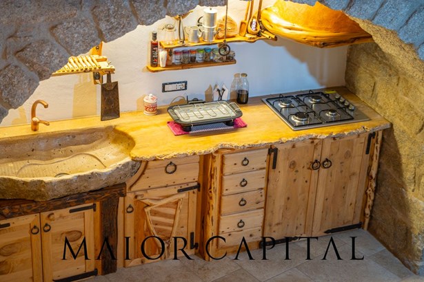 The use of local materials is not only an aesthetic element, but a true homage to the Gallura building tradition. The local stone, with its warm tones and natural veining, gives a solid and timeless appearance to the structure. Wood is used in beams, furniture and decorations, diffusing fragrance and warmth into the environment. Handcrafted wrought iron embellishes fixtures and railings with typical decorative motifs.