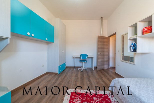 * The upper floors house the sleeping area, consisting of spacious and bright rooms. Some of the rooms can be used as children's bedrooms, hobby room, gym or study, offering maximum flexibility in the distribution of space. The floor is completed by a guest bathroom and a convenient laundry area, with the possibility of converting it into a third bathroom.
